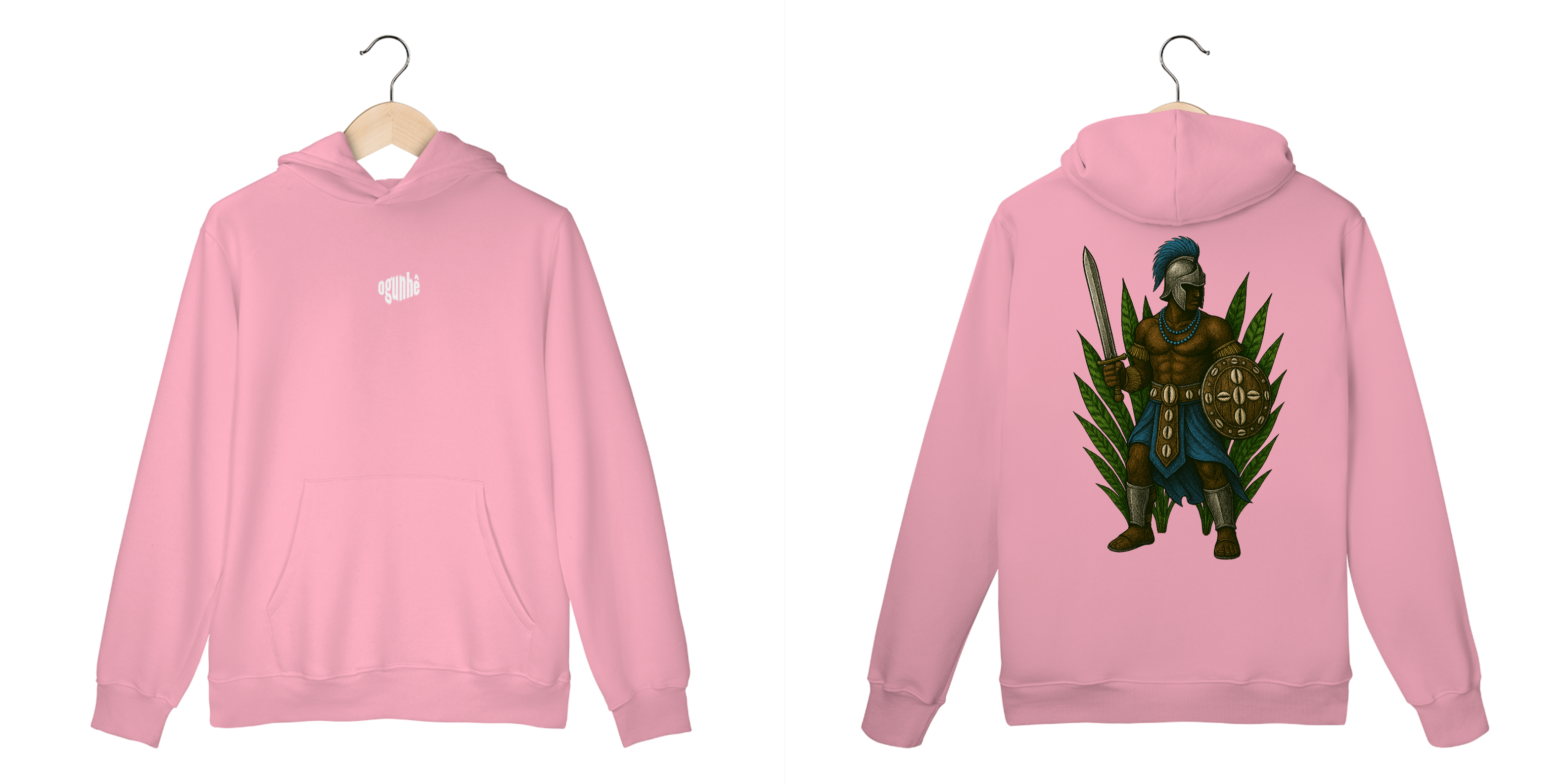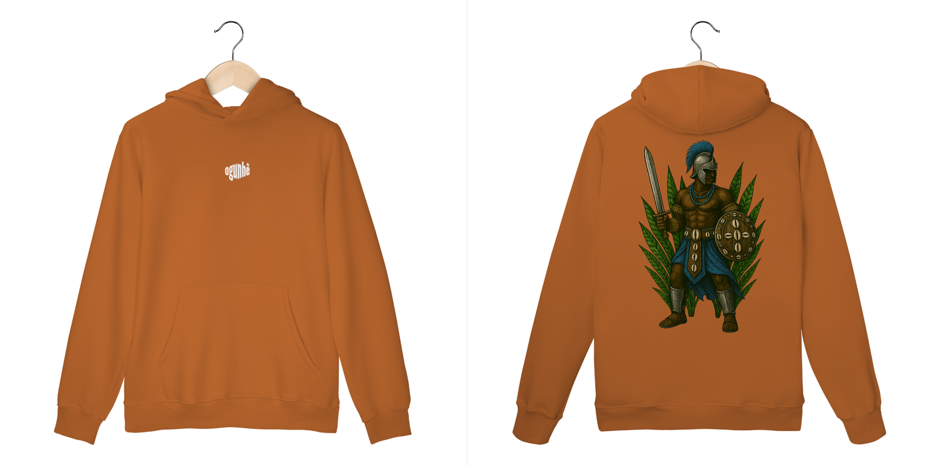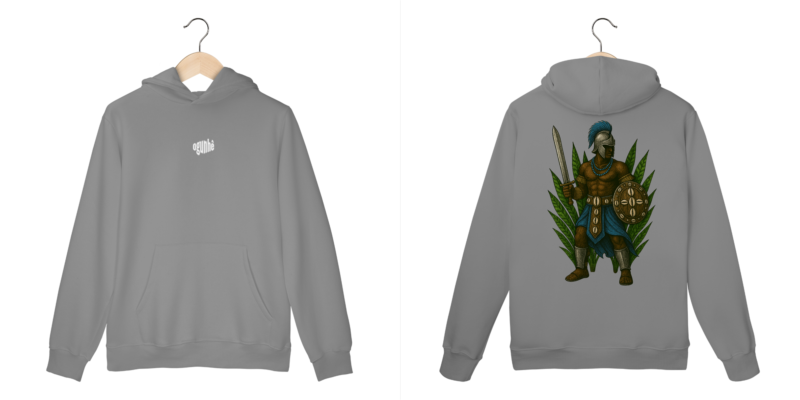 O Casaco Moletom Canguru Ogum é uma peça poderosa e cheia de simbologia, inspirada na bravura, proteção e determinação de Ogum — Ele é considerado o soldado, guardião, o patrono dos exércitos pois representa a luta e a vitória.