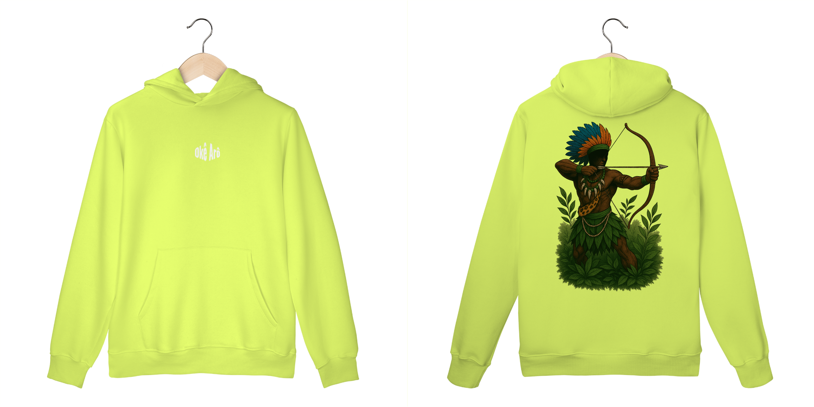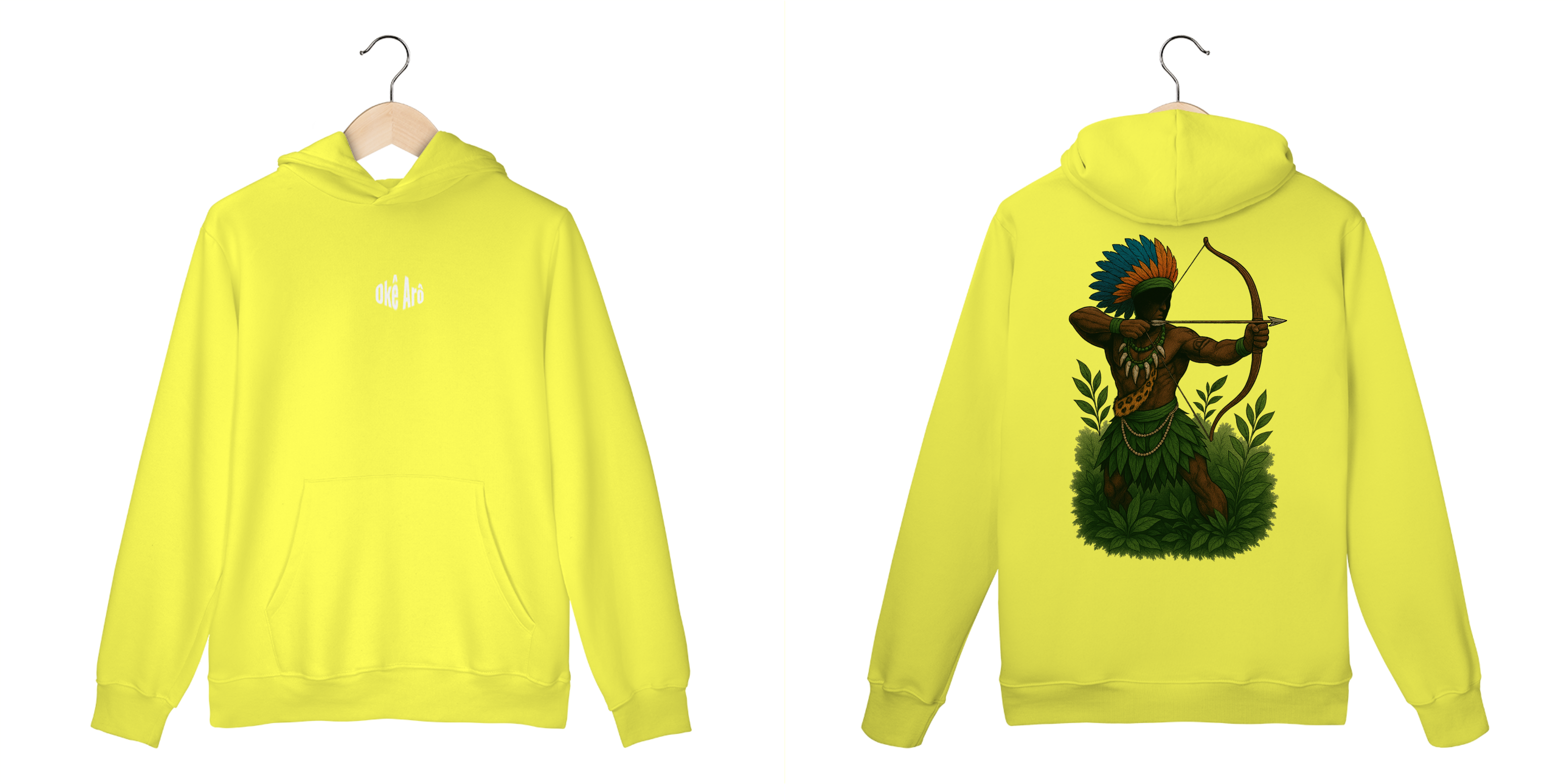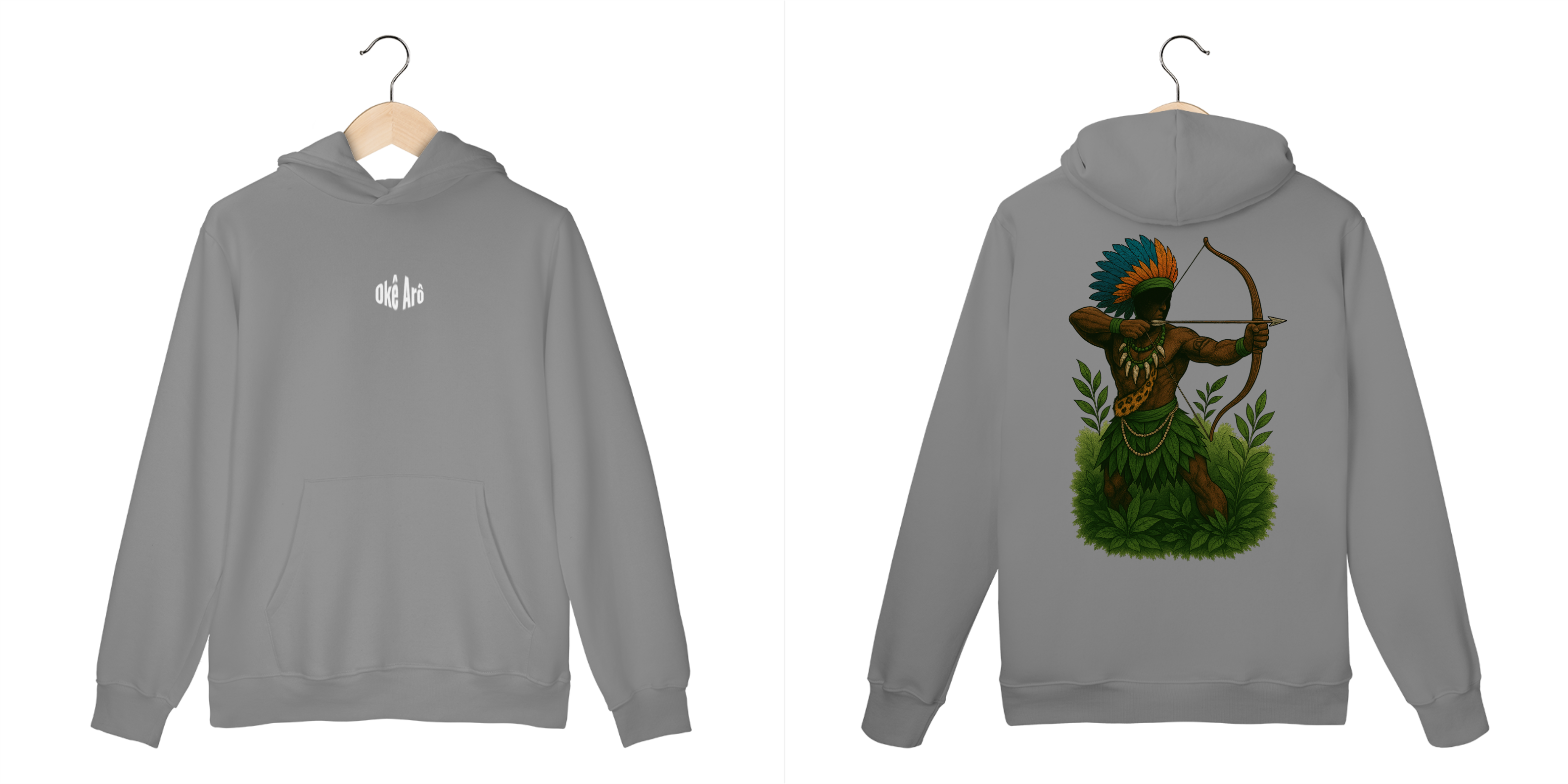 O Casaco Moletom Canguru Oxóssi é uma peça exclusiva e cheia de significado, inspirada na força e proteção de Oxóssi, o grande caçador e guardião das florestas.