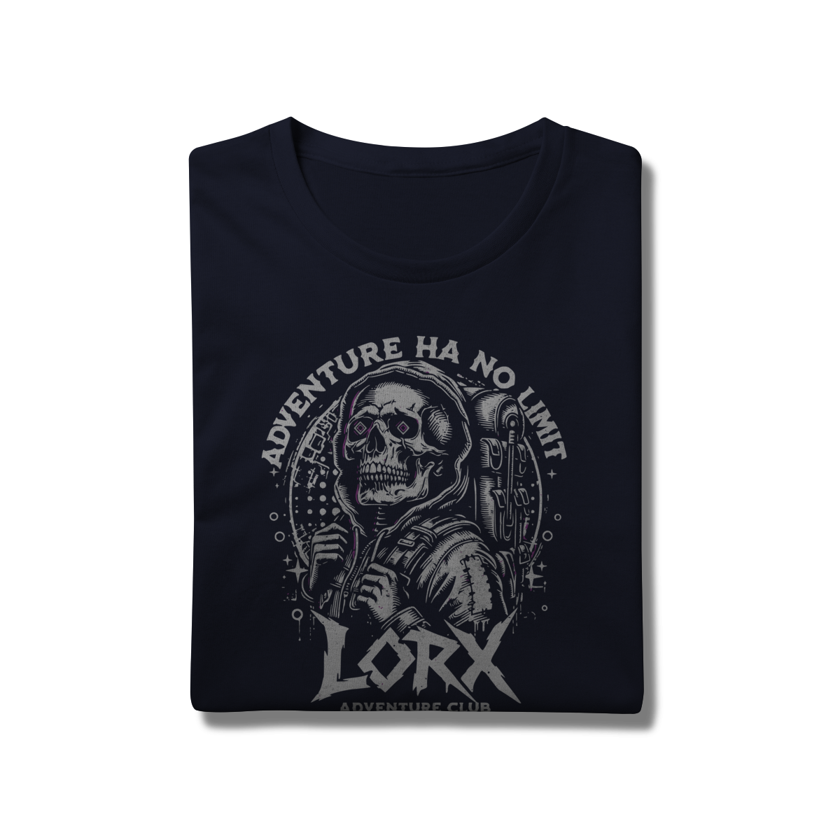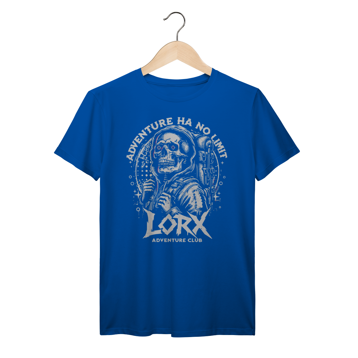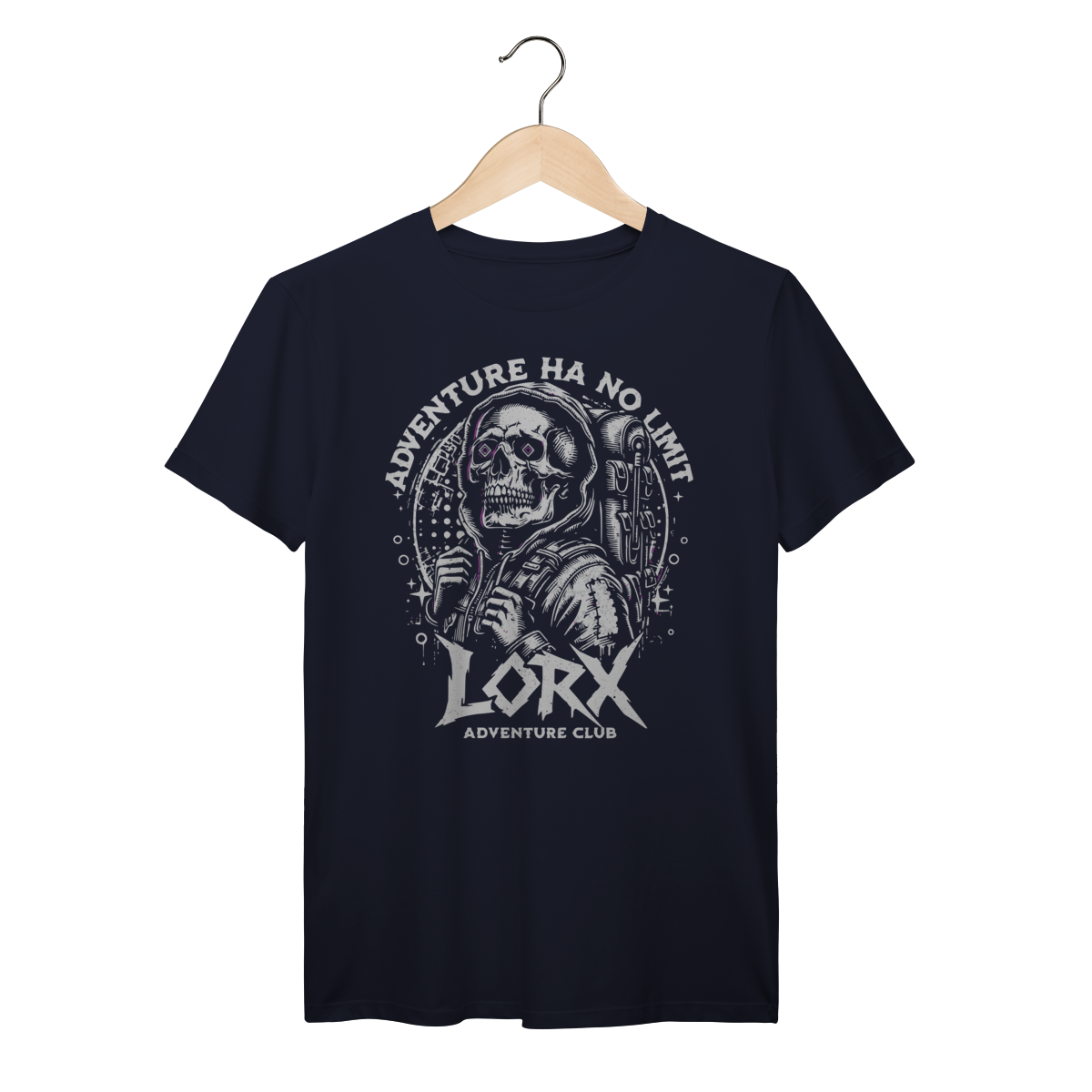 "Explorador Cósmico - LORX Adventure" é uma estampa ousada e cheia de personalidade, perfeita para quem vive a vida como uma jornada sem fronteiras. A arte apresenta uma caveira estilizada vestindo um moletom com capuz e mochila, simbolizando o espírito do aventureiro moderno. Os olhos em forma de diamante adicionam um toque surreal e místico, enquanto os elementos gráficos ao redor — como estrelas e círculos — evocam uma vibe cósmica e urbana.