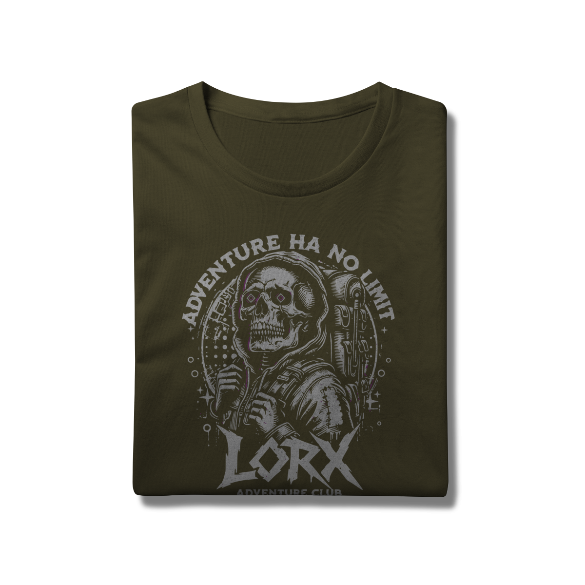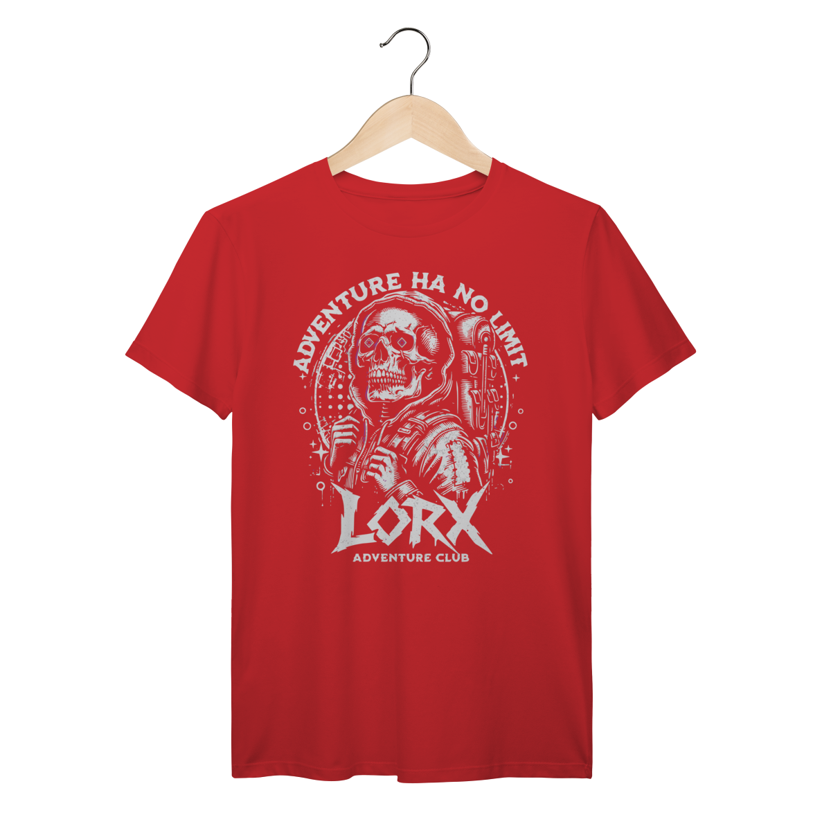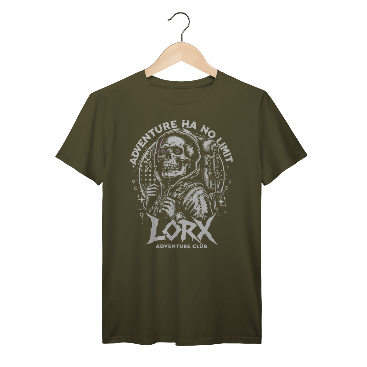 "Explorador Cósmico - LORX Adventure" é uma estampa ousada e cheia de personalidade, perfeita para quem vive a vida como uma jornada sem fronteiras. A arte apresenta uma caveira estilizada vestindo um moletom com capuz e mochila, simbolizando o espírito do aventureiro moderno. Os olhos em forma de diamante adicionam um toque surreal e místico, enquanto os elementos gráficos ao redor — como estrelas e círculos — evocam uma vibe cósmica e urbana.