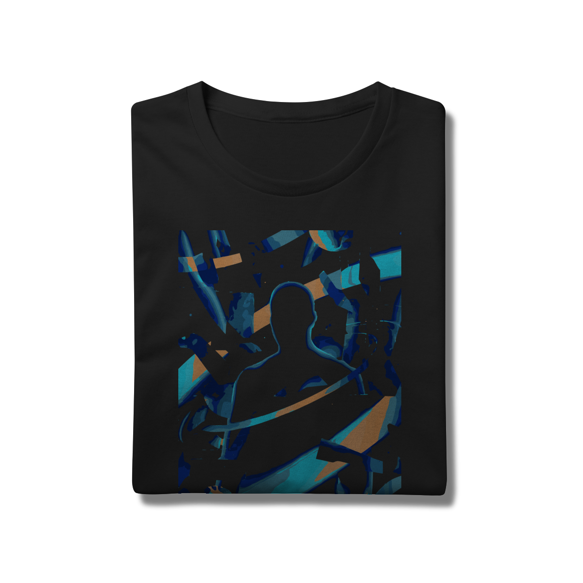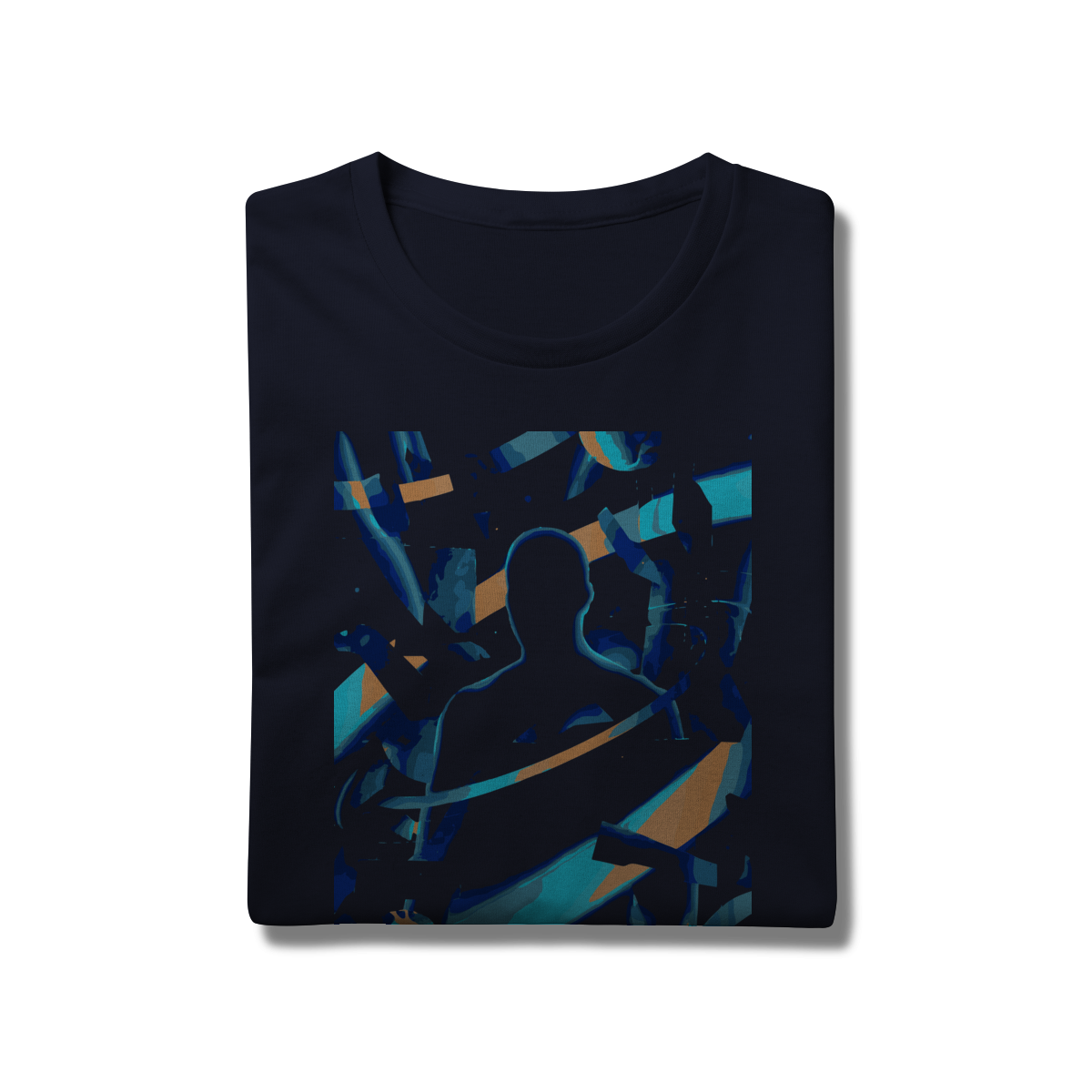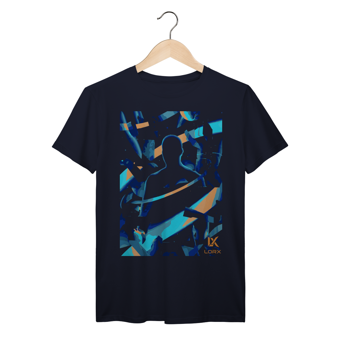 A estampa "LORX Ascendente: Silhueta em Explosão" é uma obra visual eletrizante que une arte digital, movimento e identidade em uma composição vibrante e provocativa. No centro da imagem, uma silhueta humana é delineada por um contorno azul brilhante, cercada por faixas dinâmicas de azul, laranja e teal que evocam velocidade, energia e transformação. Fragmentos angulares e texturas granuladas criam uma sensação de ruptura e ascensão, como se o corpo estivesse se fundindo com o espaço ao redor.