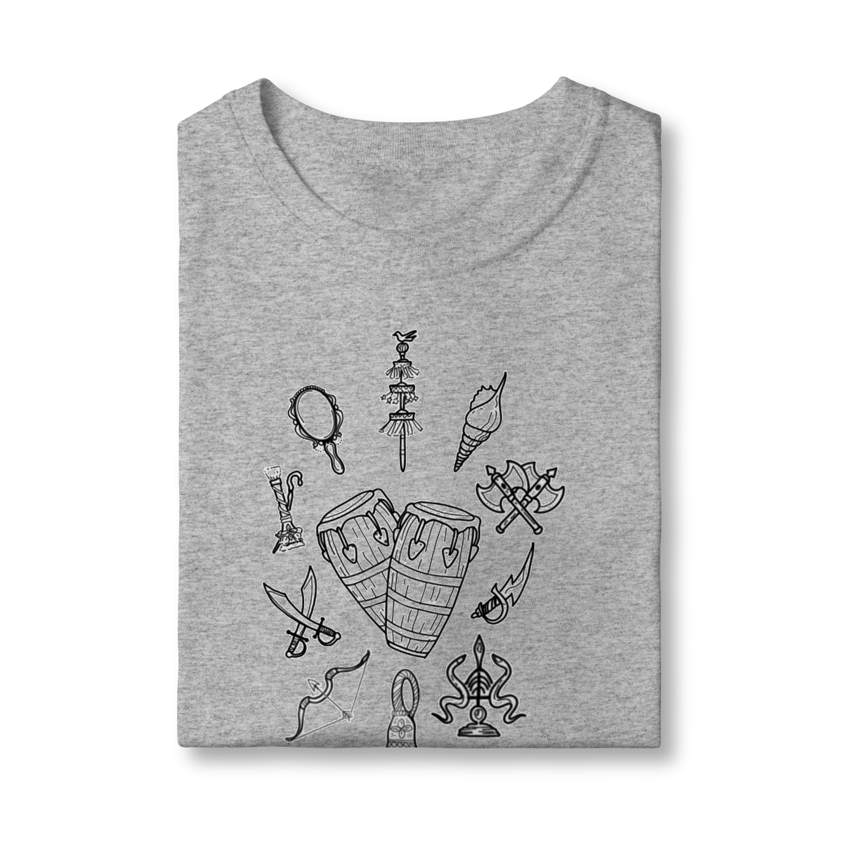 Com design marcante e cheio de significado, ela homenageia Ogum, Iemanjá, Oxóssi, Iansã, Xangô, Obaluayê, Oxum e todos os Orixás que guiam com força, amor e equilíbrio.