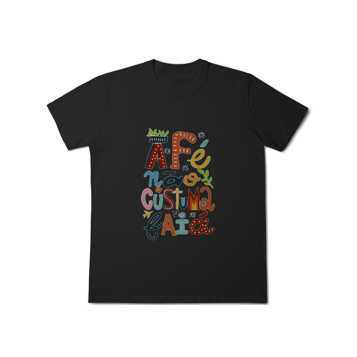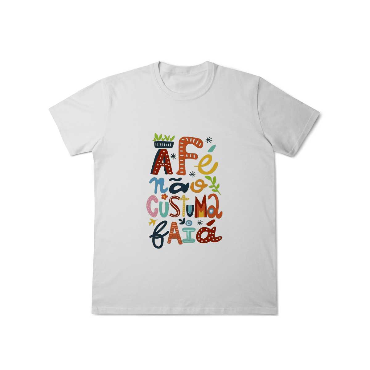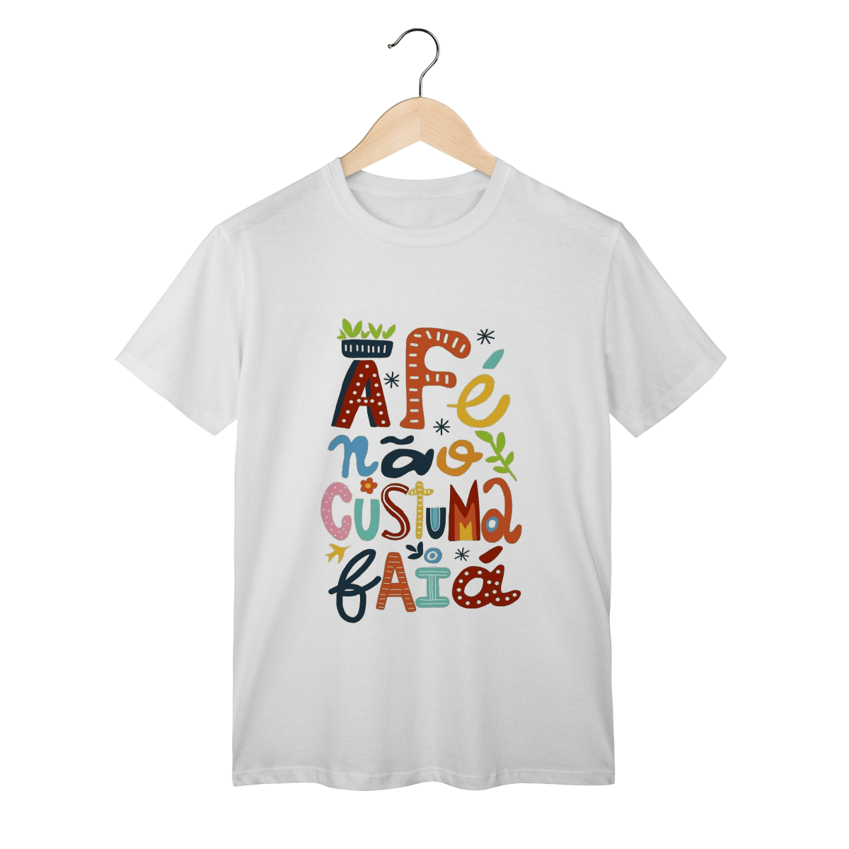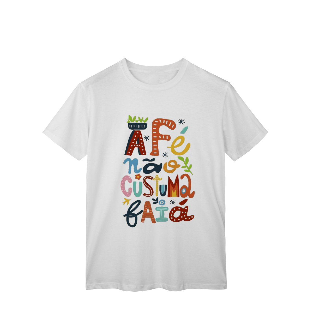 Camiseta Fé Não Costuma Falhar é feita pra quem confia no invisível, resiste com coragem e caminha com a certeza de que o sagrado nunca abandona.