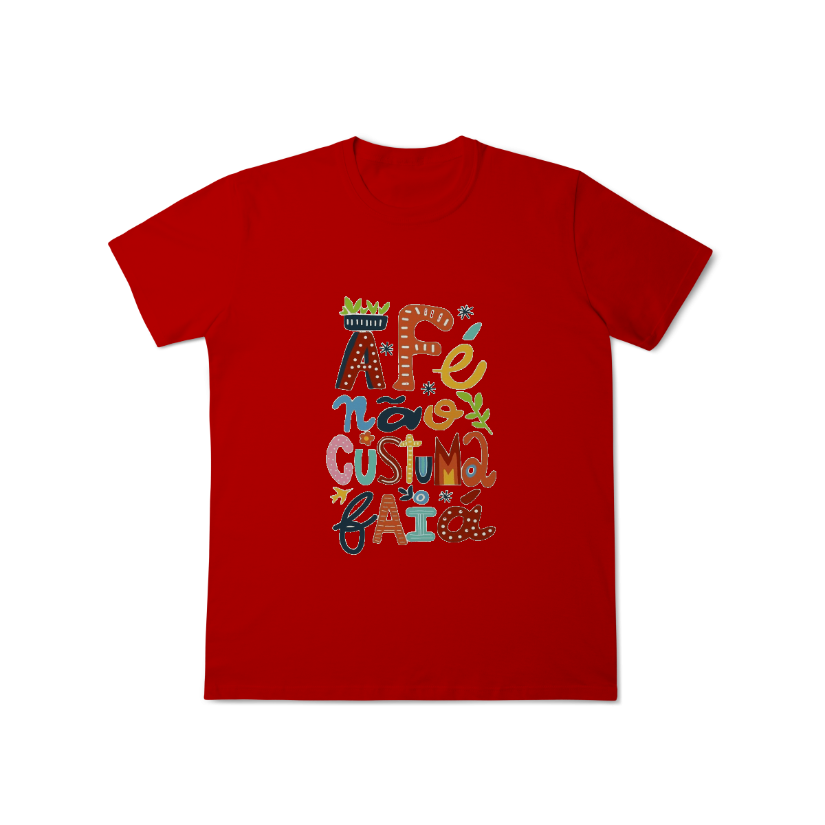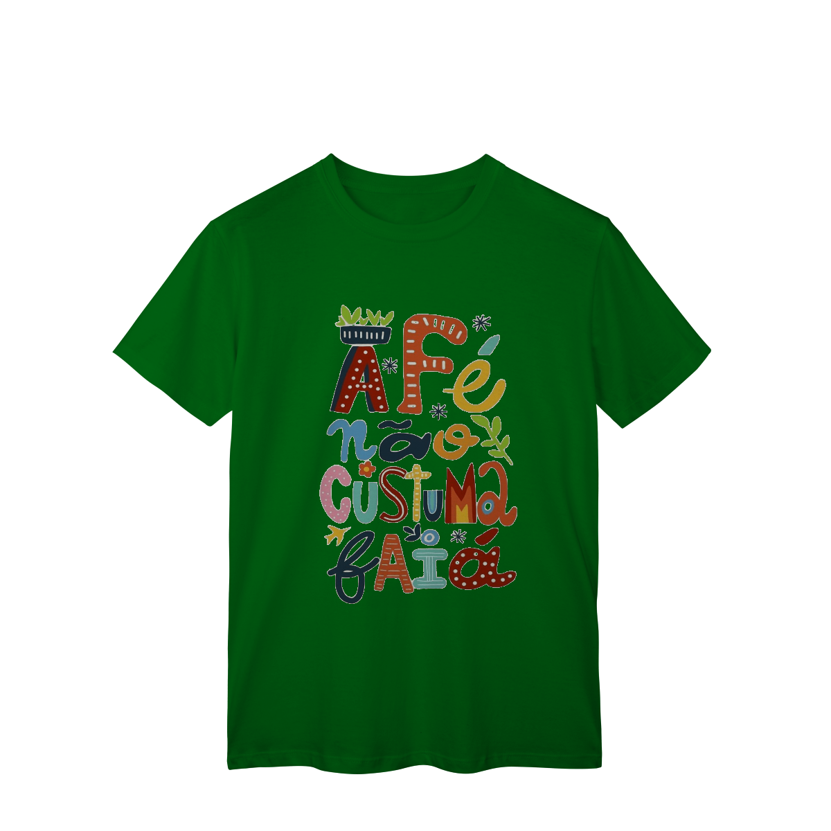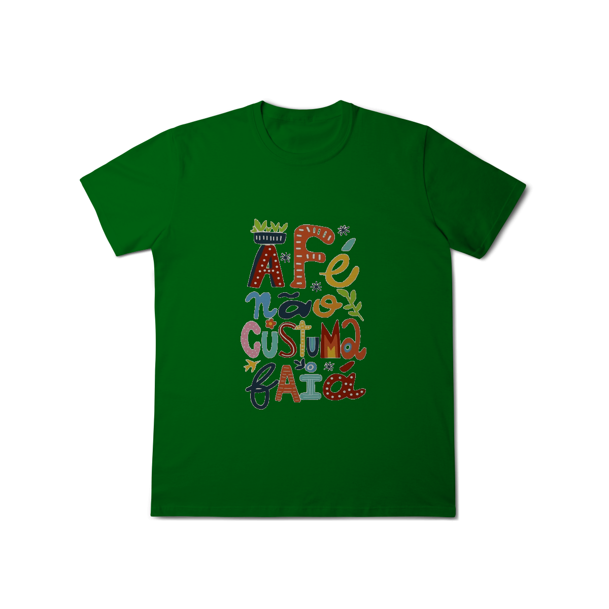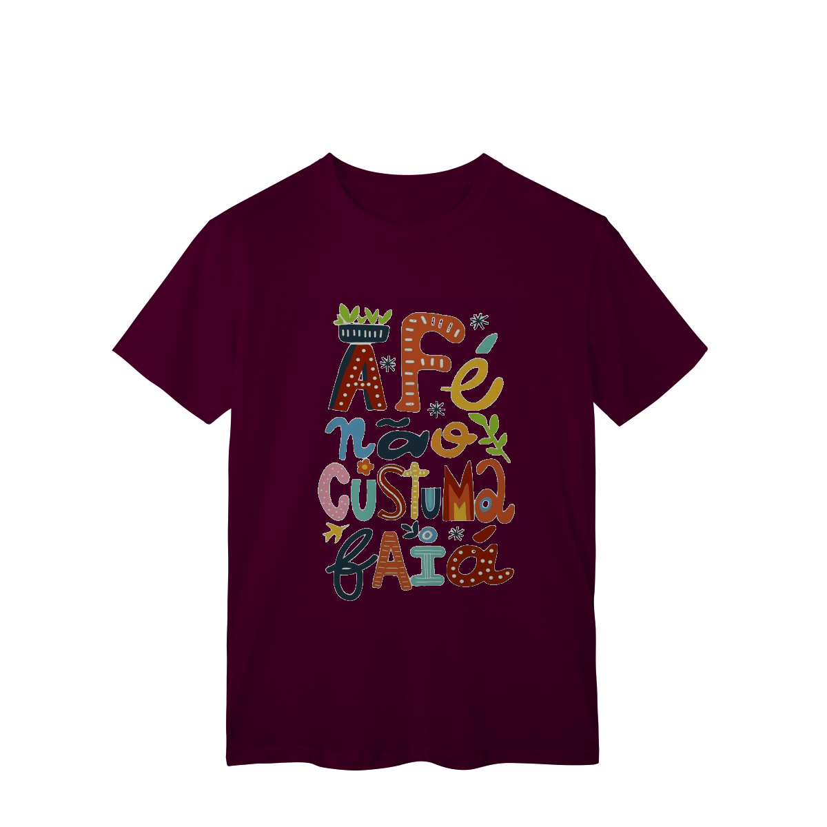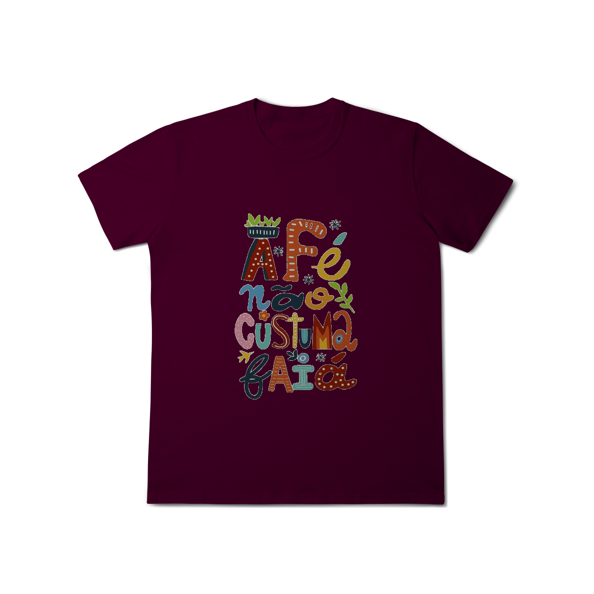 Camiseta Fé Não Costuma Falhar é feita pra quem confia no invisível, resiste com coragem e caminha com a certeza de que o sagrado nunca abandona.