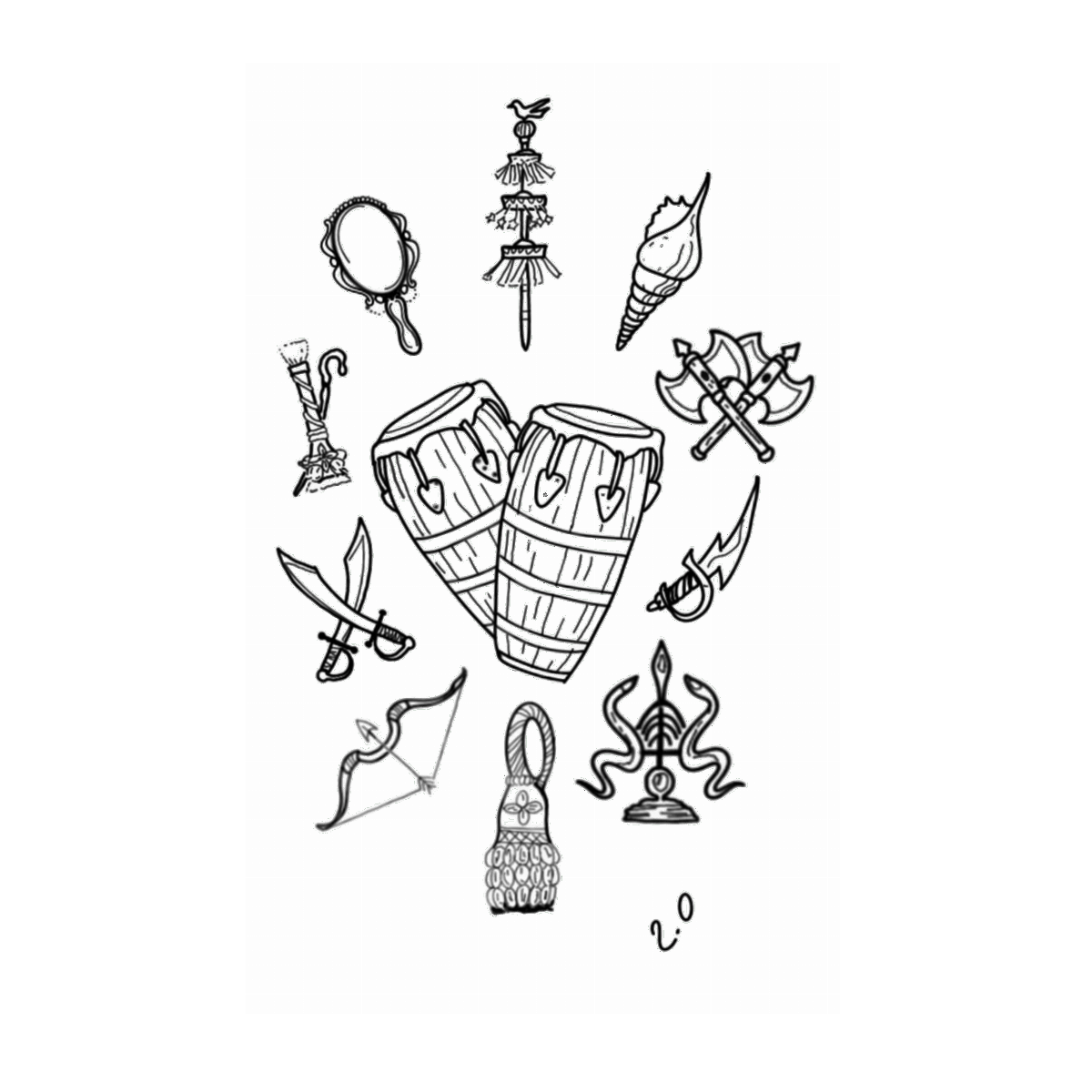 Com design marcante e cheio de significado, ela homenageia Ogum, Iemanjá, Oxóssi, Iansã, Xangô, Obaluayê, Oxum e todos os Orixás que guiam com força, amor e equilíbrio.