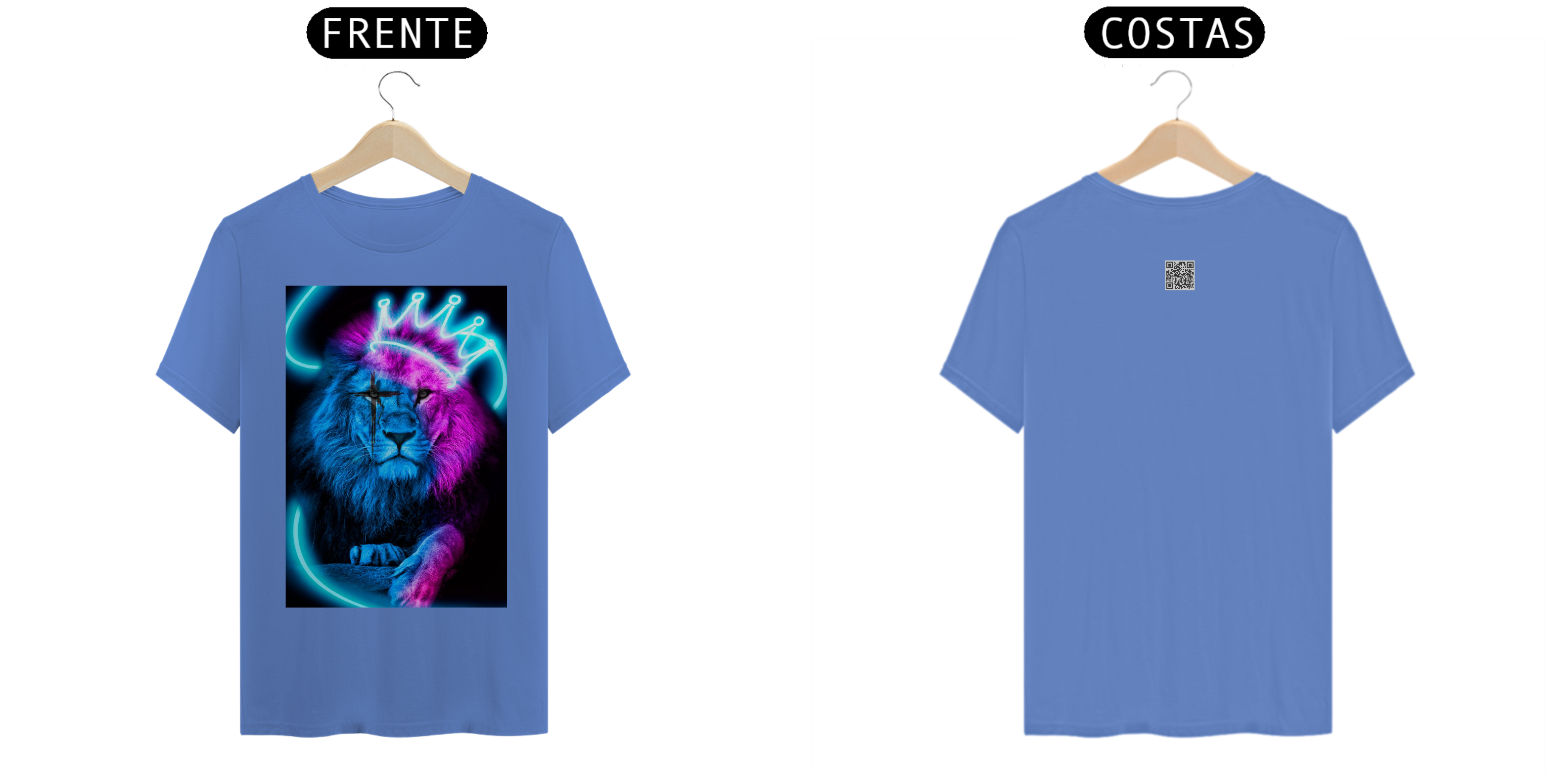 "Esta camiseta traz uma imagem poderosa e simbólica de um leão cristão com uma coroa. O leão é um símbolo de força, coragem e poder, enquanto a coroa representa a realeza e a soberania. Essa combinação única representa a fé cristã e a autoridade espiritual em Cristo.
