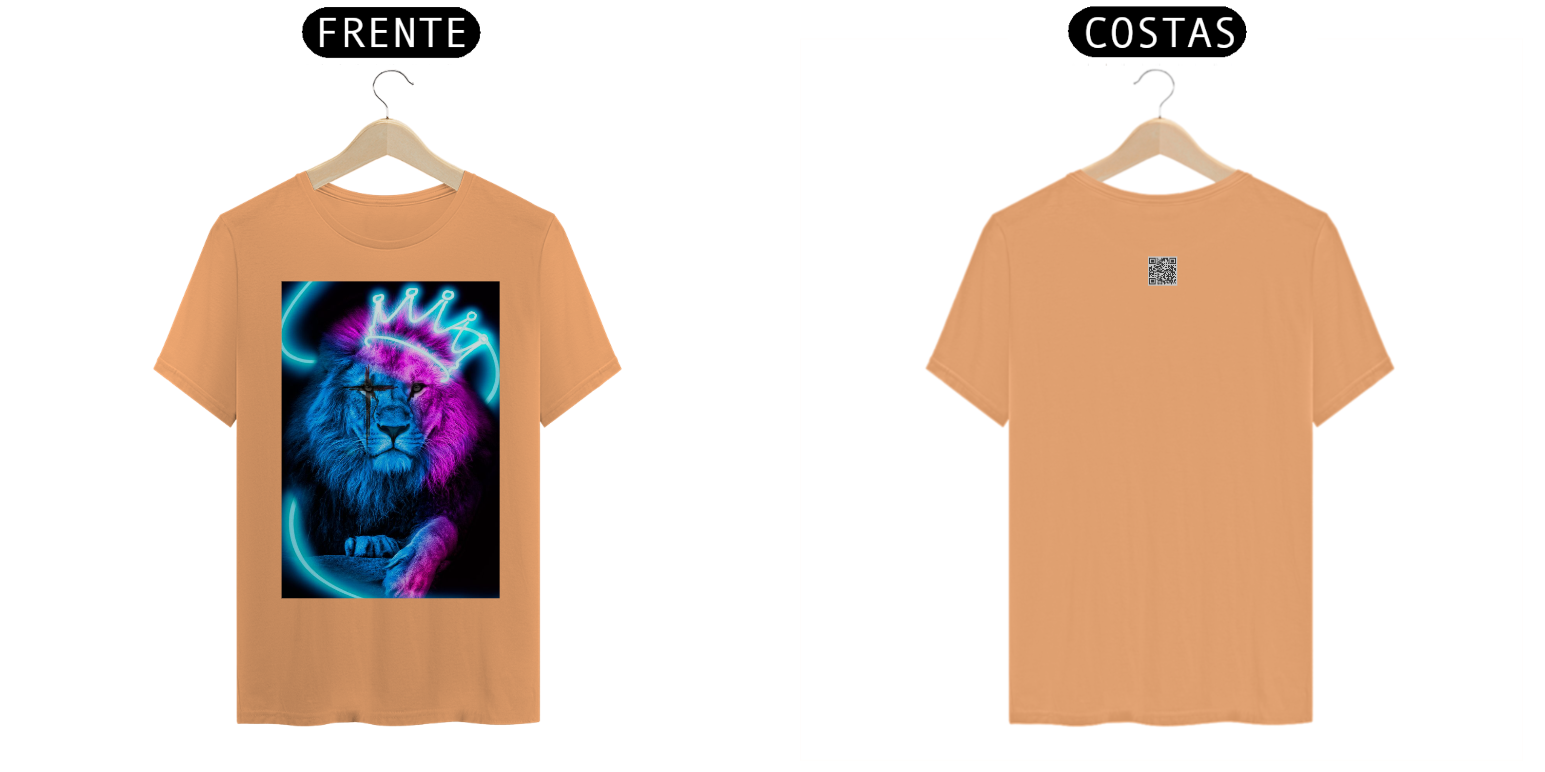 Ao usar esta camiseta, você estará expressando sua identidade como seguidor de Jesus Cristo e sua confiança na sua força e liderança. A imagem do leão cristão com coroa é um lembrete visual do poder divino que está presente na sua vida.