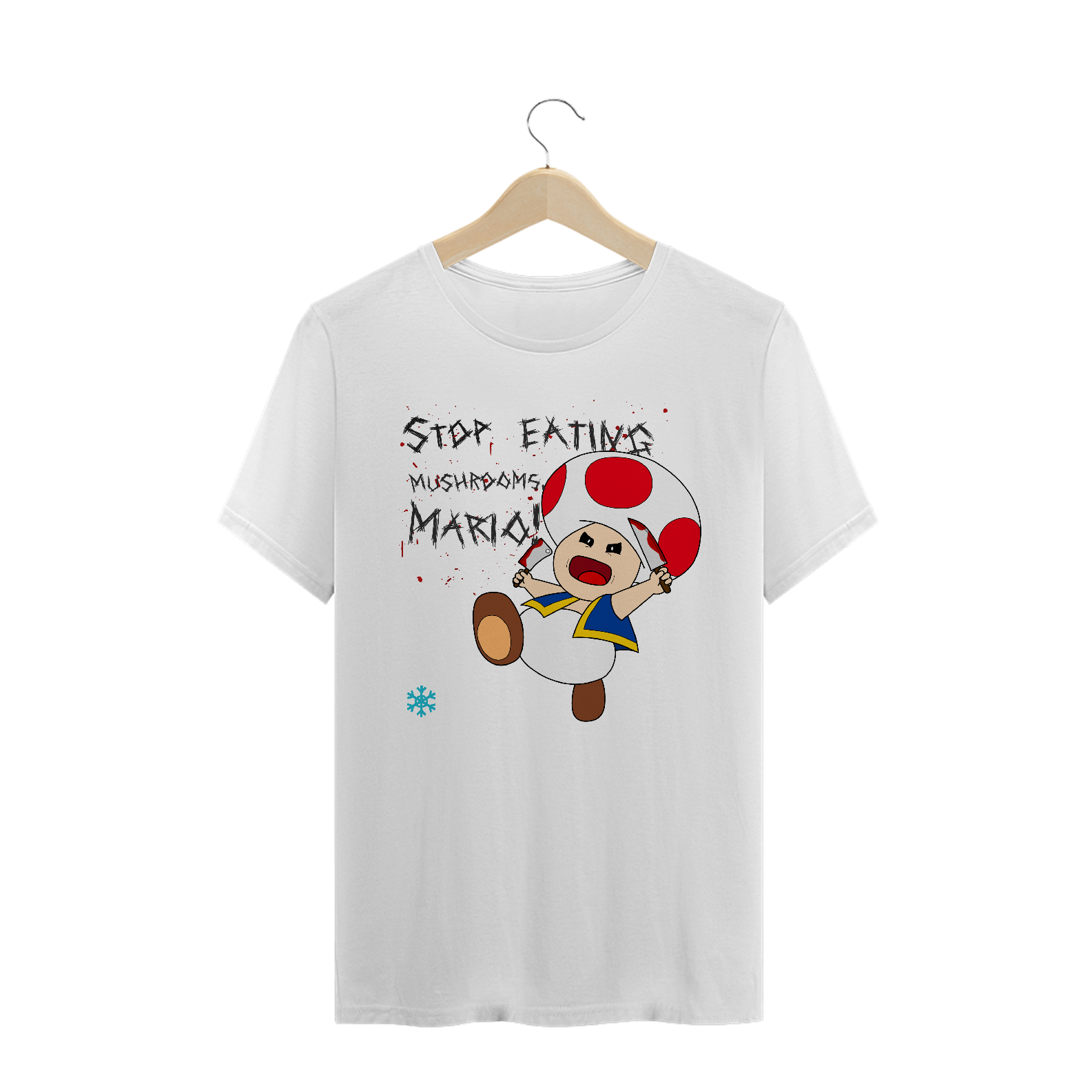 Enquanto Mario (que Mario?) corre atrás de da princesa pisoteando tartarugas e comendo seres vivos conscientes, nosso querido e fofo Toad Psicopata está a procura de vingar seus parentes nessa camisa única que você adquire por aqui!