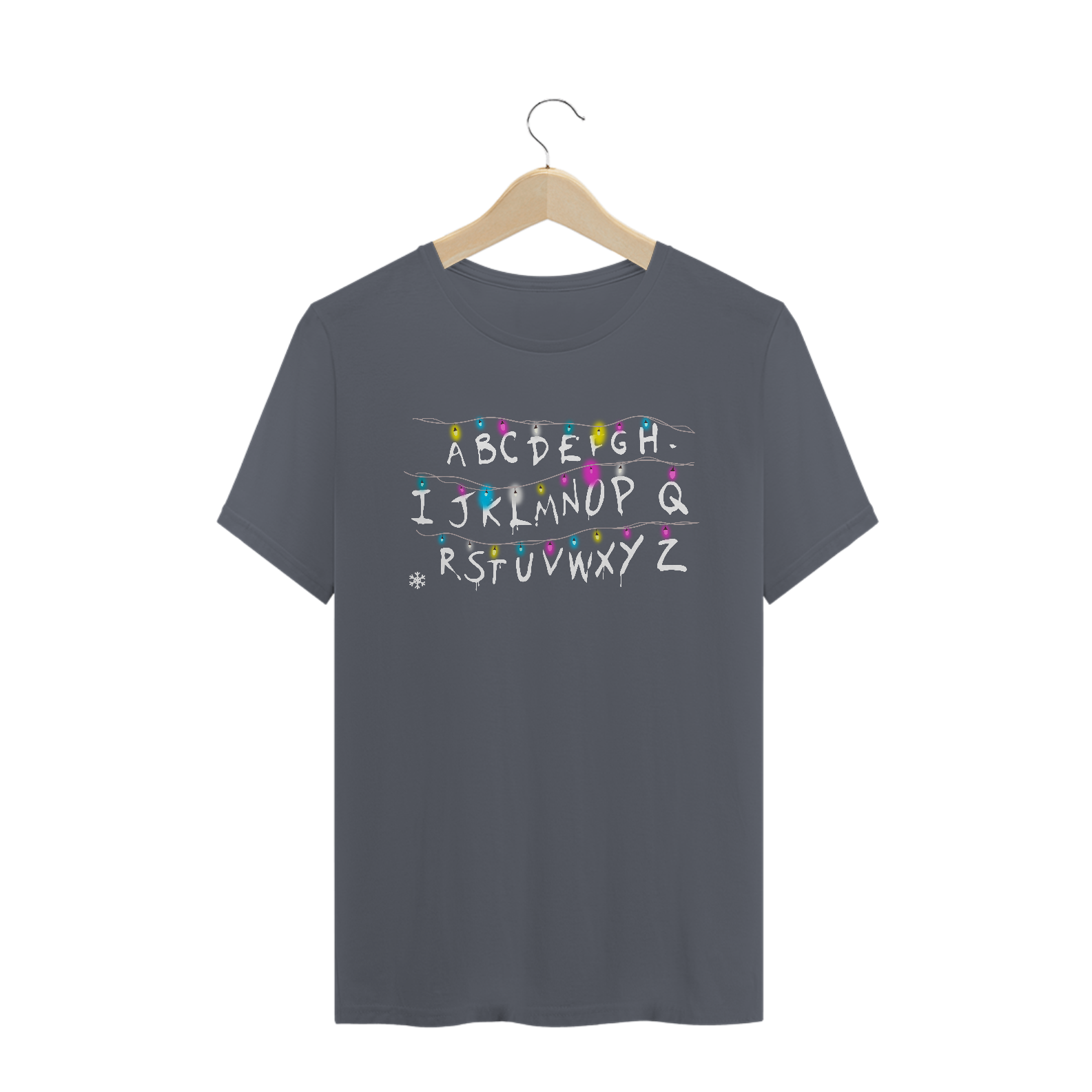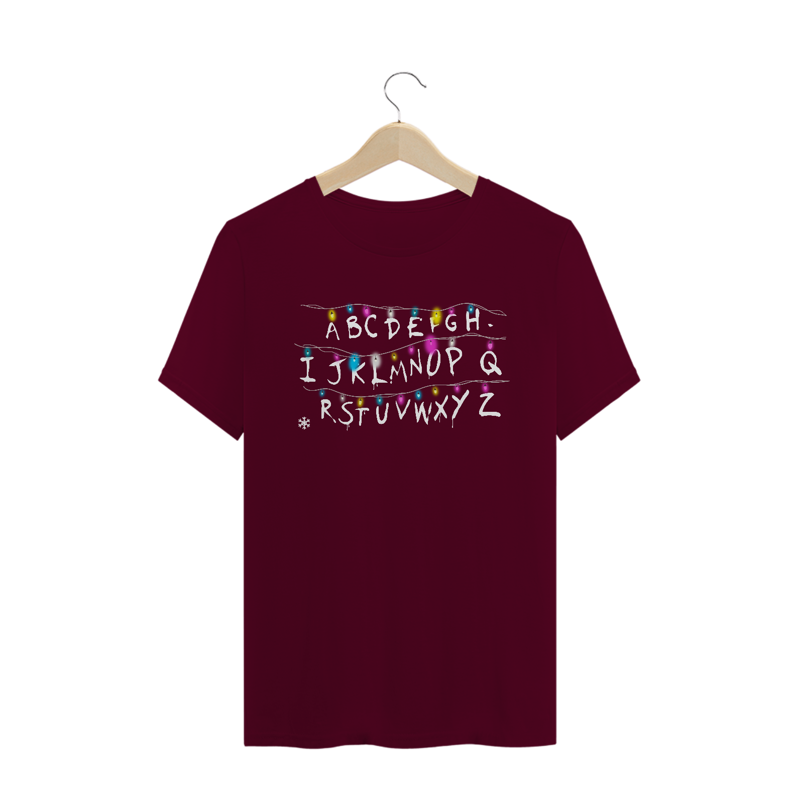 Vários anos após o lançamento de Stranger Things, a parede com letras pintadas e vários pisca-piscas da Joyce (Winona Ryder) ainda é uma das marcas mais emocionantes de Stranger Things. Fica aqui a nossa homenagem a essa série que desde de 2016 vem nos enchendo de surpresas. Se você gosta de Stranger Things, então precisa ter os itens dessa coleção, começando por essa estampa!