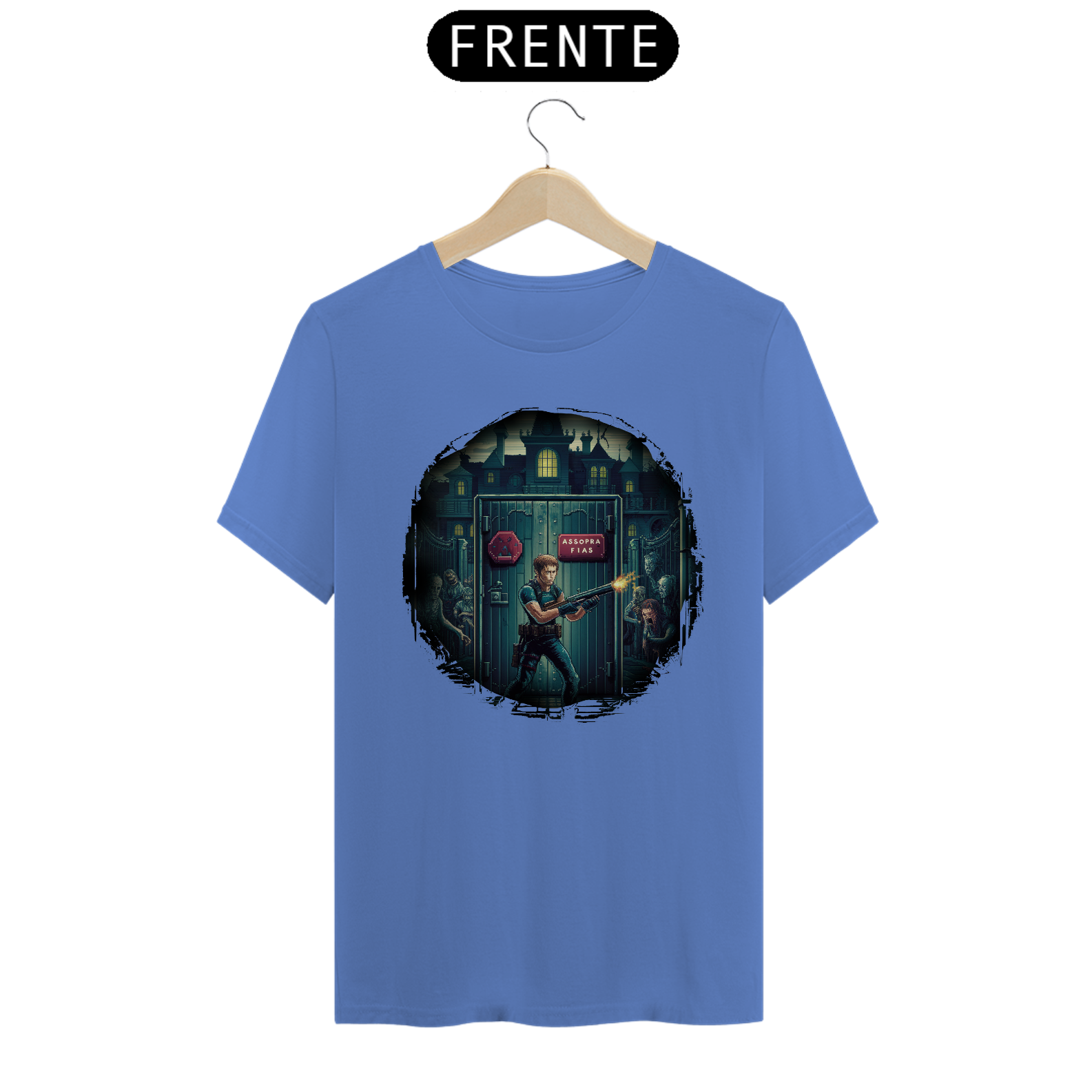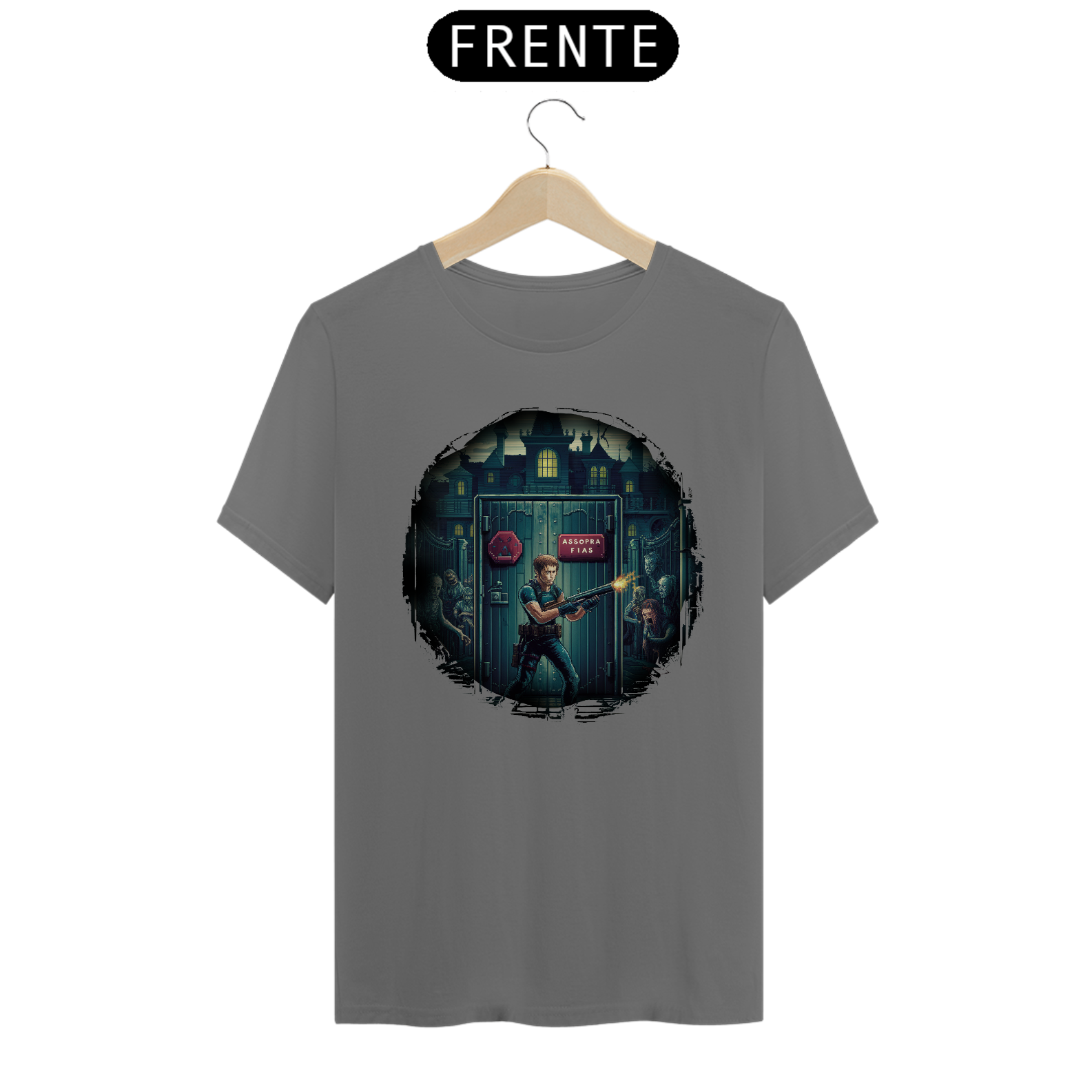 Entre no mundo do survival horror com a Camisa Exclusiva Resident Evil da Assopra Fitas. Inspirada no icônico primeiro jogo da série, esta camisa captura a essência do terror e a adrenalina das aventuras de Jill Valentine e Chris Redfield na infame mansão de Raccoon City.