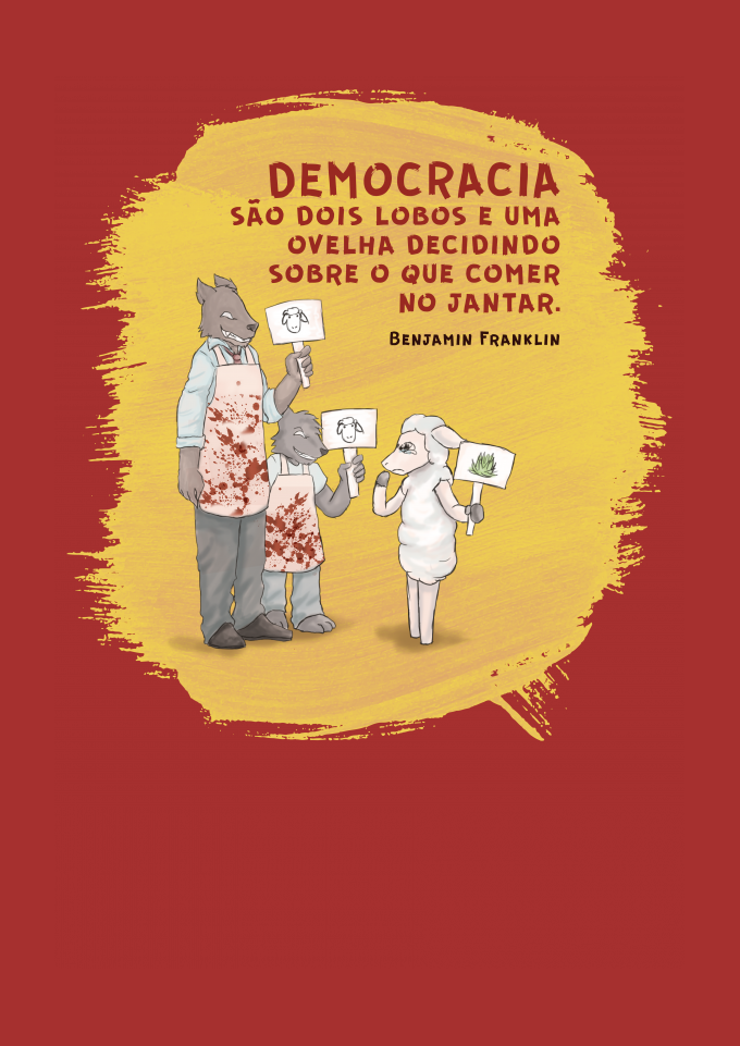 DEMOCRACIA são dois lobos e uma ovelha decidindo sobre o que comer no jantar.