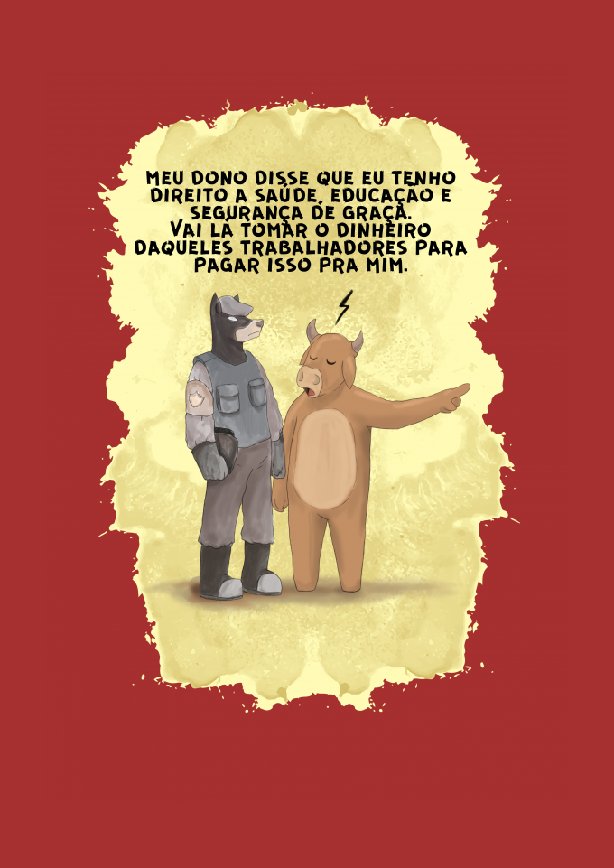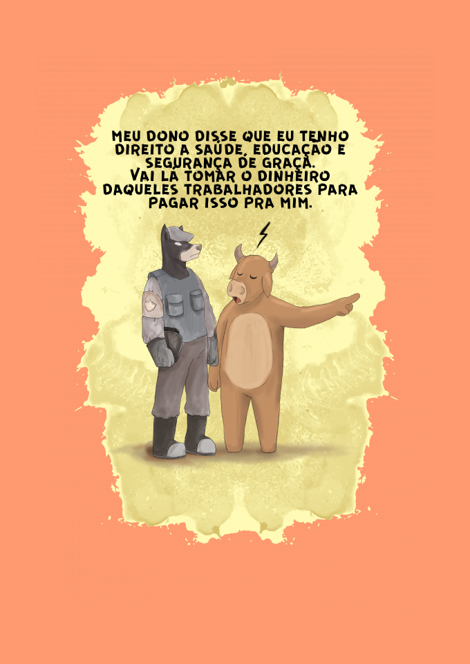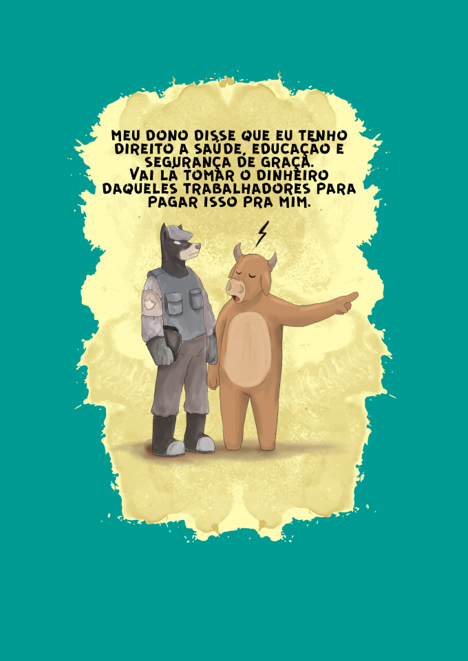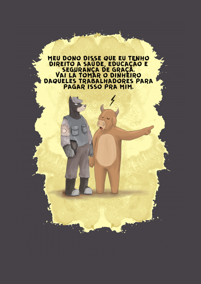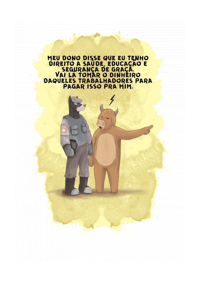meu dono disse que eu tenho direito a saúde, educação e segurança de graça. Vai lá tomar o dinheiro daqueles trabalhadores para pagar isso pra mim.