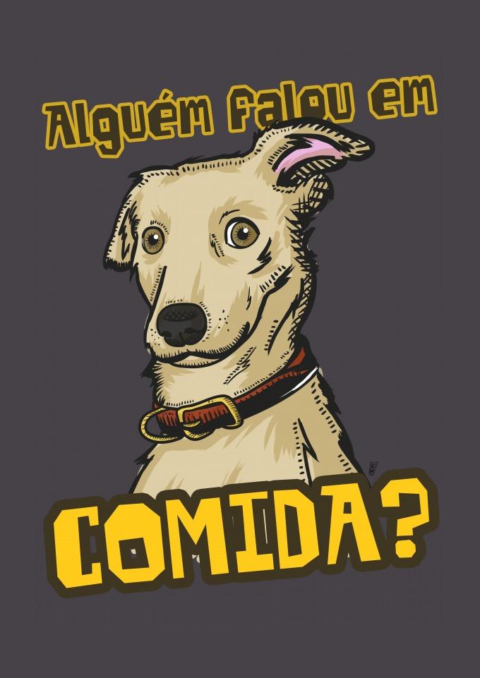 Estampa Alguém Falou em Comida?, se você ama os seus bichinhos, não pode ficar sem uma dessas, mostre a todos seu amor adquirindo uma camisa Galego T-shirt - Do jeito que você procura.