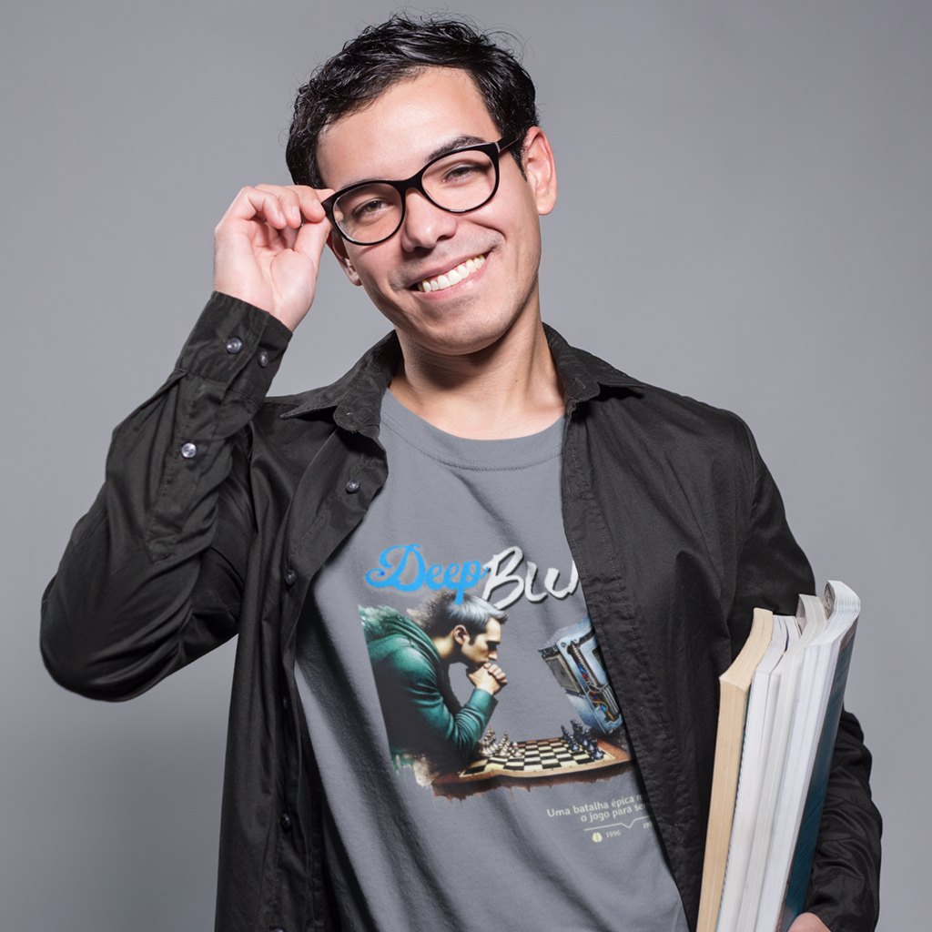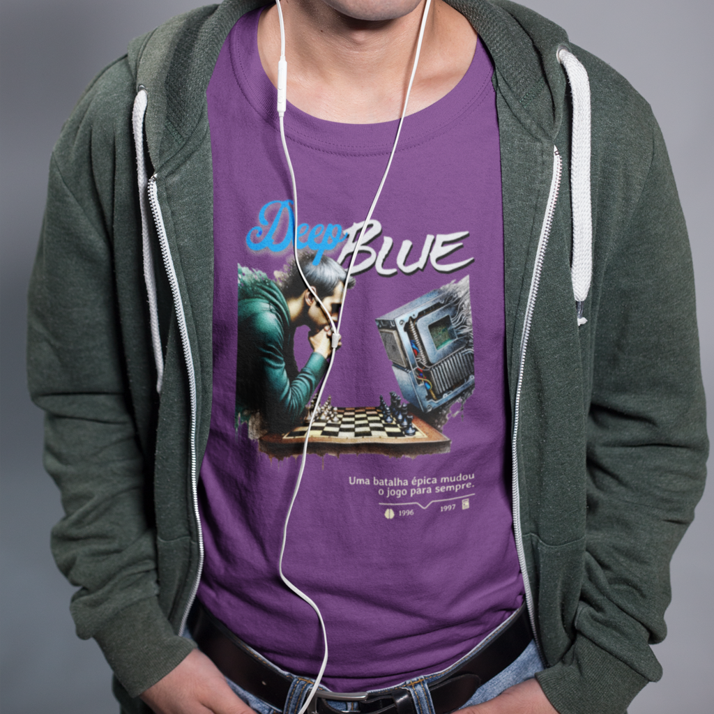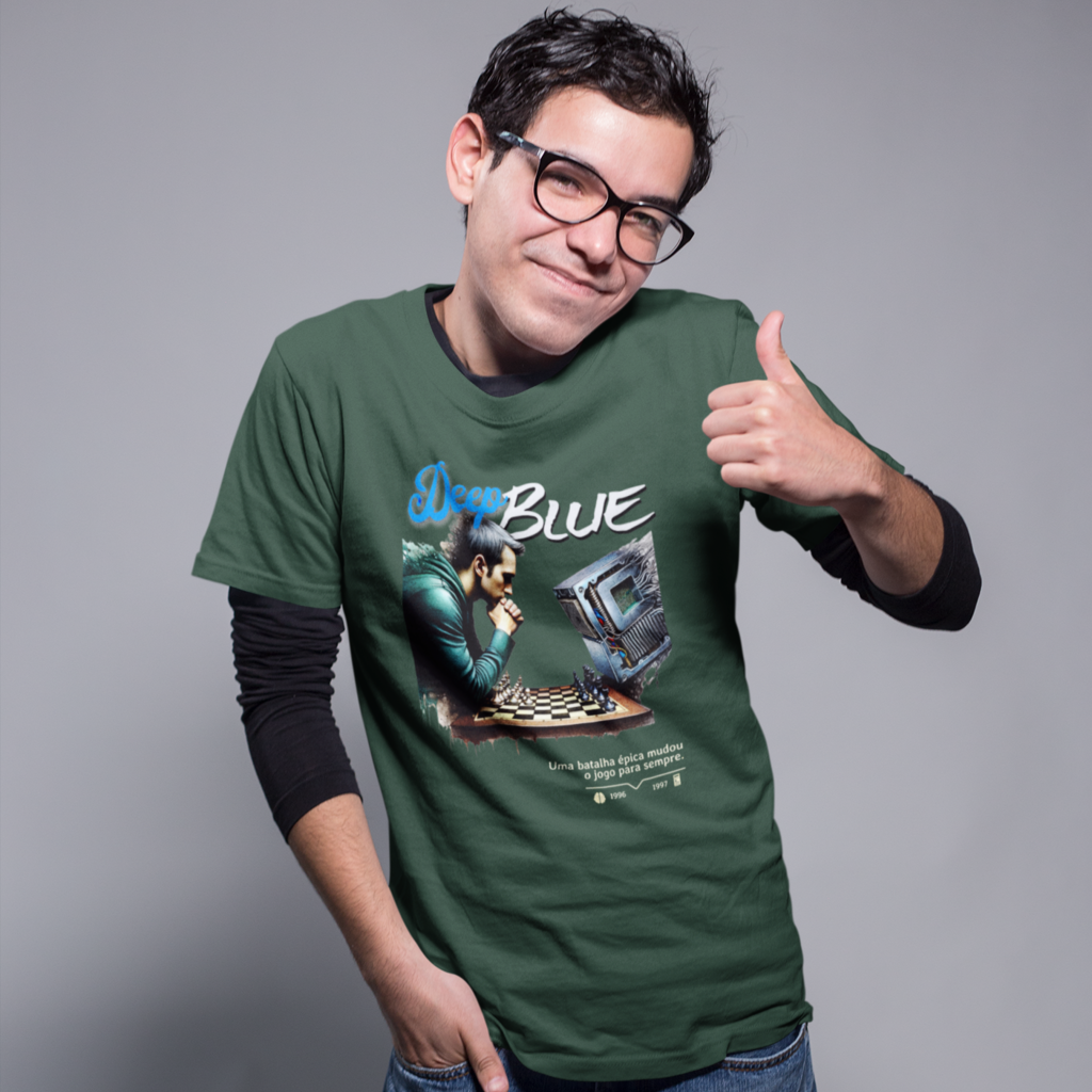 Inspirada na batalha entre Deep Blue e Gary Kasparov no xadrez, em 1996 e 1997, esta camiseta é maneira perfeita de lembrar o momento em que a máquina superou o homem, um marco histórico na evolução da humanidade.