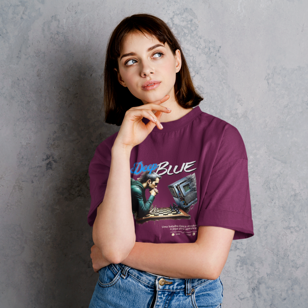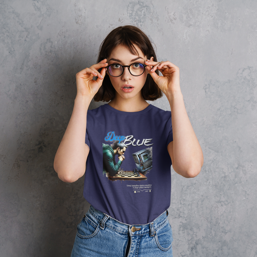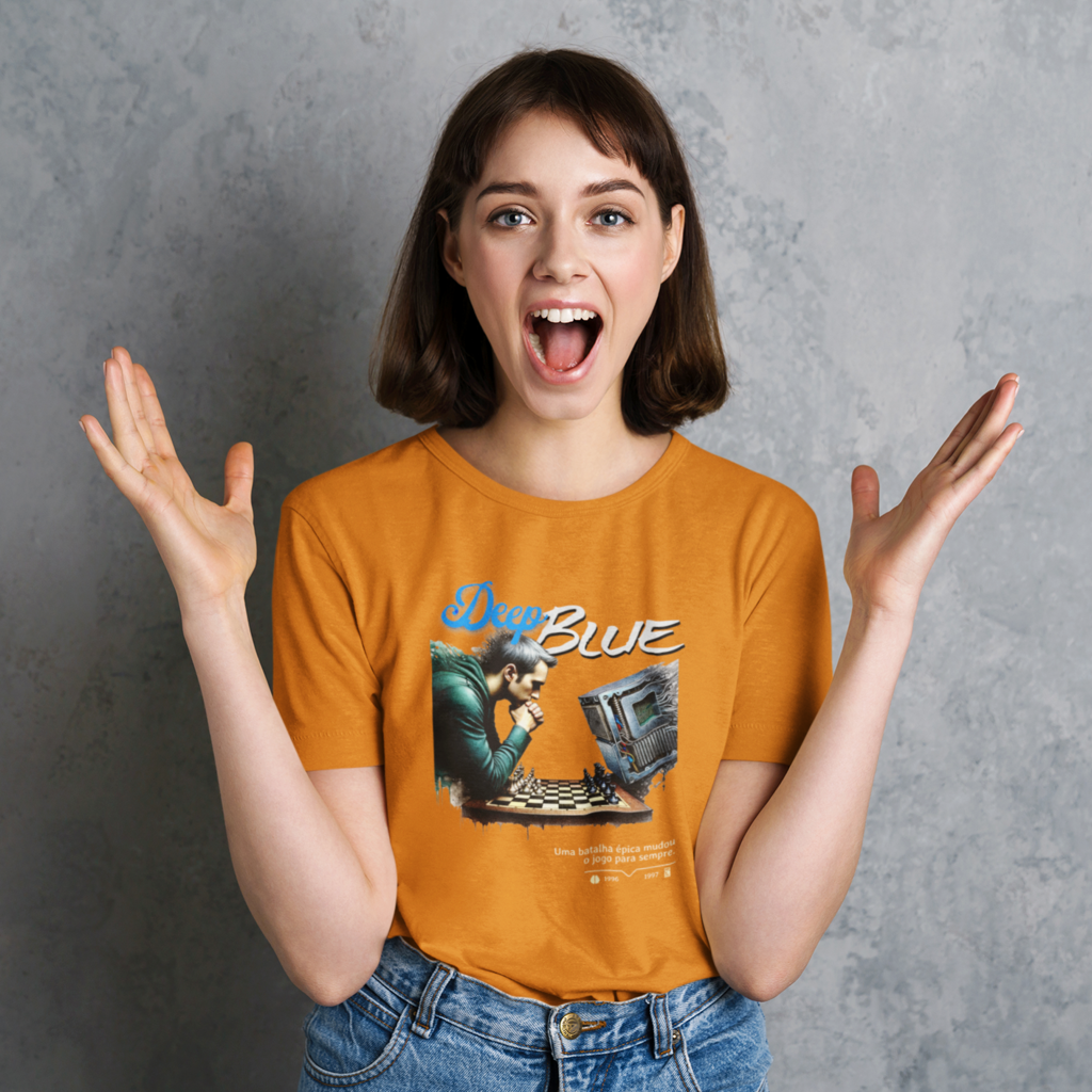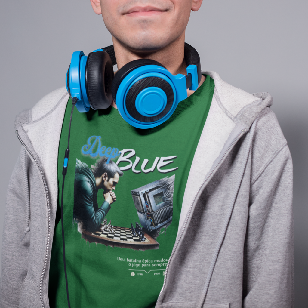 Inspirada na batalha entre Deep Blue e Gary Kasparov no xadrez, em 1996 e 1997, esta camiseta é maneira perfeita de lembrar o momento em que a máquina superou o homem, um marco histórico na evolução da humanidade.