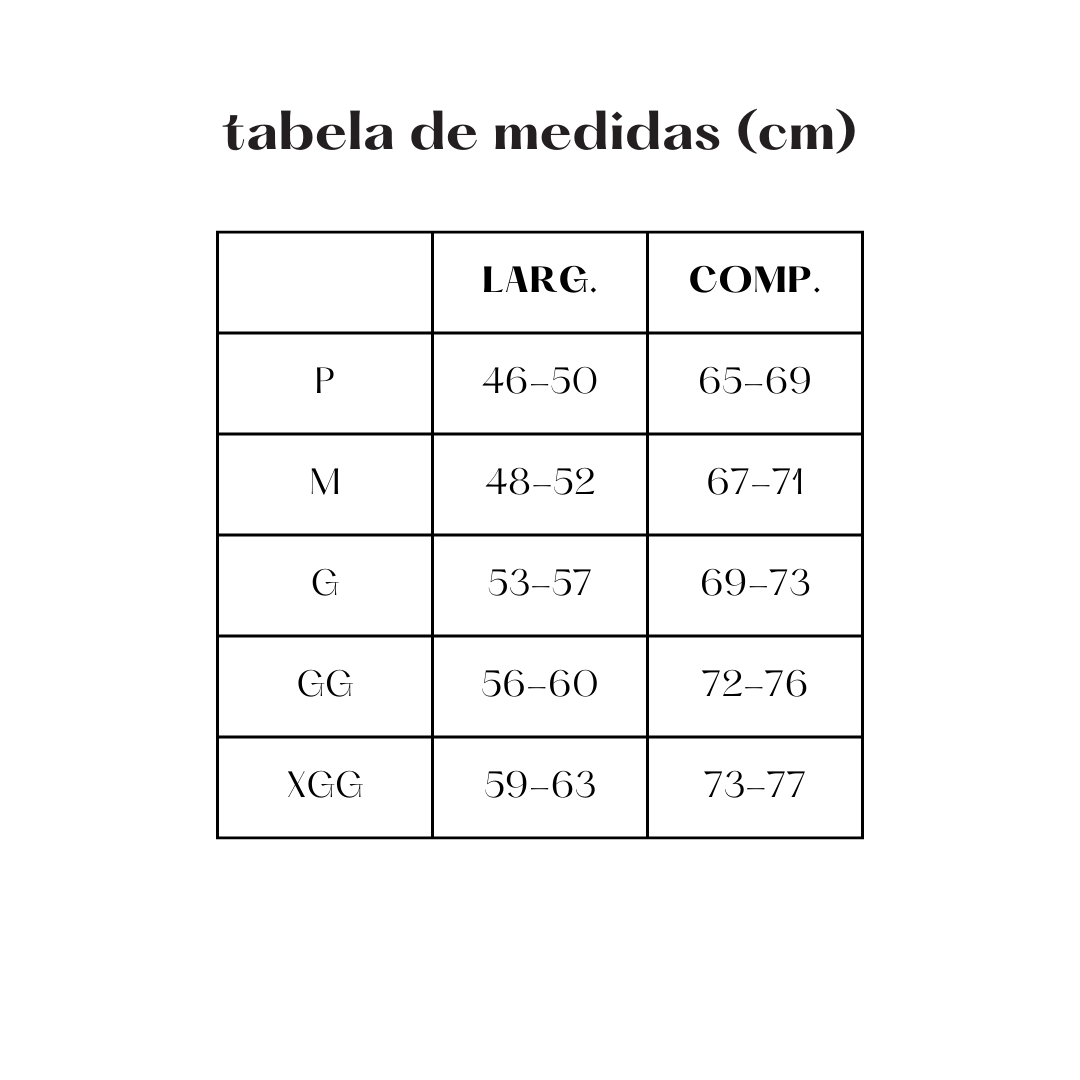 Atenção: As medidas podem variar um pouco, até 3cm pra mais ou pra menos, mas nada que mude o quanto ela vai ficar legal em você!