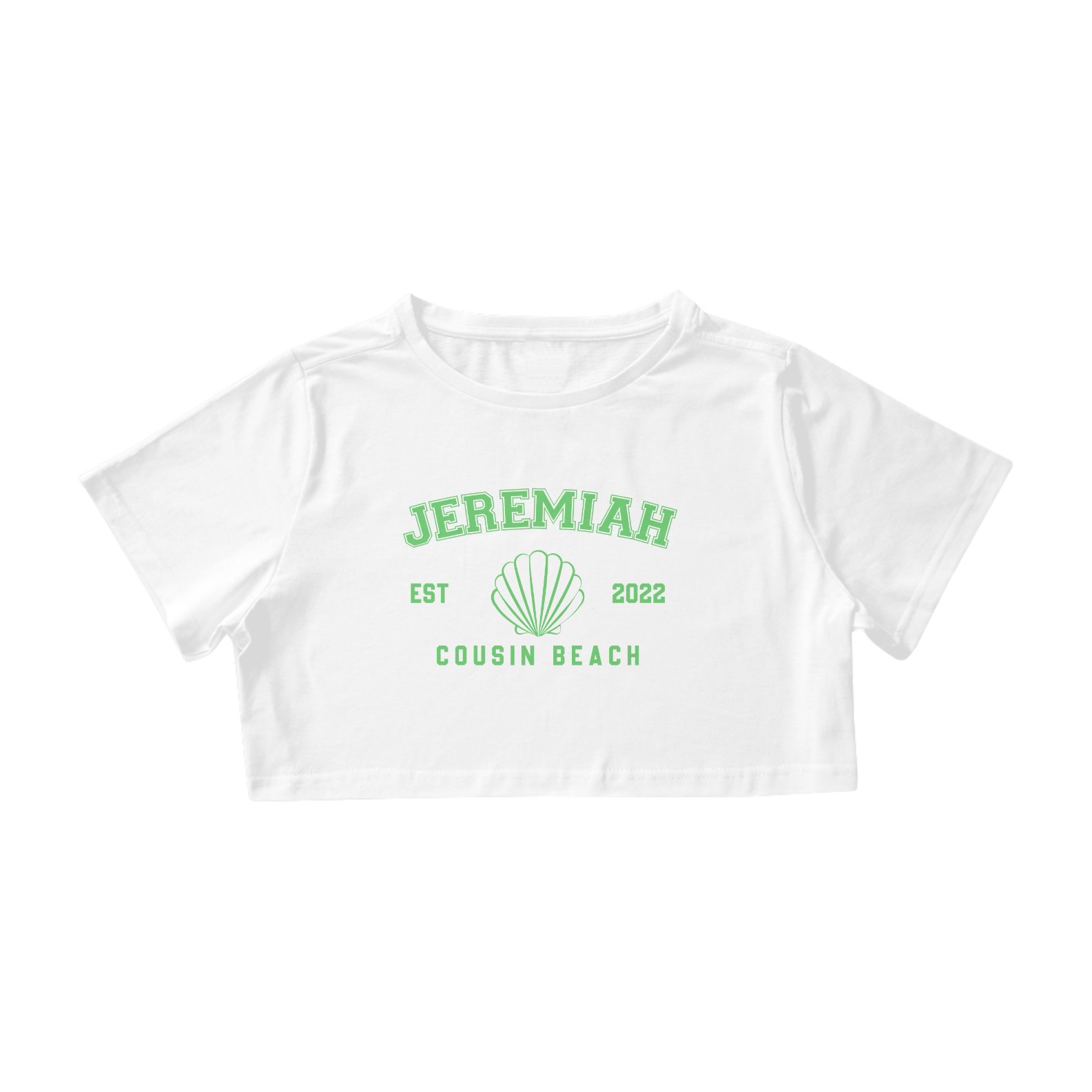 Traga o carisma contagiante de Jeremiah Fisher para o seu estilo com este cropped único inspirado em "The Summer I Turned Pretty". Representando o lado divertido, caloroso e inesquecível dos verões em Cousins Beach, esta peça é perfeita para quem adora um toque de alegria e romance na moda.
