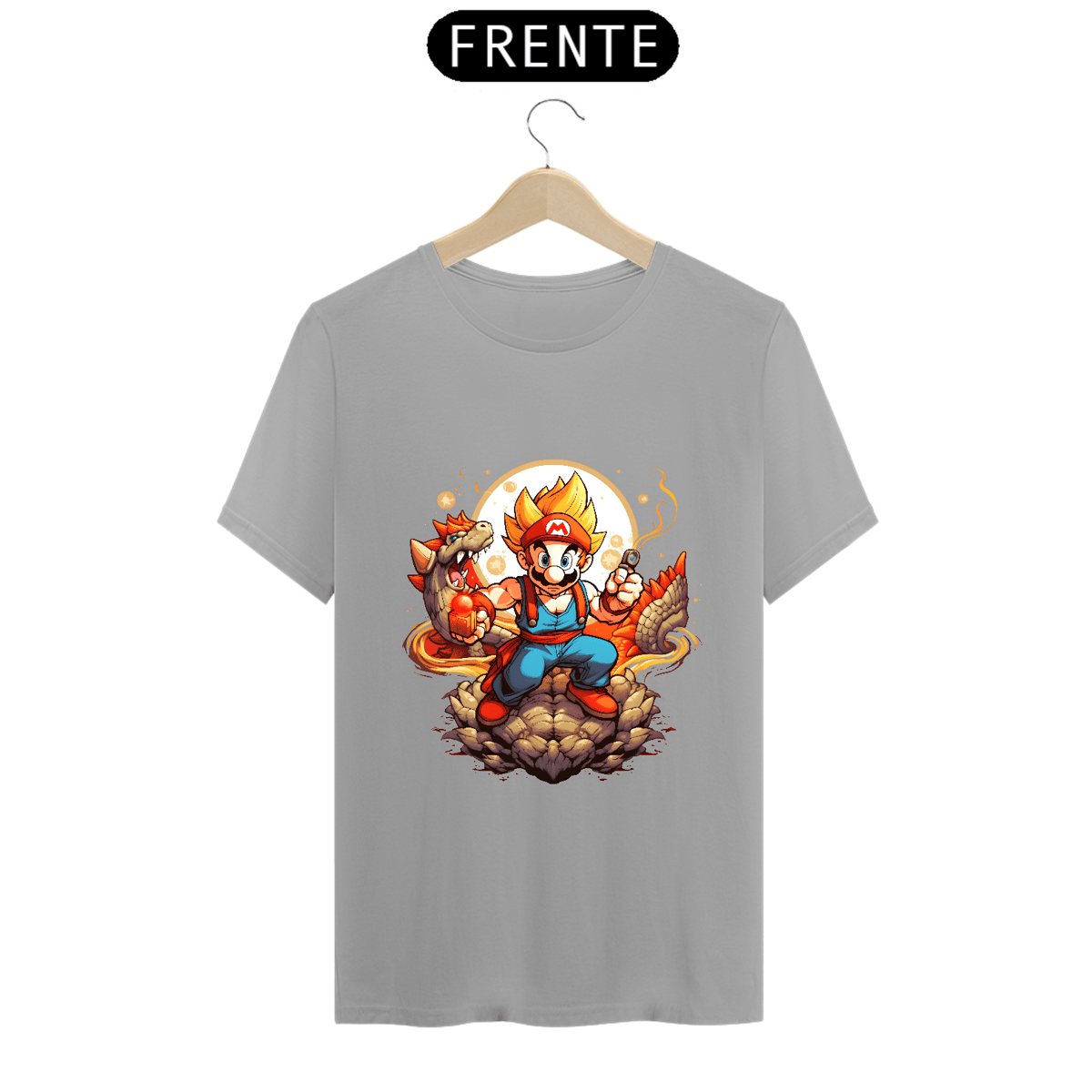 Então, pronto para embarcar em uma jornada épica onde o nosso herói bigodudo não apenas pula em cascos de tartaruga, mas também domina o poder dos Saiyajins? Prepare-se para mergulhar na diversão e no poder, tudo em uma única camiseta. E lembre-se, quando os cogumelos não são suficientes, há sempre um Super Saiyajin Mário pronto para salvar o dia!