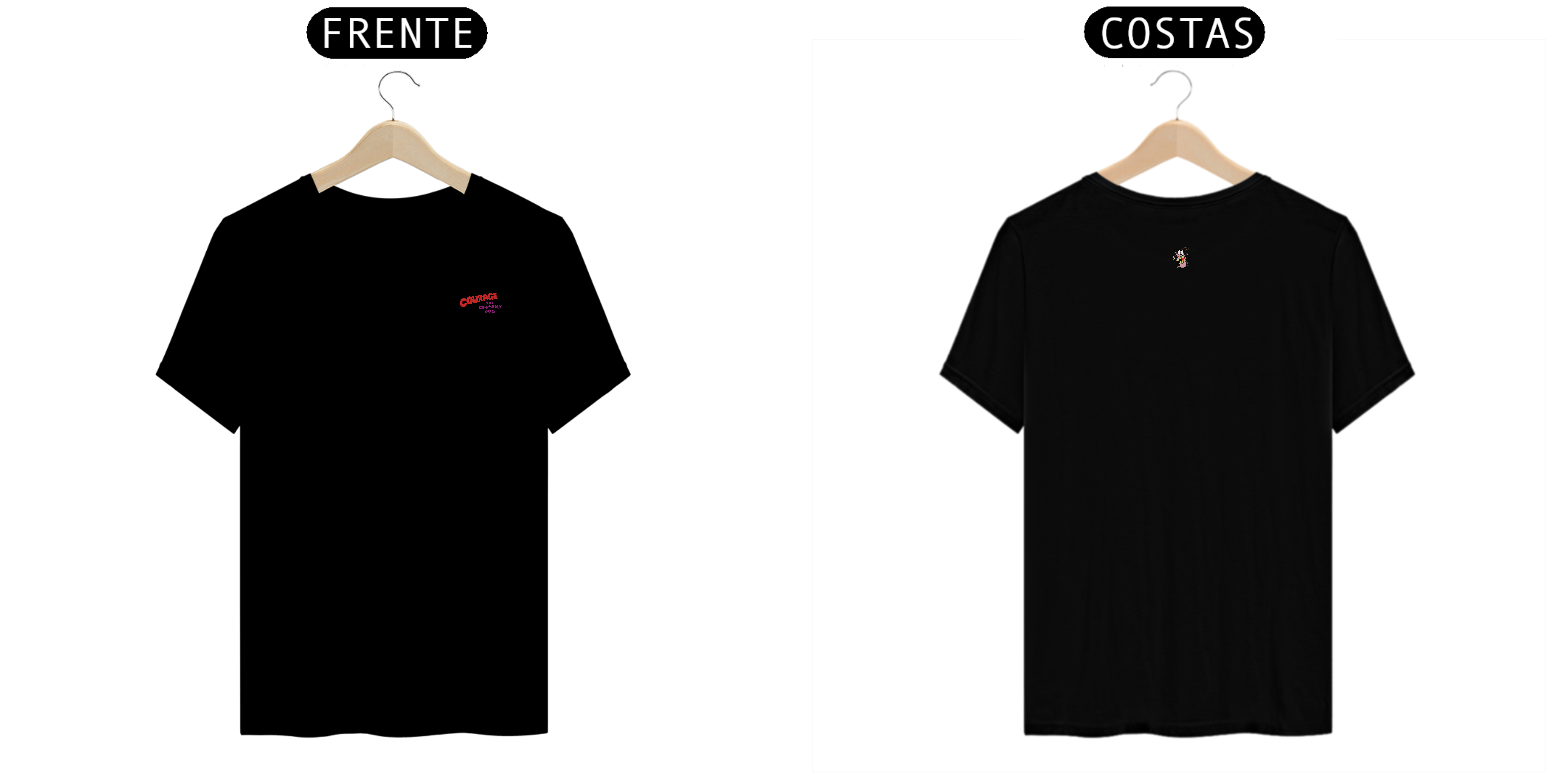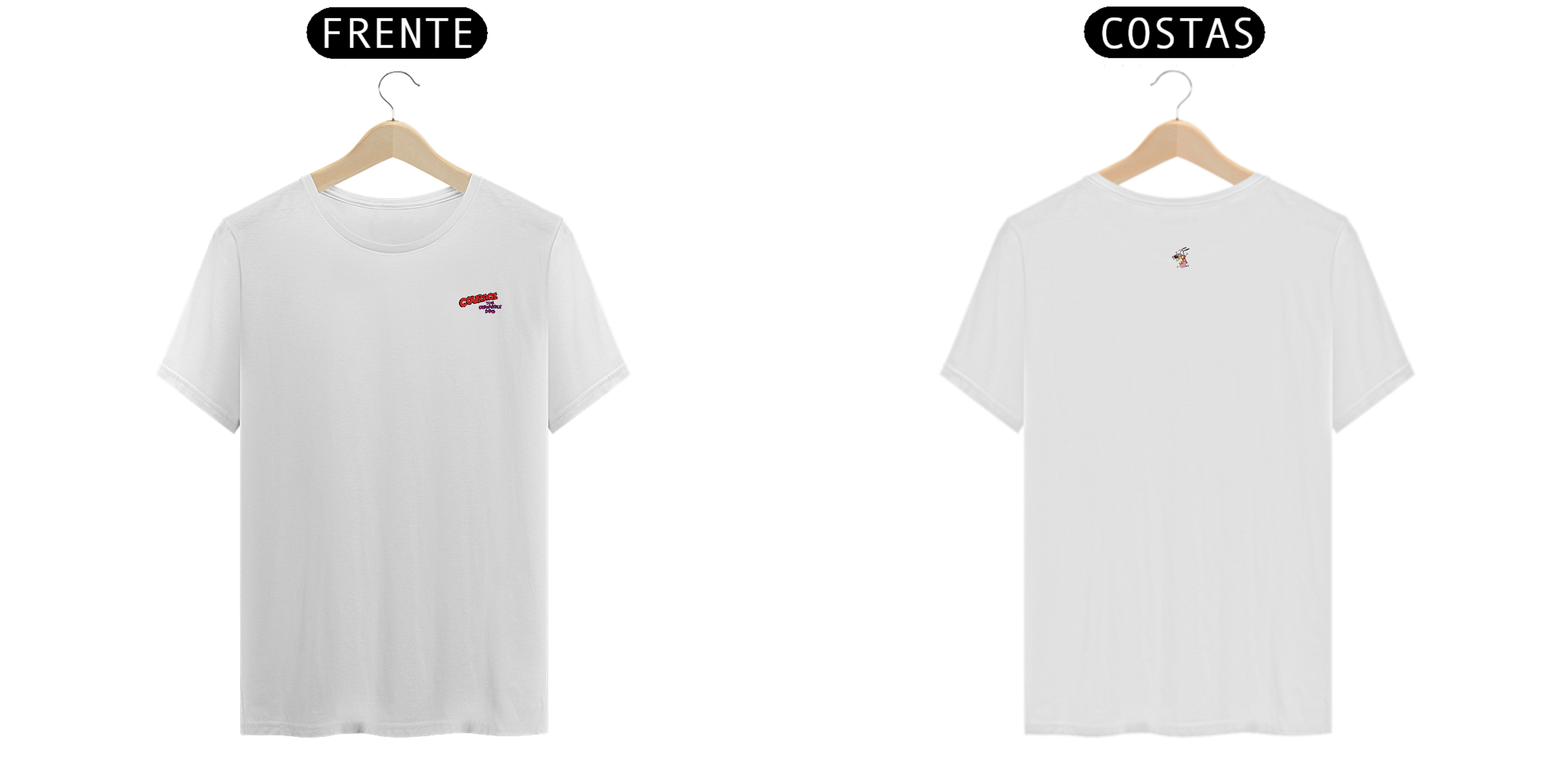 Reviva as aventuras assustadoramente divertidas de Coragem, o Cão Covarde com nossa camiseta exclusiva! Perfeita para os fãs do icônico desenho animado, esta peça é um tributo nostálgico ao corajoso cãozinho que enfrentava o medo para proteger seus amados donos.