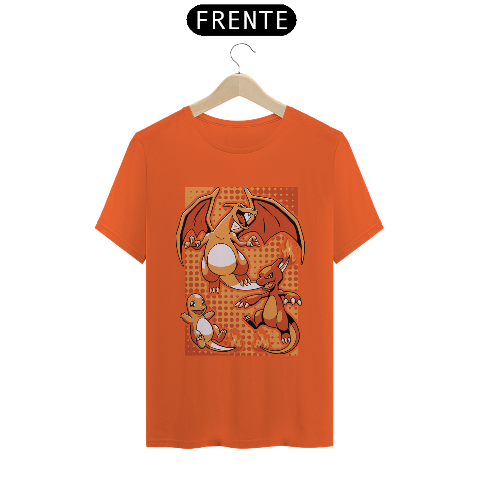 Do carismático Charmander ao imponente Charizard, essa camiseta traz a linha evolutiva do inicial de fogo mais lendário de Pokémon! Com um design marcante e cheio de nostalgia, é perfeita para treinadores que carregam a chama da determinação. Feita para quem não teme desafios, essa peça combina estilo e conforto em qualquer aventura!