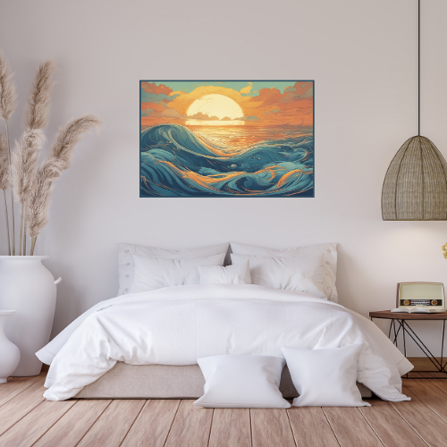 Mergulhe na tranquilidade e beleza do oceano com nossa coleção exclusiva de posters "2D Ocean Waves". Cada peça desta coleção captura o movimento hipnotizante e a força serena das ondas do mar, transformadas em arte gráfica vibrante e expressiva em 2D.
