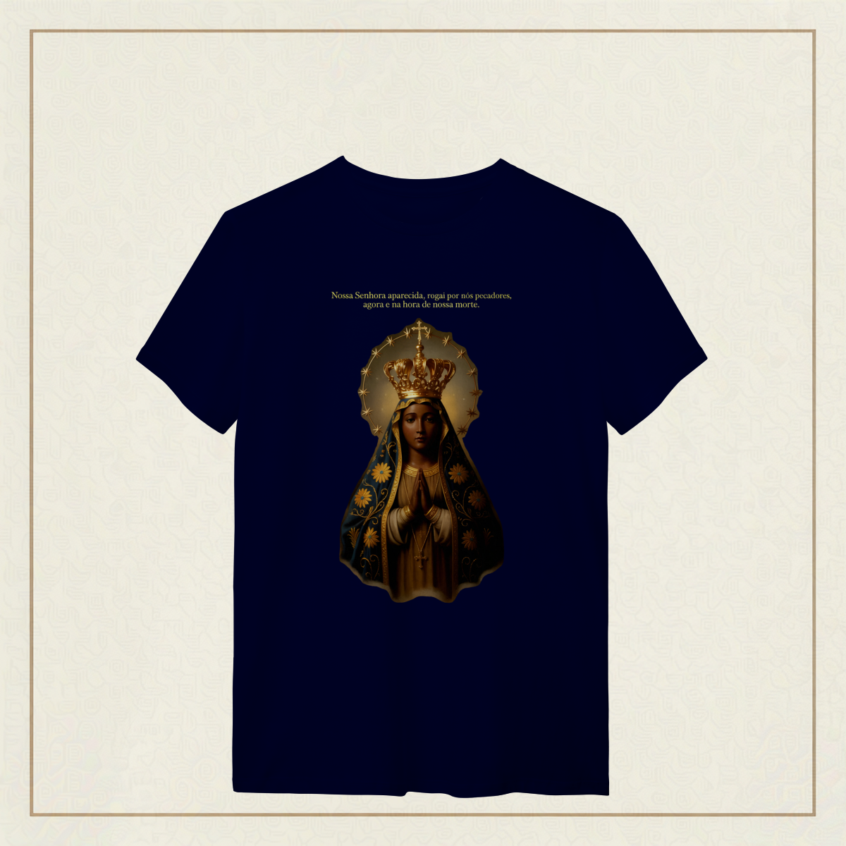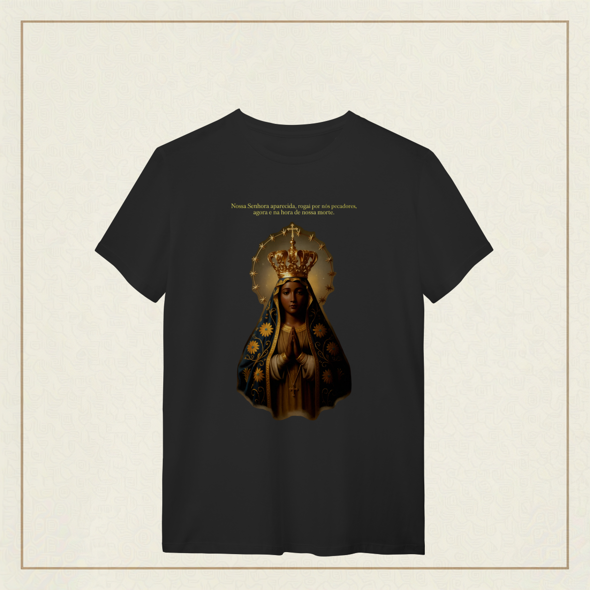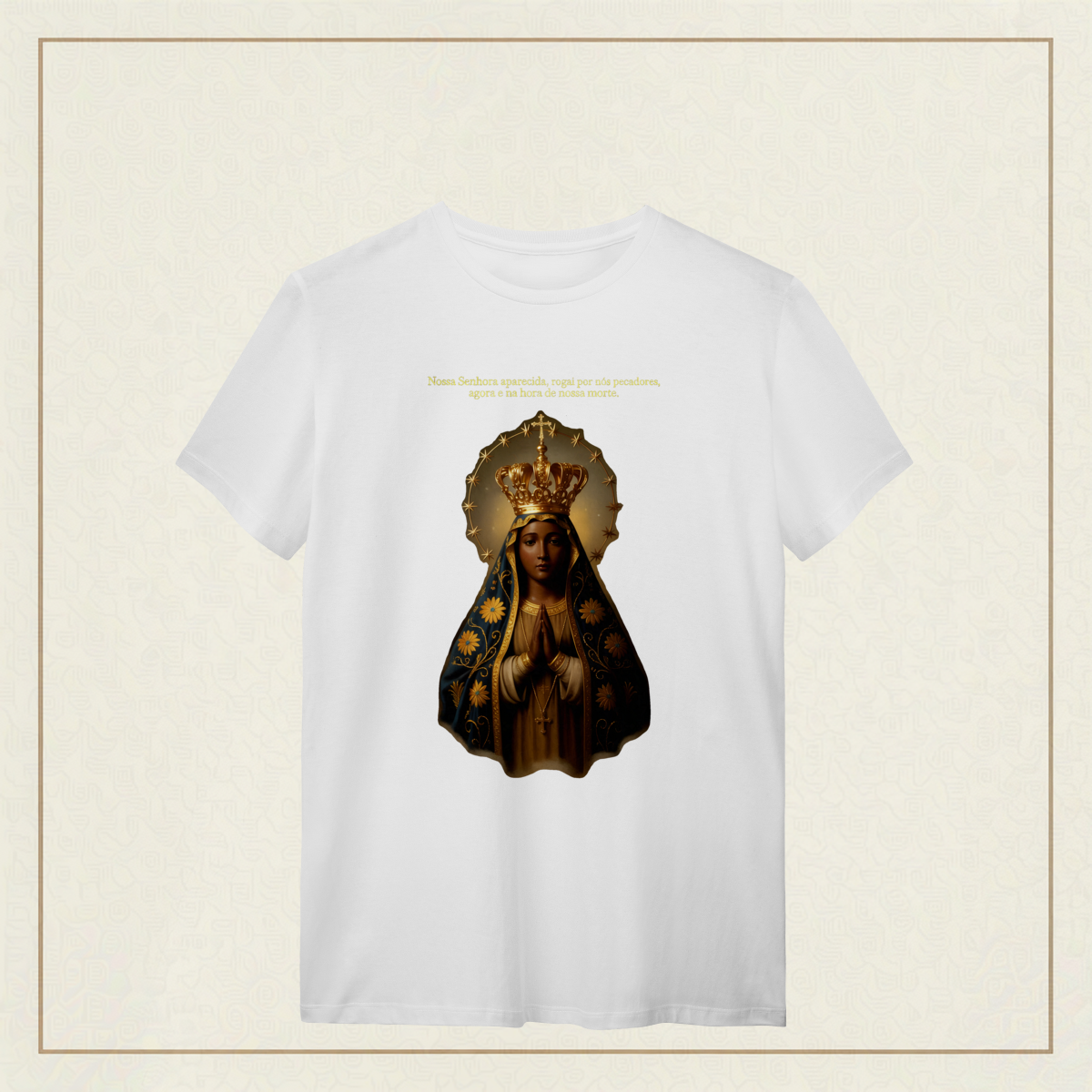 Com o olhar sereno e o manto bordado de fé, Nossa Senhora Aparecida, padroeira do Brasil, nos acolhe com amor e intercede por todos os que clamam por esperança e proteção. Que seu coração materno nos acompanhe nos dias bons e nos difíceis, e que sua presença seja farol na escuridão. Uma estampa para carregar no peito a certeza de que nunca caminhamos sozinhos.