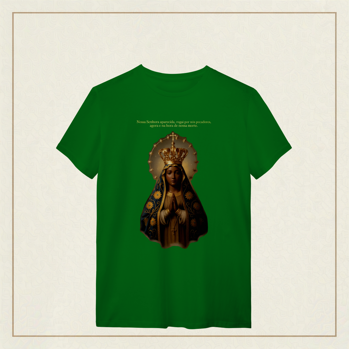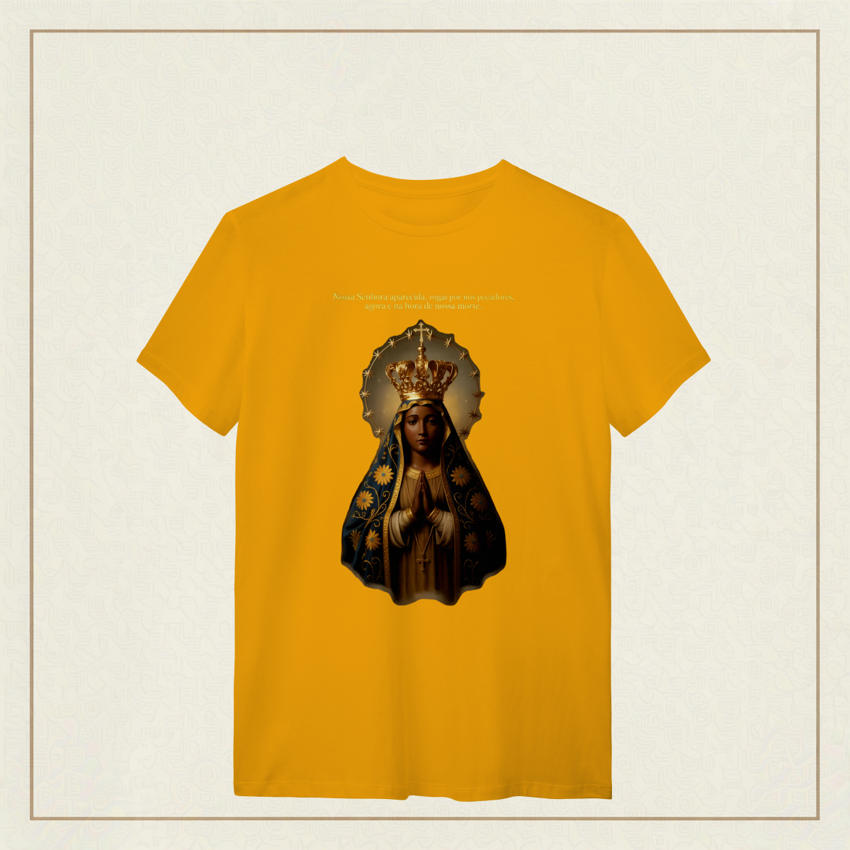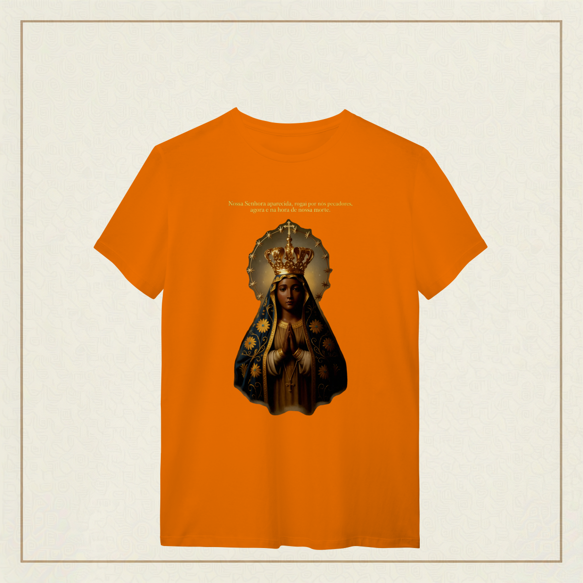 Com o olhar sereno e o manto bordado de fé, Nossa Senhora Aparecida, padroeira do Brasil, nos acolhe com amor e intercede por todos os que clamam por esperança e proteção. Que seu coração materno nos acompanhe nos dias bons e nos difíceis, e que sua presença seja farol na escuridão. Uma estampa para carregar no peito a certeza de que nunca caminhamos sozinhos.