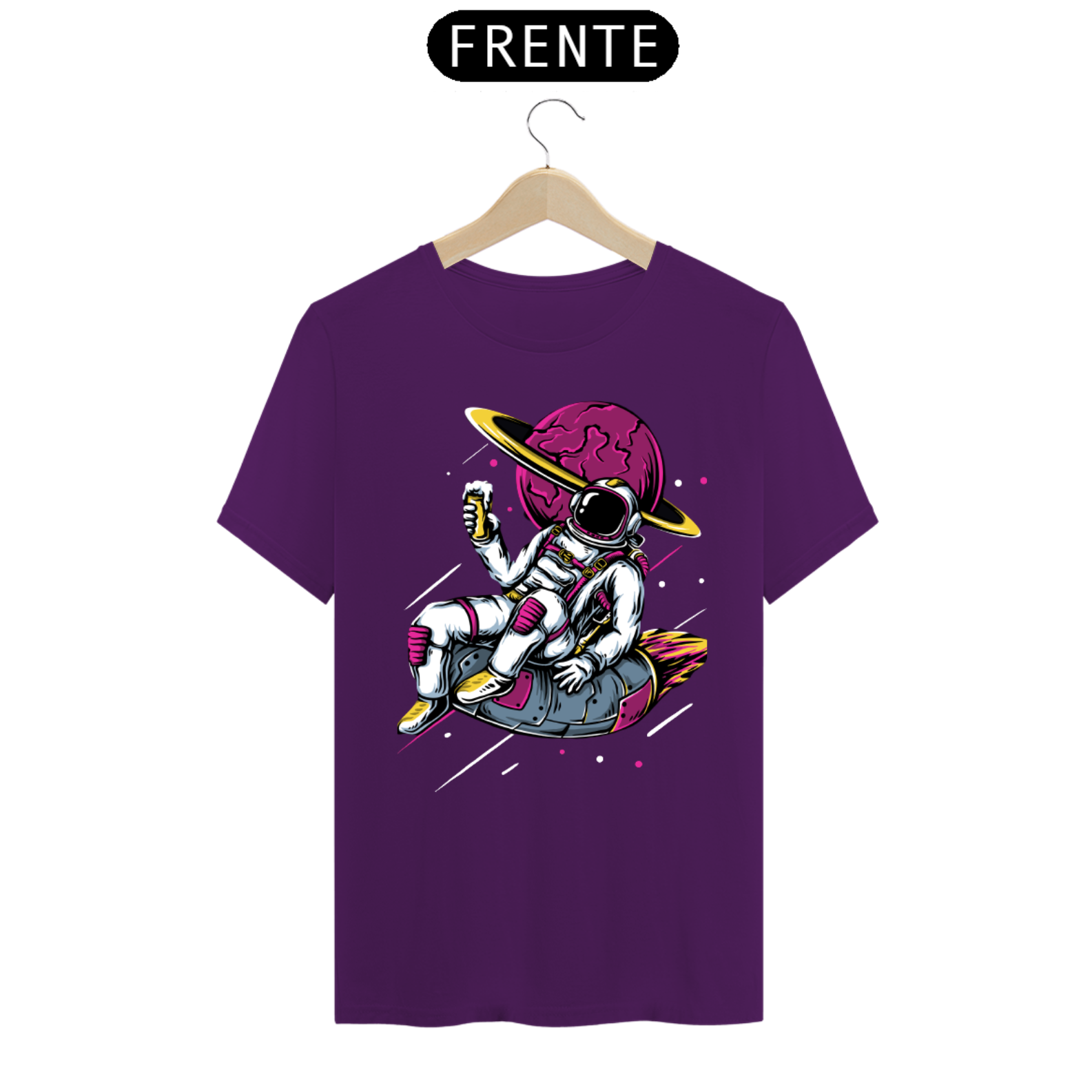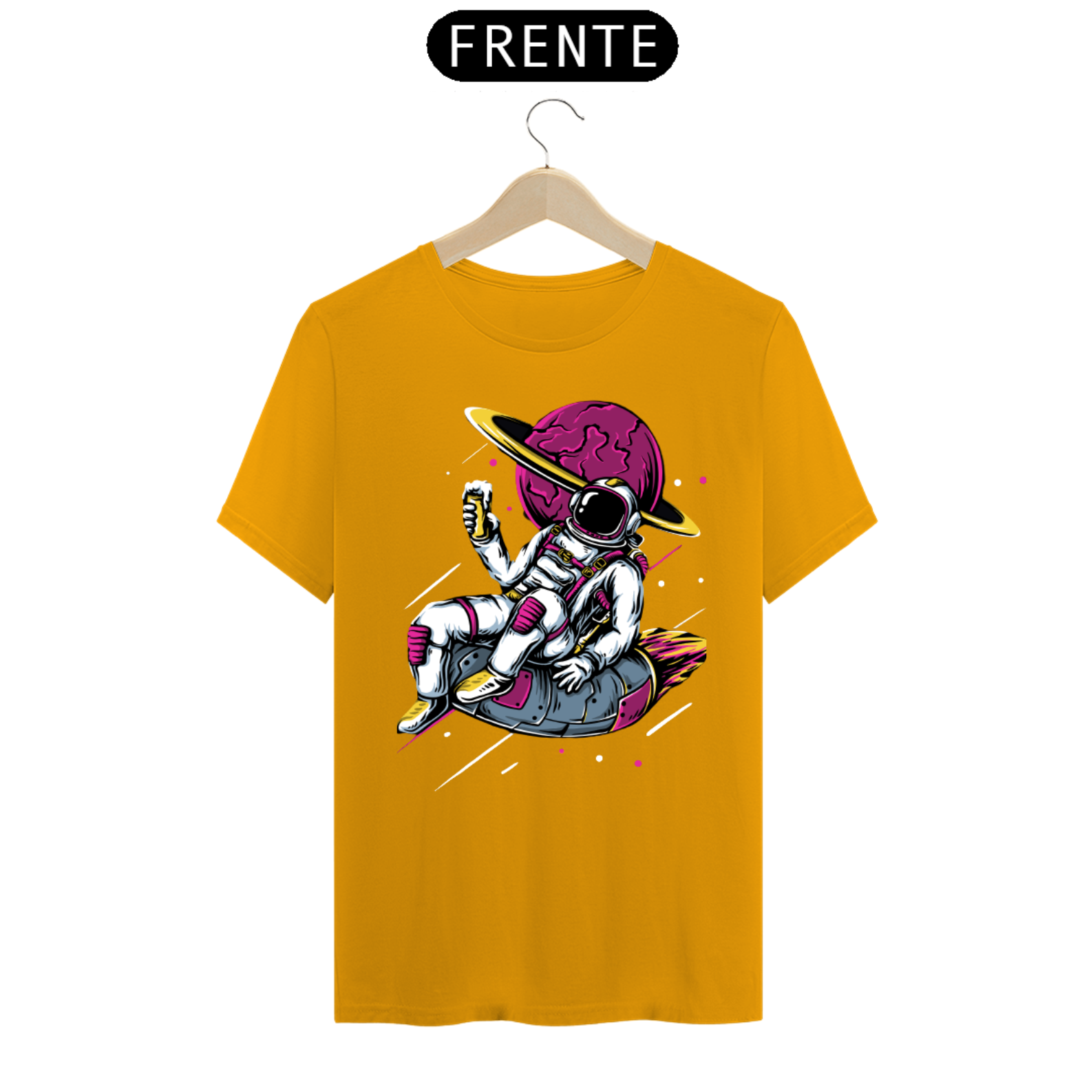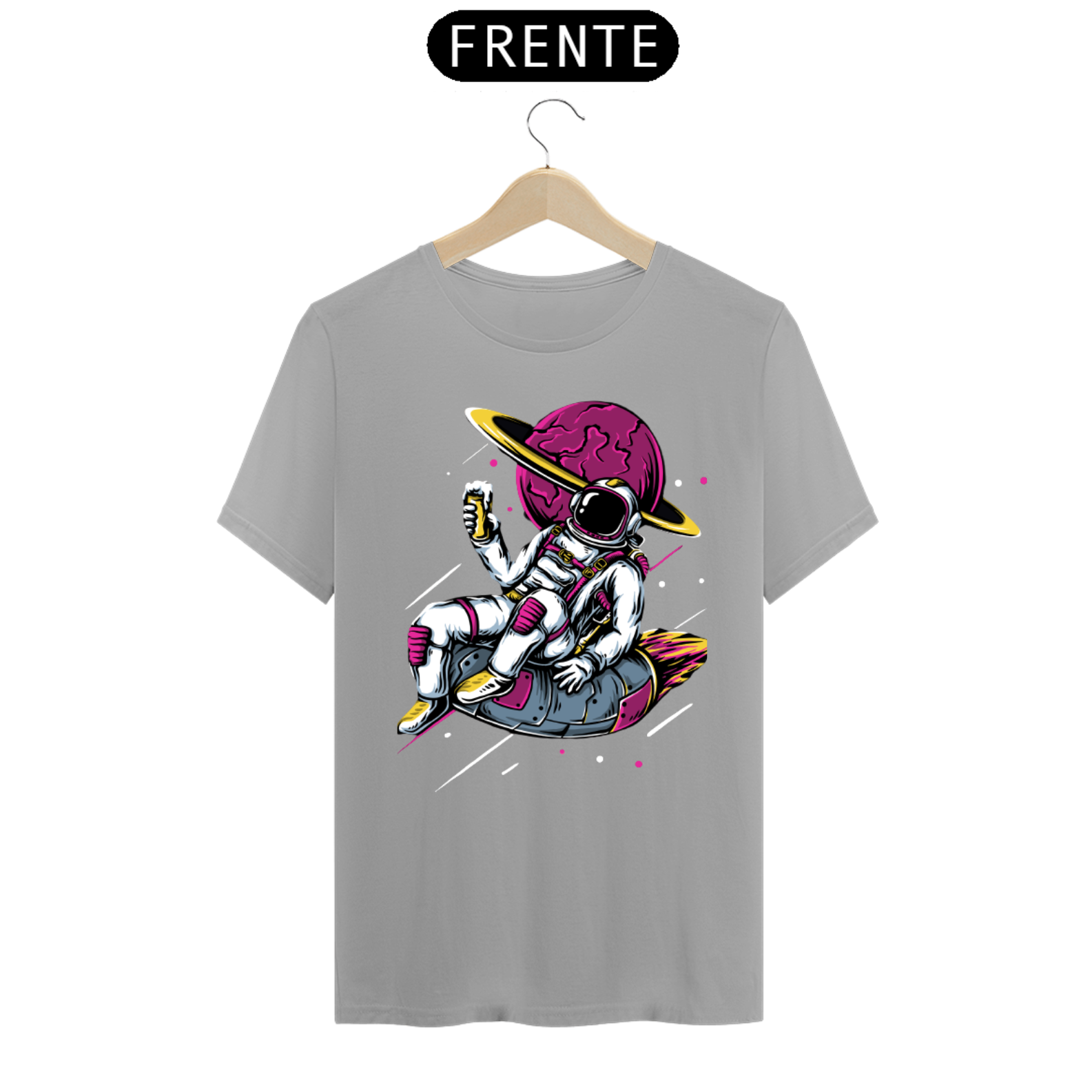 Esta camiseta é uma jornada visual para os amantes da exploração espacial e da aventura cósmica. Ela captura a imaginação e a curiosidade que estão intrinsecamente ligadas à figura do astronauta, transportando você para os mistérios do espaço sideral.