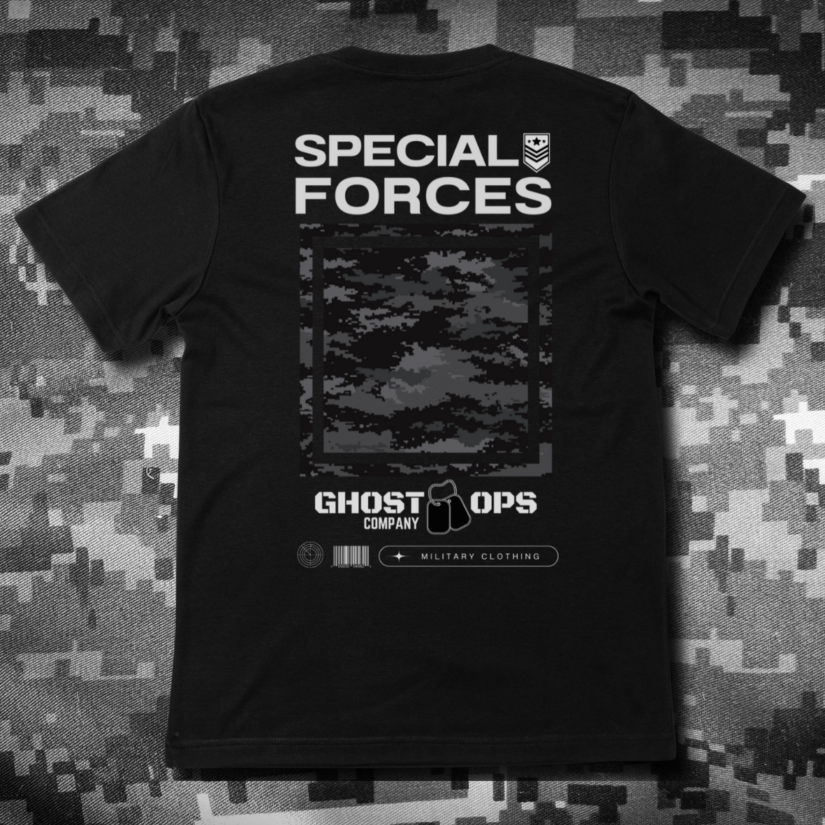 Special Forces é a peça mais versátil da coleção, trazendo uma camuflagem em tons de preto e cinza que simboliza discrição e adaptação em qualquer ambiente. Inspirada nas forças especiais, que são conhecidas por sua precisão e eficiência, essa peça reflete a habilidade de se destacar em qualquer situação, mantendo o foco e a resistência. Feita com tecidos de alta qualidade, ela oferece estilo e funcionalidade para quem valoriza ação e movimento, sem abrir mão de conforto e durabilidade.
