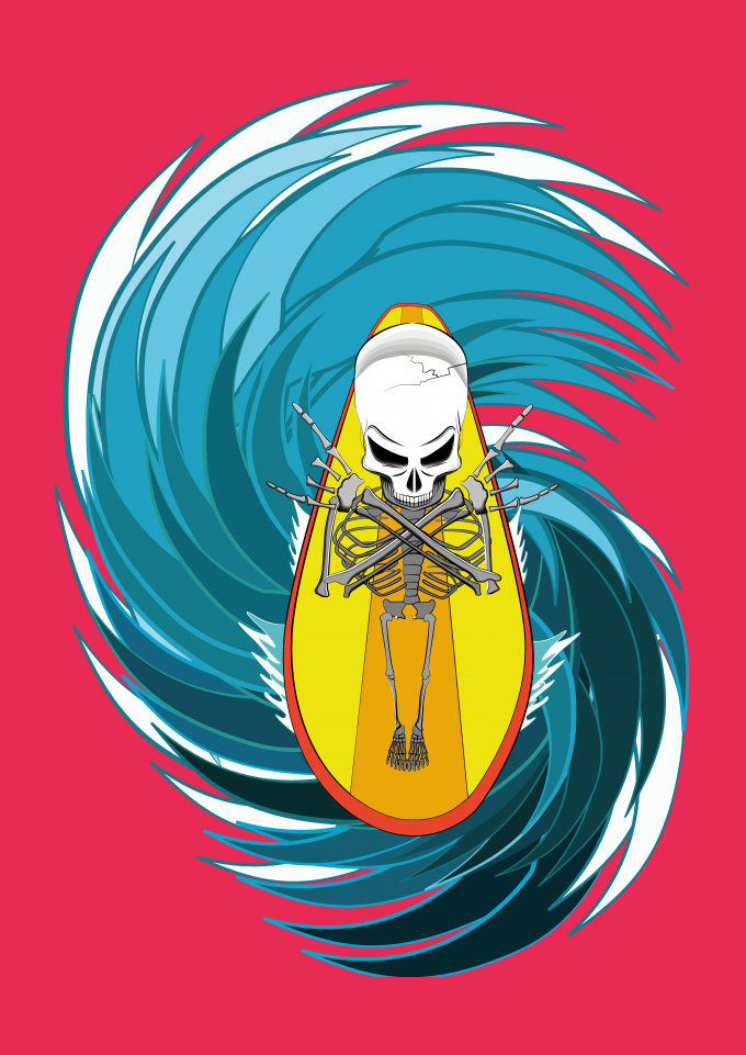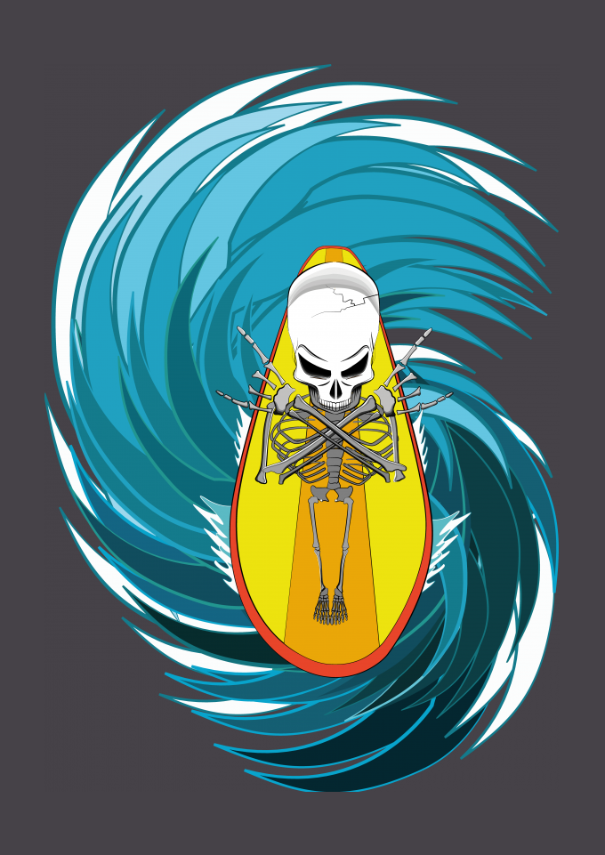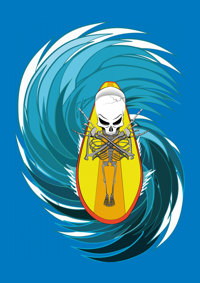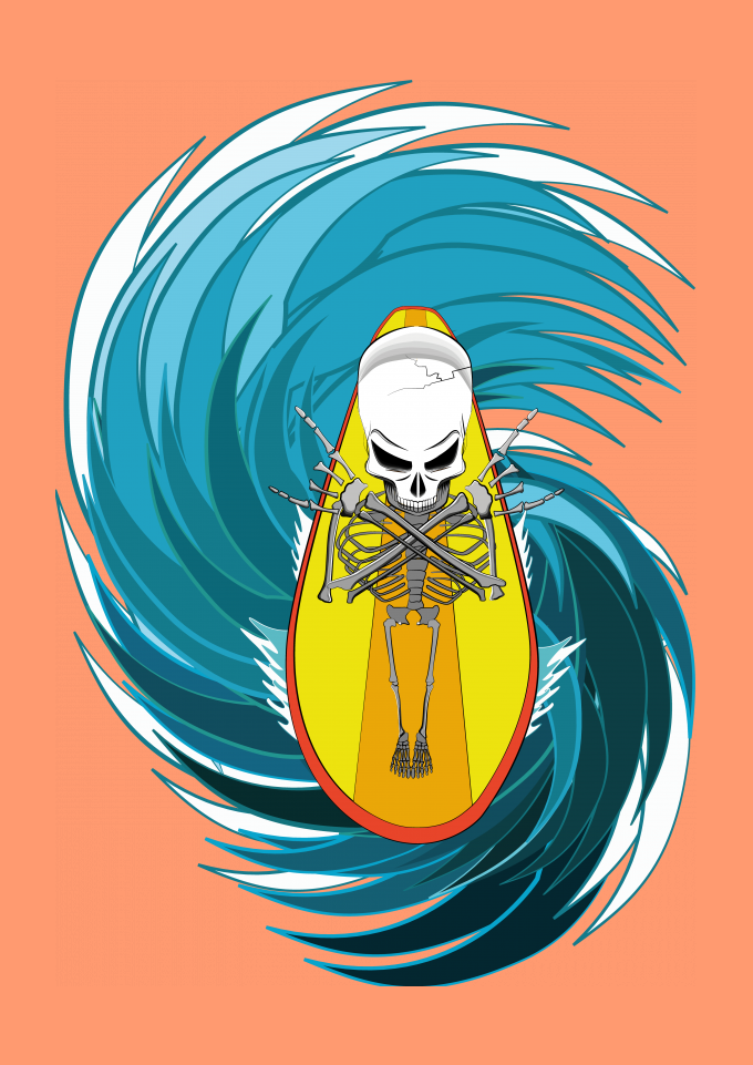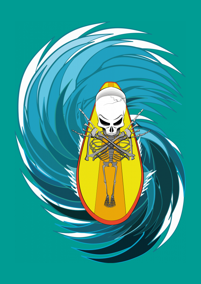 Surf Esqueleto Caveira Água Esporte