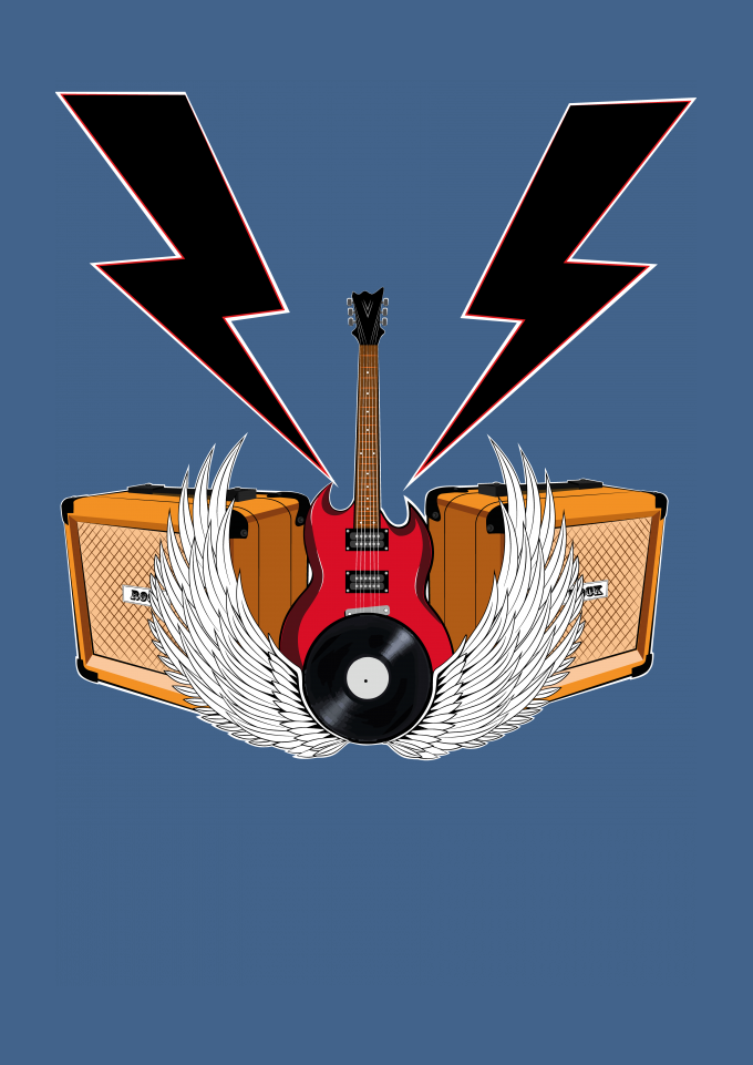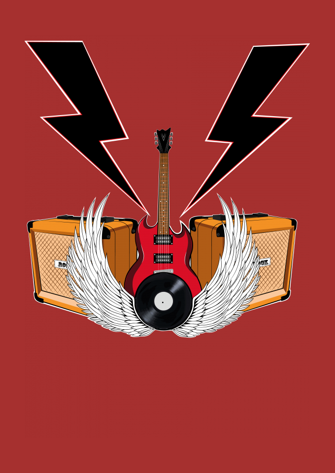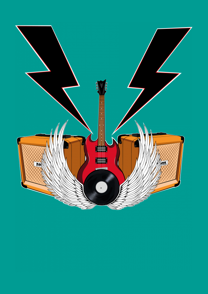Rock, Guitarra, Amplificador, Raio, Disco de Vinil, Liberdade, Asas