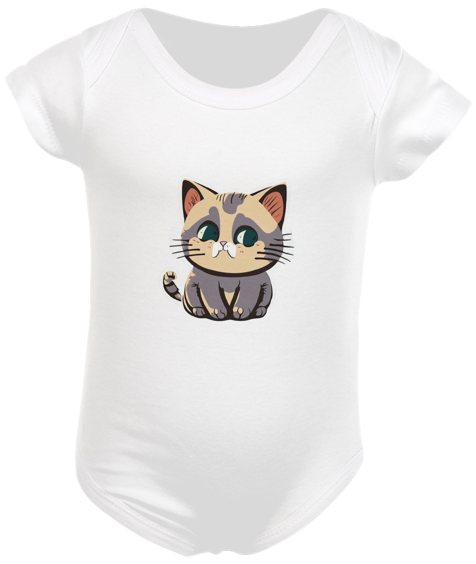 Composição: 100% algodão, meia malha penteada, costura reforçada, viés na gola, mangas curtas.