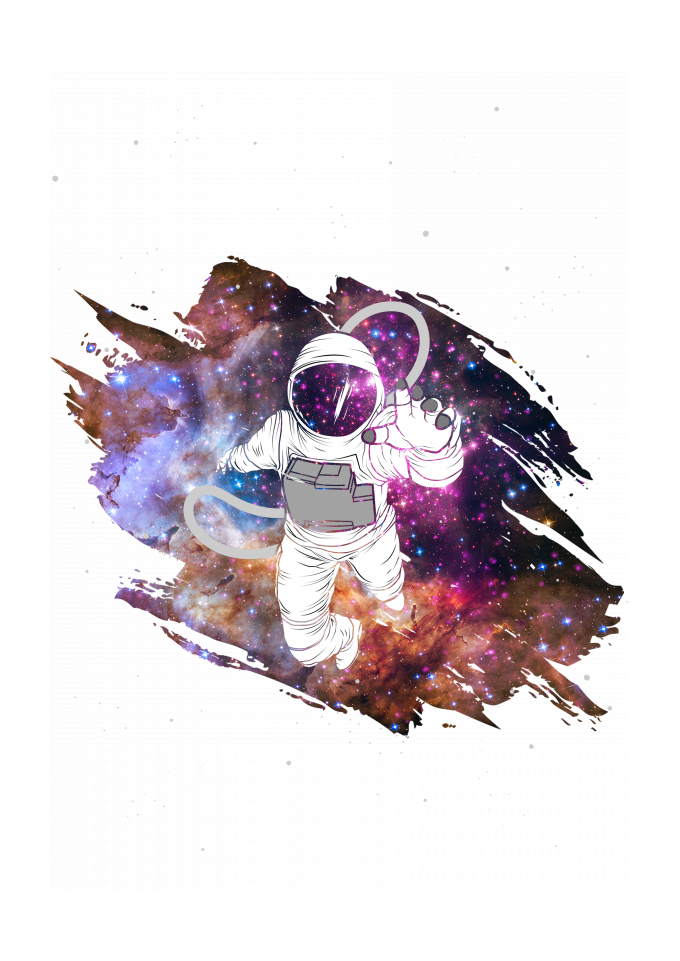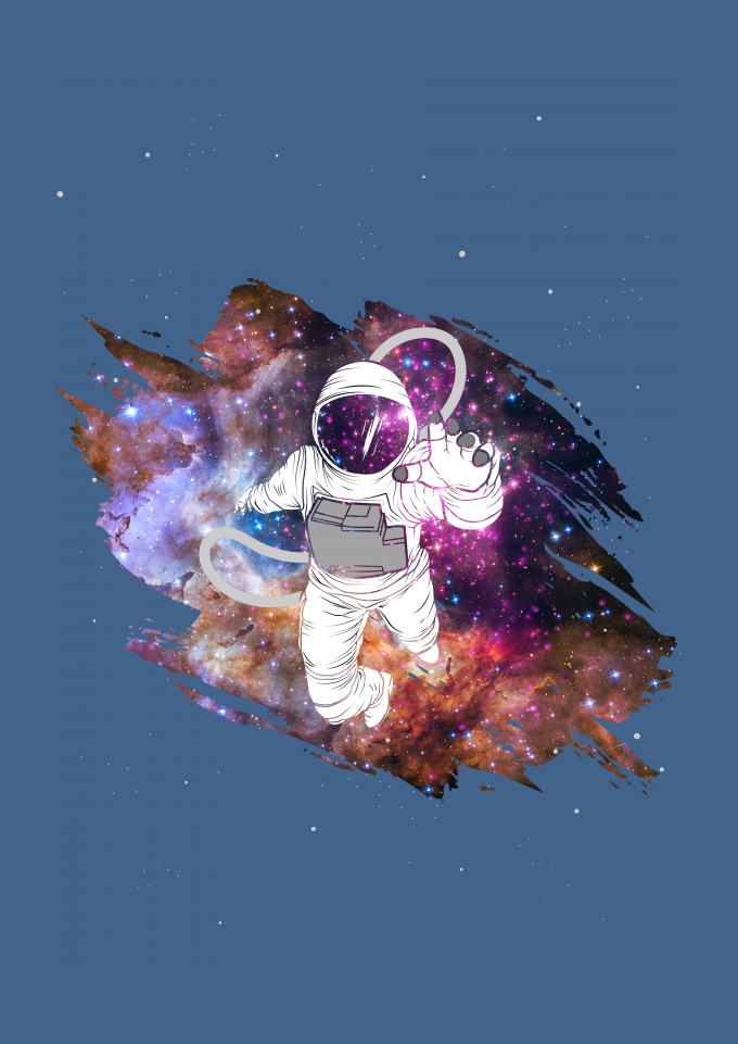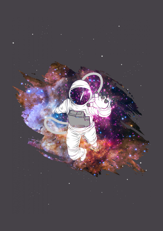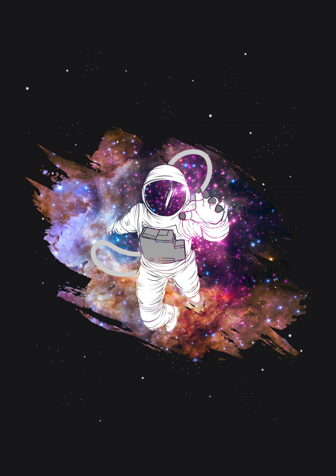 Astronauta perdido no universo / galaxia com uma mistura de ilustração 2D com um portal para a realidade - Astro Galaxy