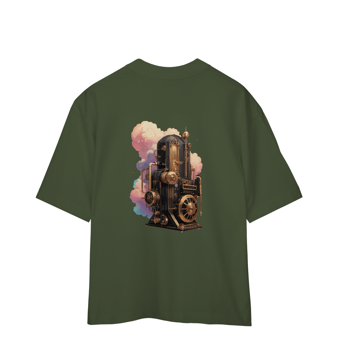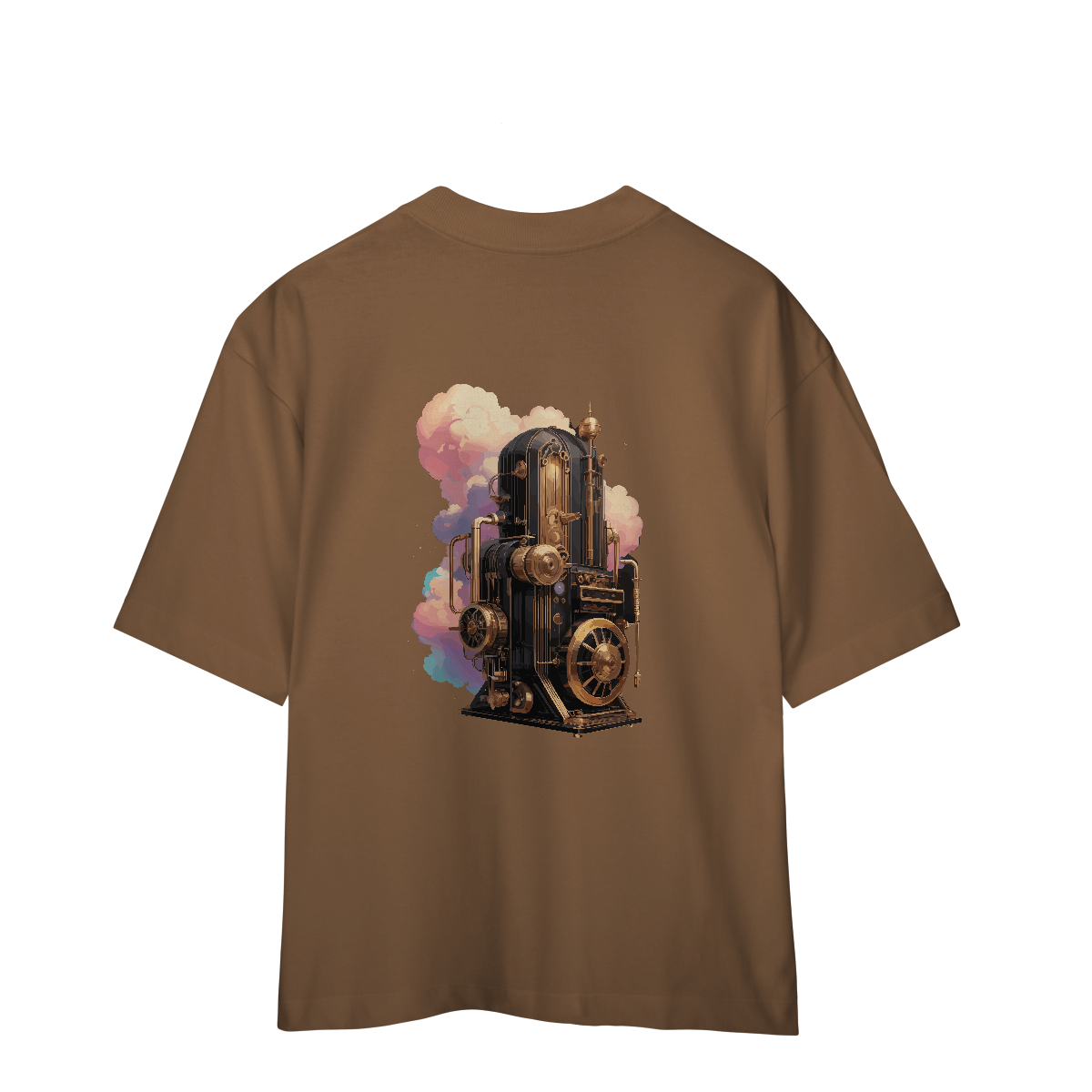 A representação de uma máquina do tempo feita de cobre envelhecido, válvulas e engrenagens eternas. Cronomotor Ancestral traz no peito a sensação de carregar eras inteiras nas costas. Perfeita para quem vive entre o agora e o imaginário.