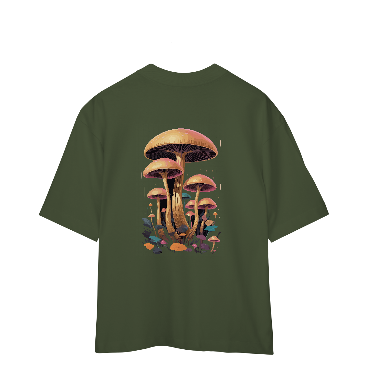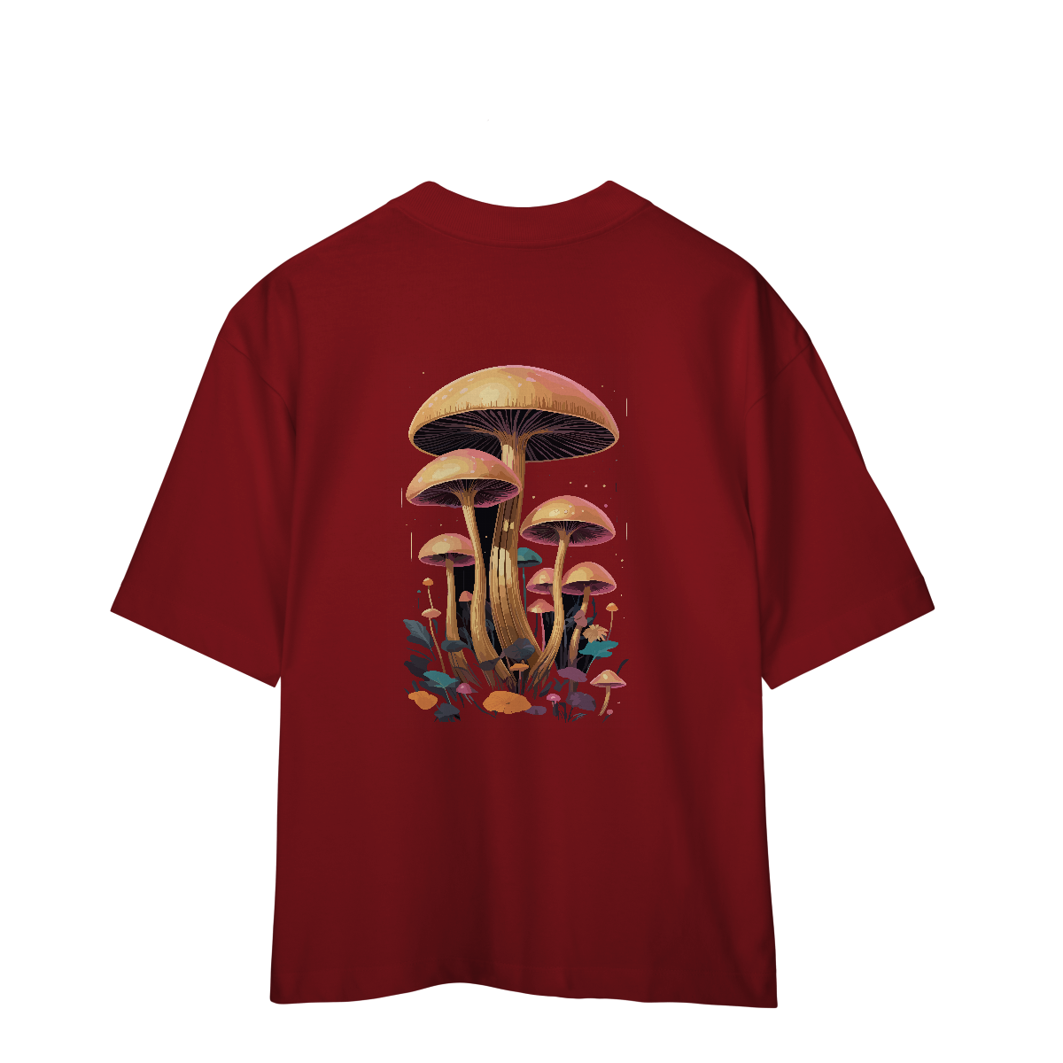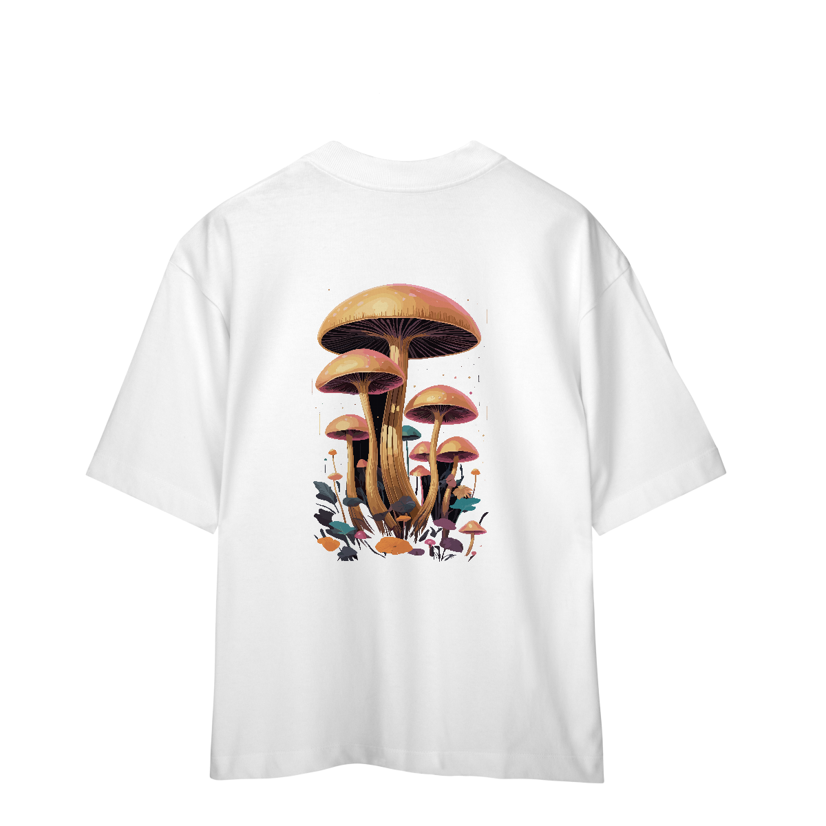 Um universo oculto se revela entre chapéus coloridos, caules tortuosos e formas alucinantes. A estampa reúne diversos cogumelos psicodélicos em um cenário vivo, como uma floresta encantada em movimento. Cores intensas e traços retrô criam um convite visual para se perder — ou se encontrar — no mundo subterrâneo da imaginação.