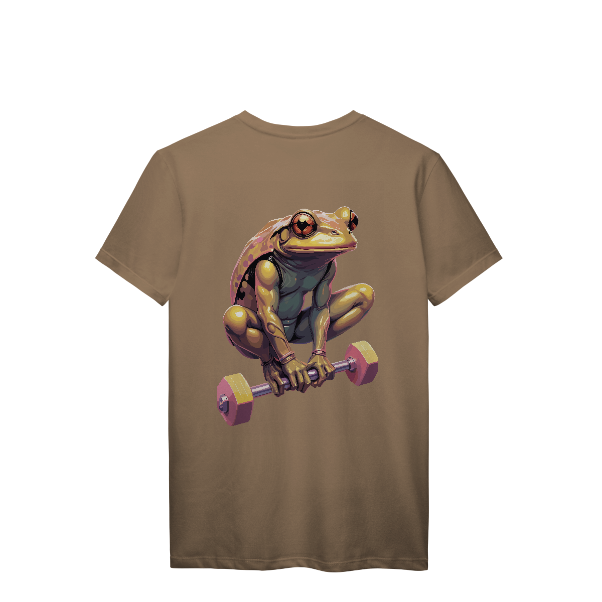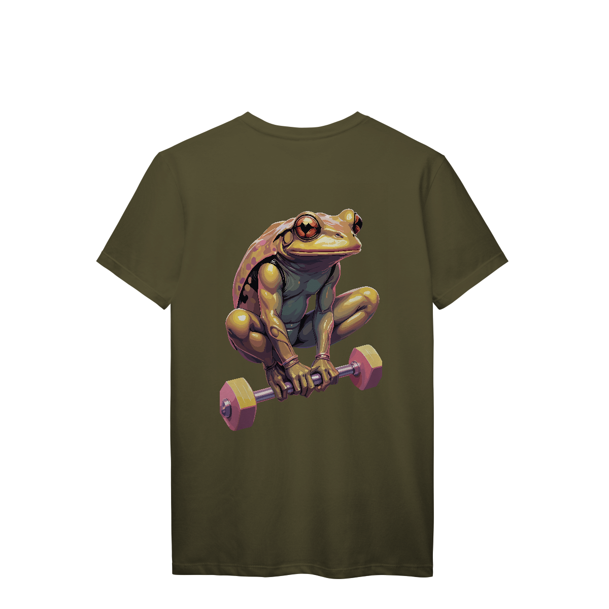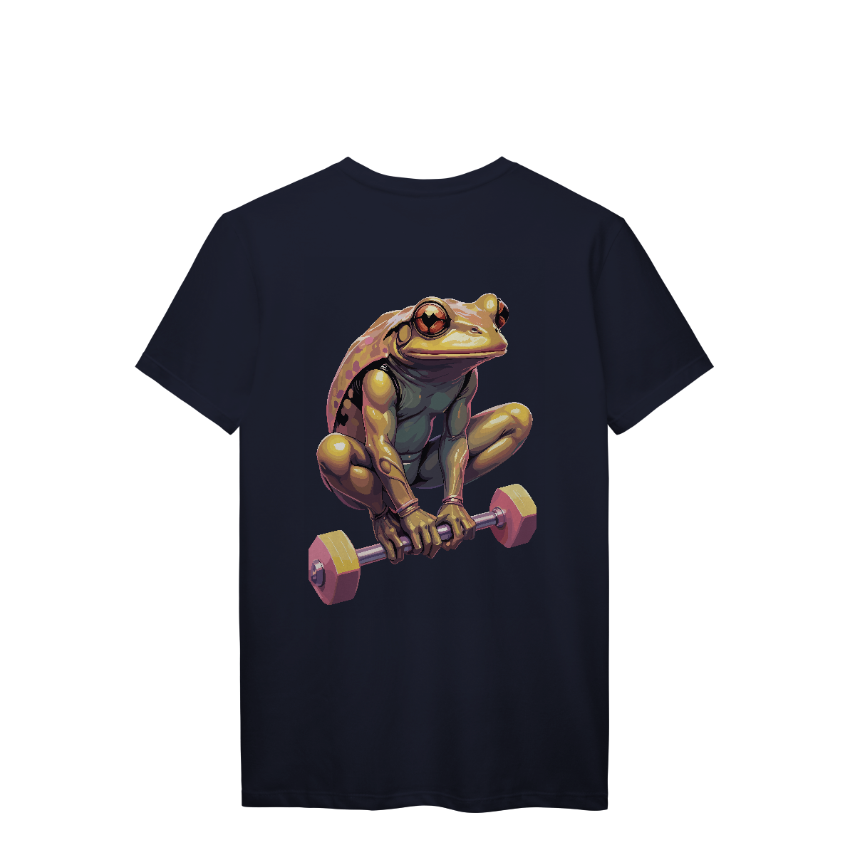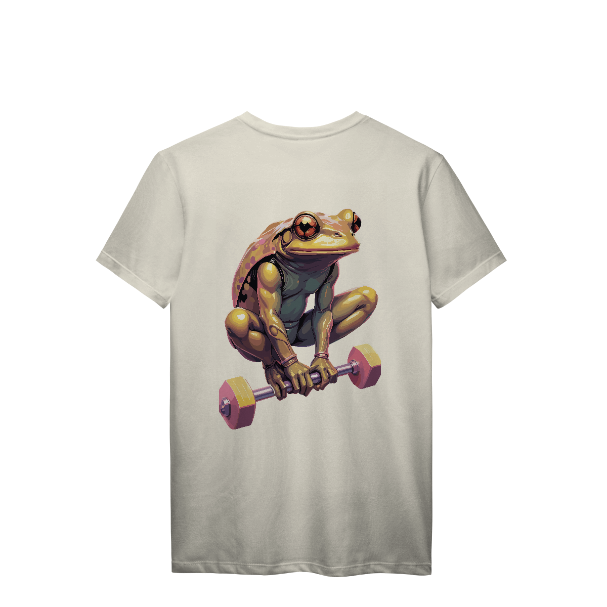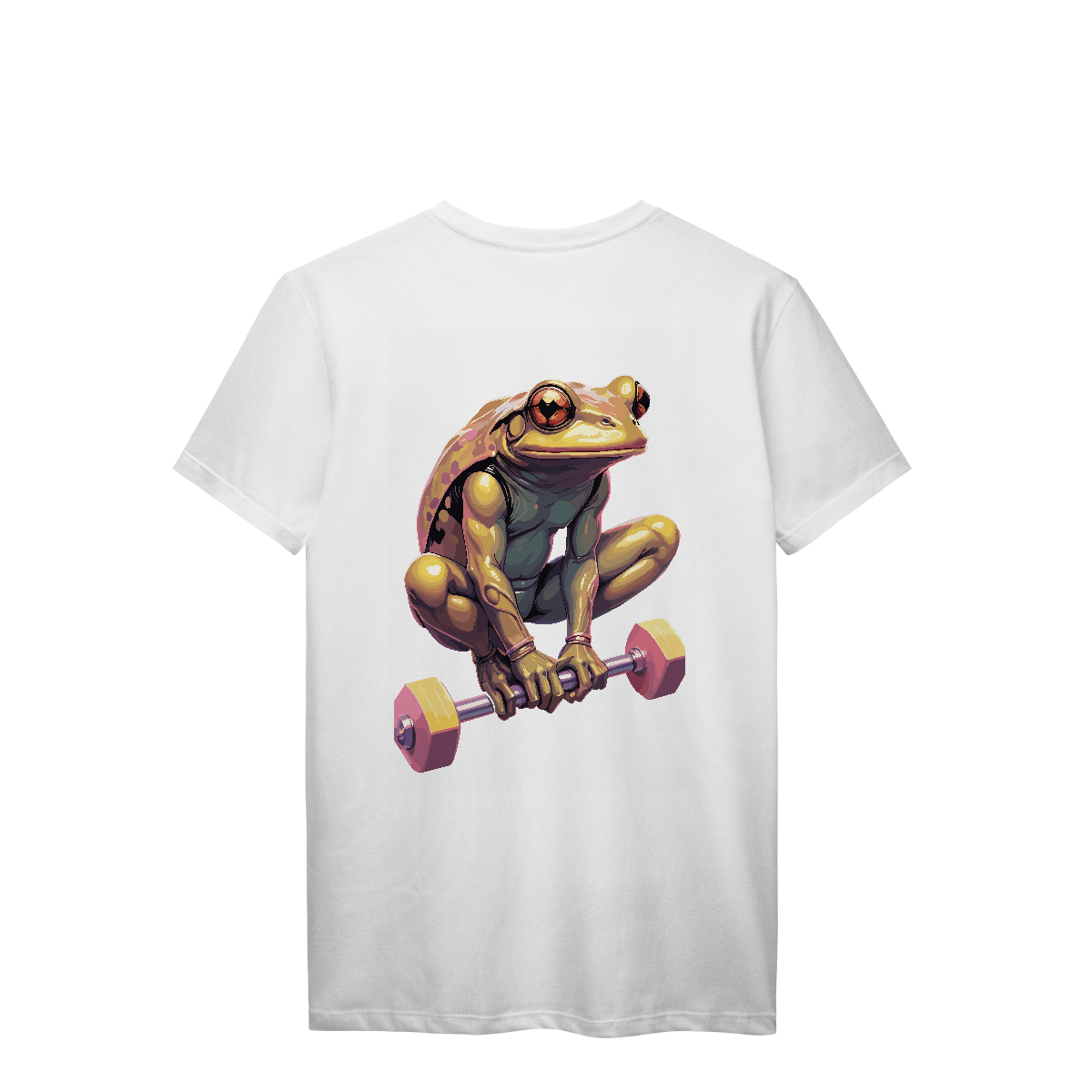 De olhos atentos e braços prontos, esse sapo já virou lenda na área de supino. Com um shape inesperado e estilo único, a estampa mistura carisma e dedicação, mostrando que até quem salta por aí leva o treino a sério. Para os que fazem barulho… mesmo sendo verdes.