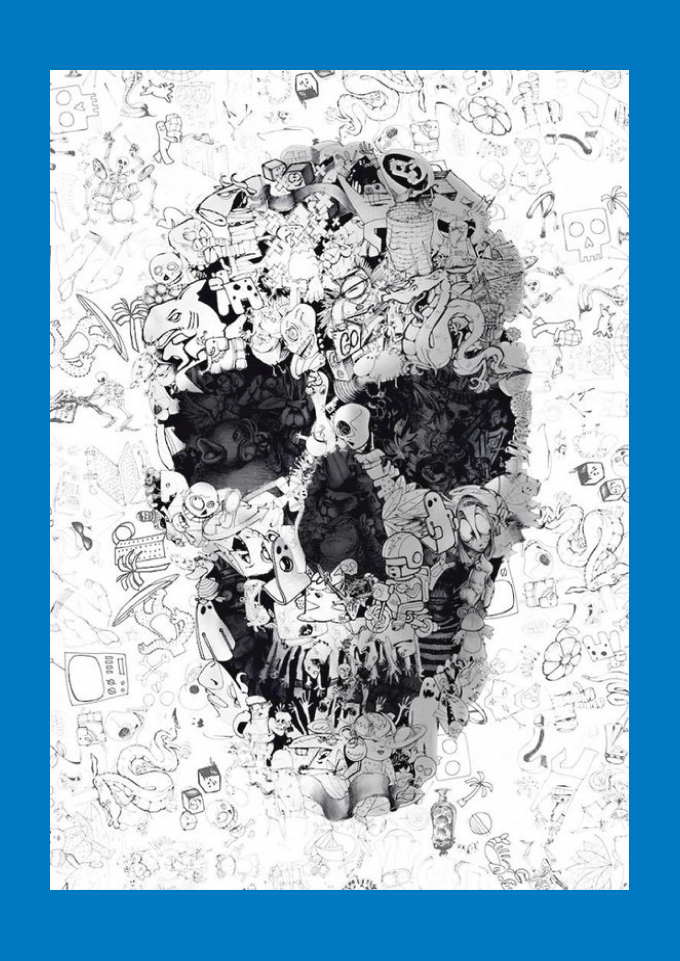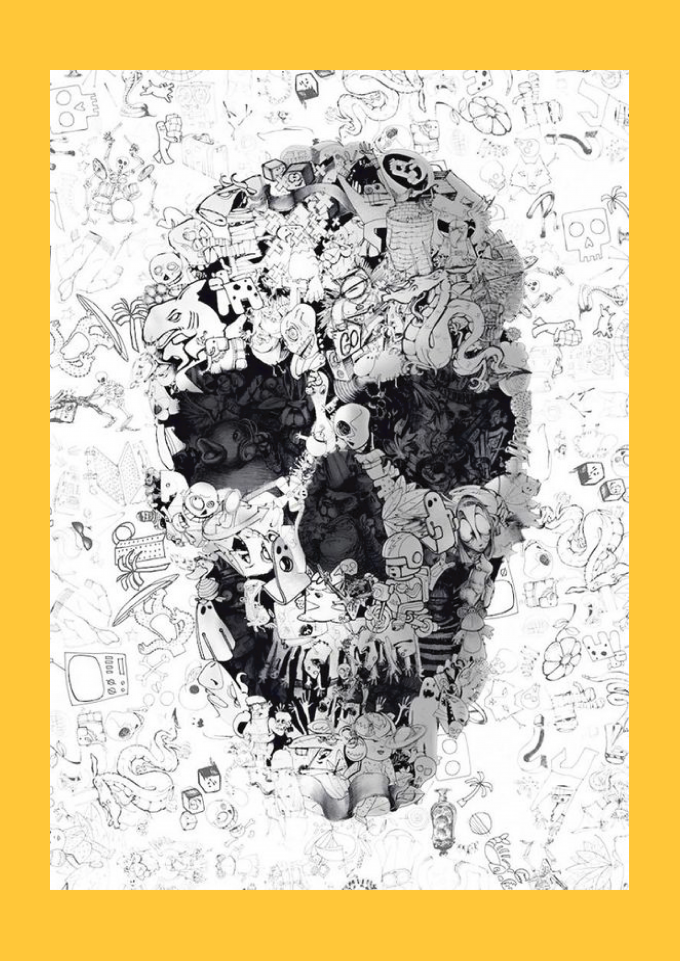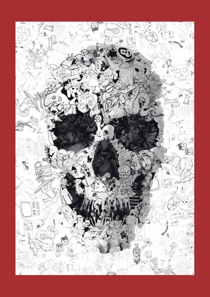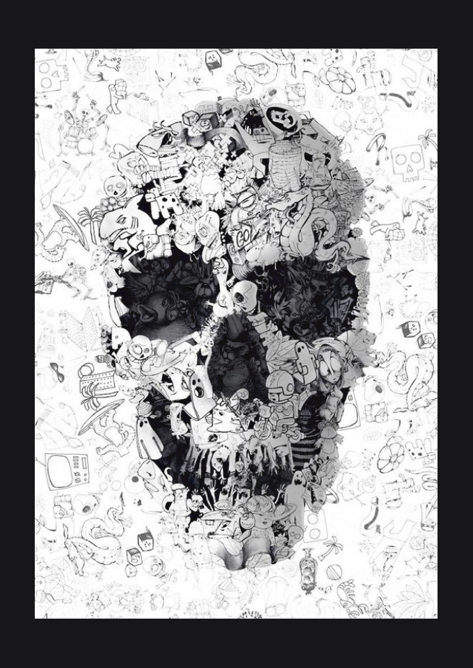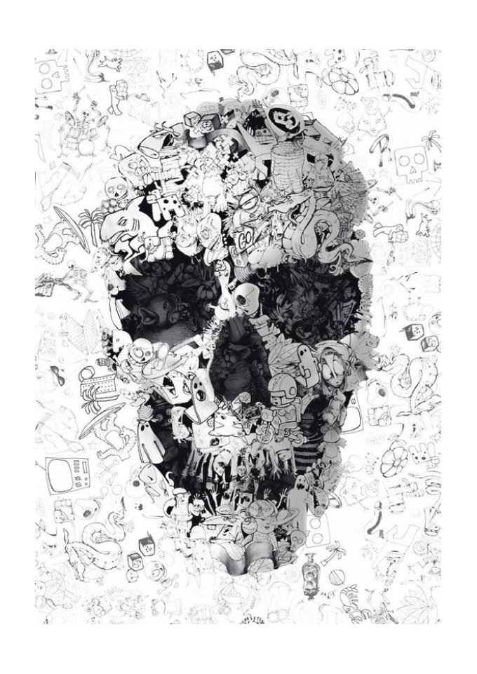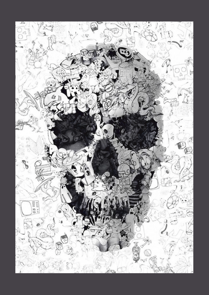 Caveira abstrata com misturas de diversos desenhos.