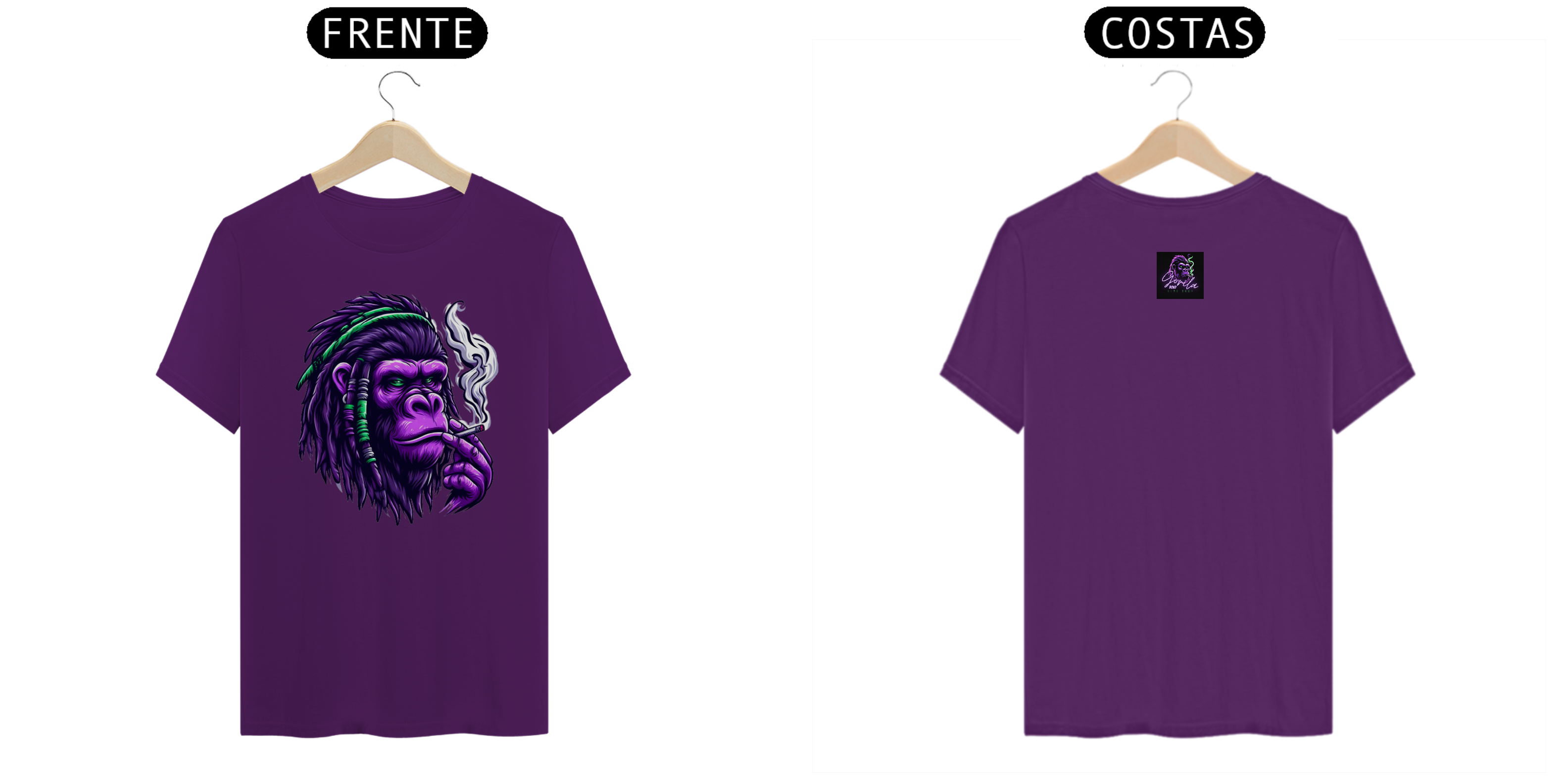 Olha só, você vai adorar essa camiseta da Gorila Roxo. Ela é feita com um tecido de alta qualidade, que é confortável e resistente. A estampa é um desenho incrível de um gorila roxo com dreads fumando. A camiseta também tem um logo pequeno na parte de trás, que é o nosso logo. Essa camiseta é perfeita para você mostrar que é um Gorila Roxo de verdade, que curte a música e a vibe da cena. Você vai se destacar com essa estampa, que é exclusiva da loja Gorila Roxo. Não perca essa oportunidade e compre já a sua, antes que acabe o estoque. Você vai se surpreender com esse estilo!!