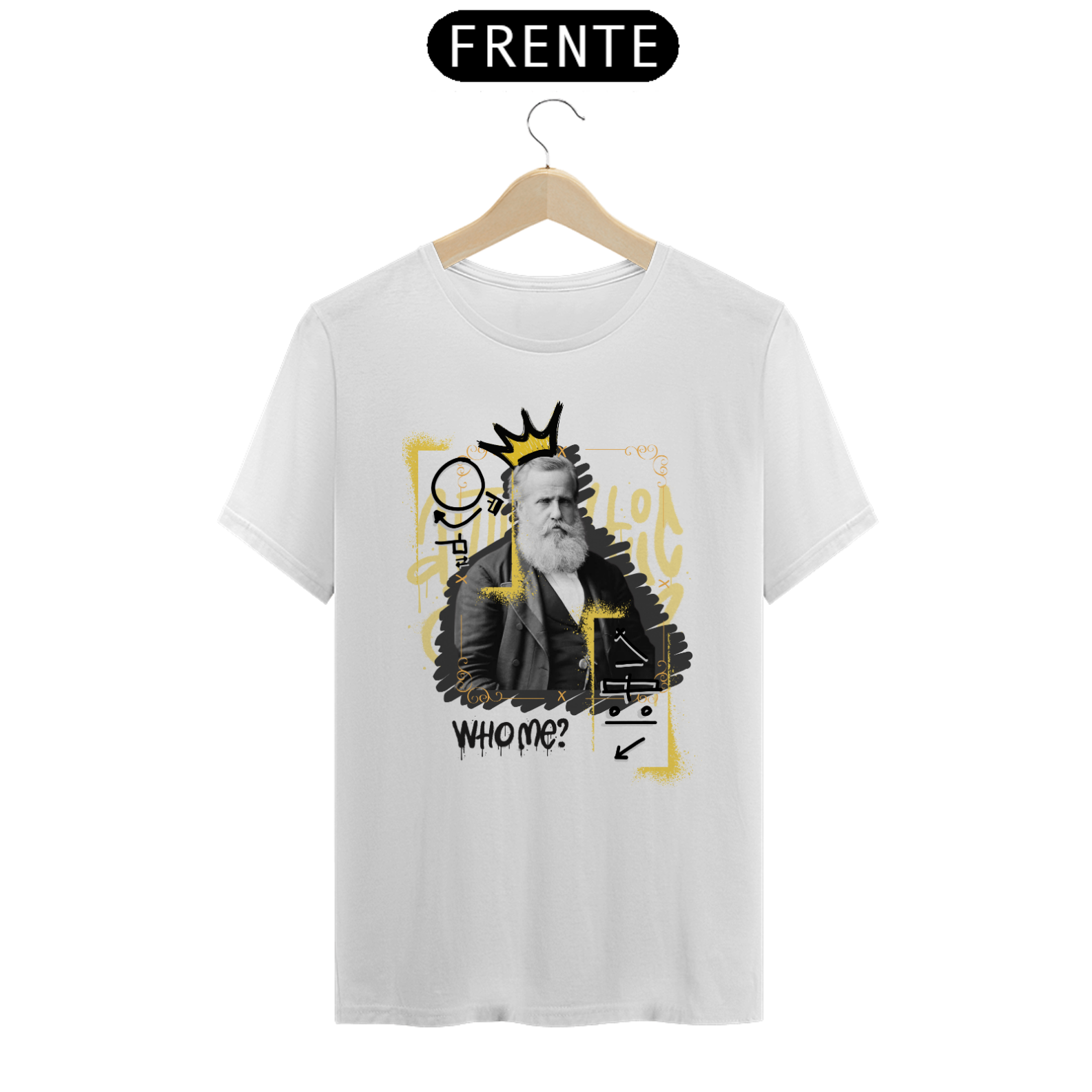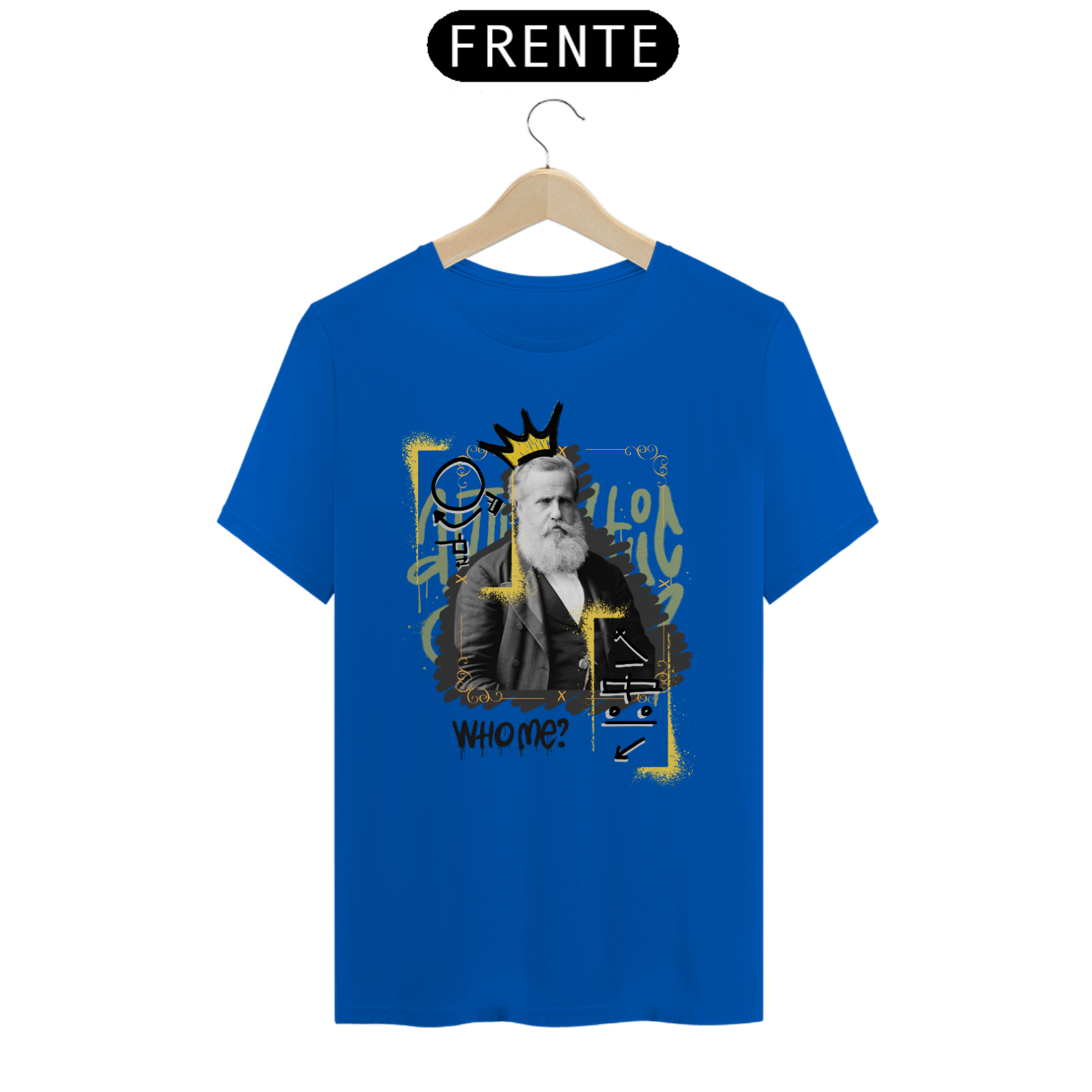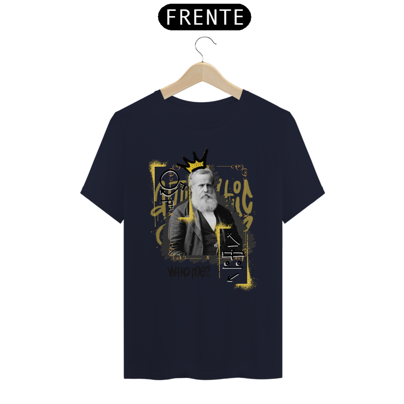 A 2ª estampa da coleção "Personalidades Históricas", que tem como objetivo homenagear personalidades que fizeram a diferença na comunidade surda no passado. O homenageado de hoje é "Dom Pedro II", imperador do Brasil e grande defensor da educação de surdos. Com seu sinal escrito tanto em ELiS (Escrita das Línguas de Sinais) quanto em SignWriting, essa peça celebra a importância do apoio dele à educação inclusiva. Ideal para você que sabe – ou não – que, graças à iniciativa de Dom Pedro II, foi fundada a primeira escola para surdos no Brasil, em 1857, atualmente conhecida como INES (Instituto Nacional de Educação de Surdos).Desfile Libras pelo mundo com um dos grandes aliados da educação surda, nosso Imperador, Dom Pedro II!