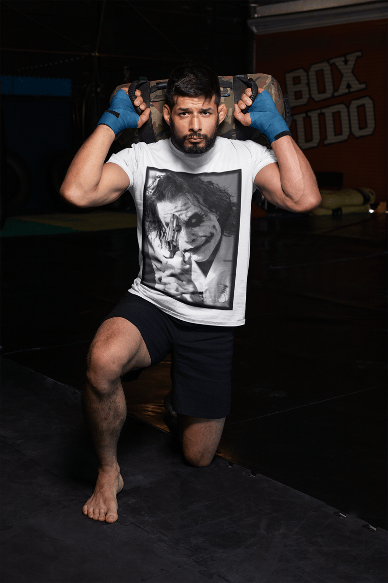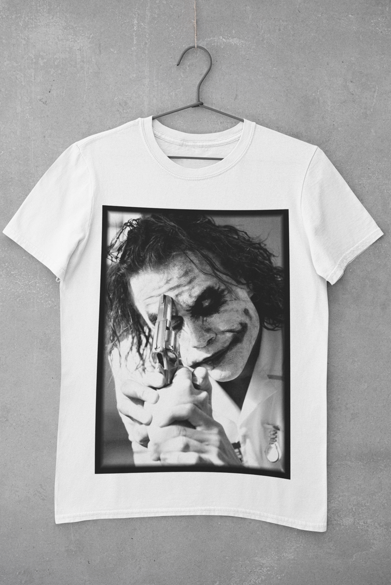 Incorpore a genialidade perturbadora do icônico Joker de Heath Ledger com nossa camiseta exclusiva! Reviva a atuação memorável e perturbadora que ganhou o coração dos fãs do Batman. Vista-se como o palhaço do crime e deixe o caos e a insanidade tomarem conta. Celebre esse legado do cinema com nossa camiseta e mostre ao mundo que você é um verdadeiro fã do Heath Ledger como Joker