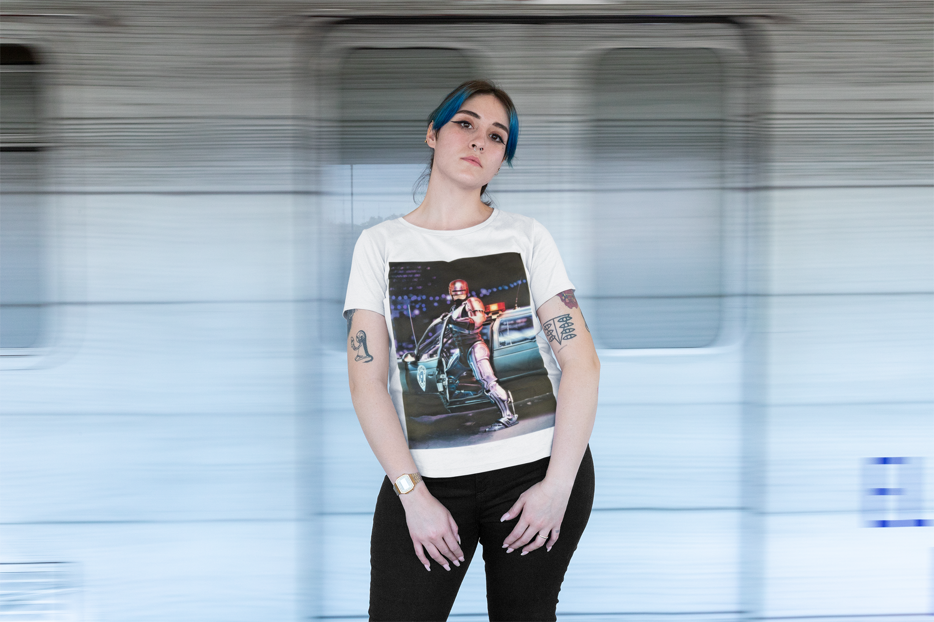 Entre na ação urbana com a camiseta de RoboCop. Sinta a força metálica e a justiça cibernética em cada detalhe da estampa. Vista-se com a atmosfera futurista e deixe-se levar pela luta contra o crime em Detroit. Com a arte icônica, torne-se parte do universo policial do futuro, e mostre ao mundo que você está pronto para proteger e servir com estilo.
