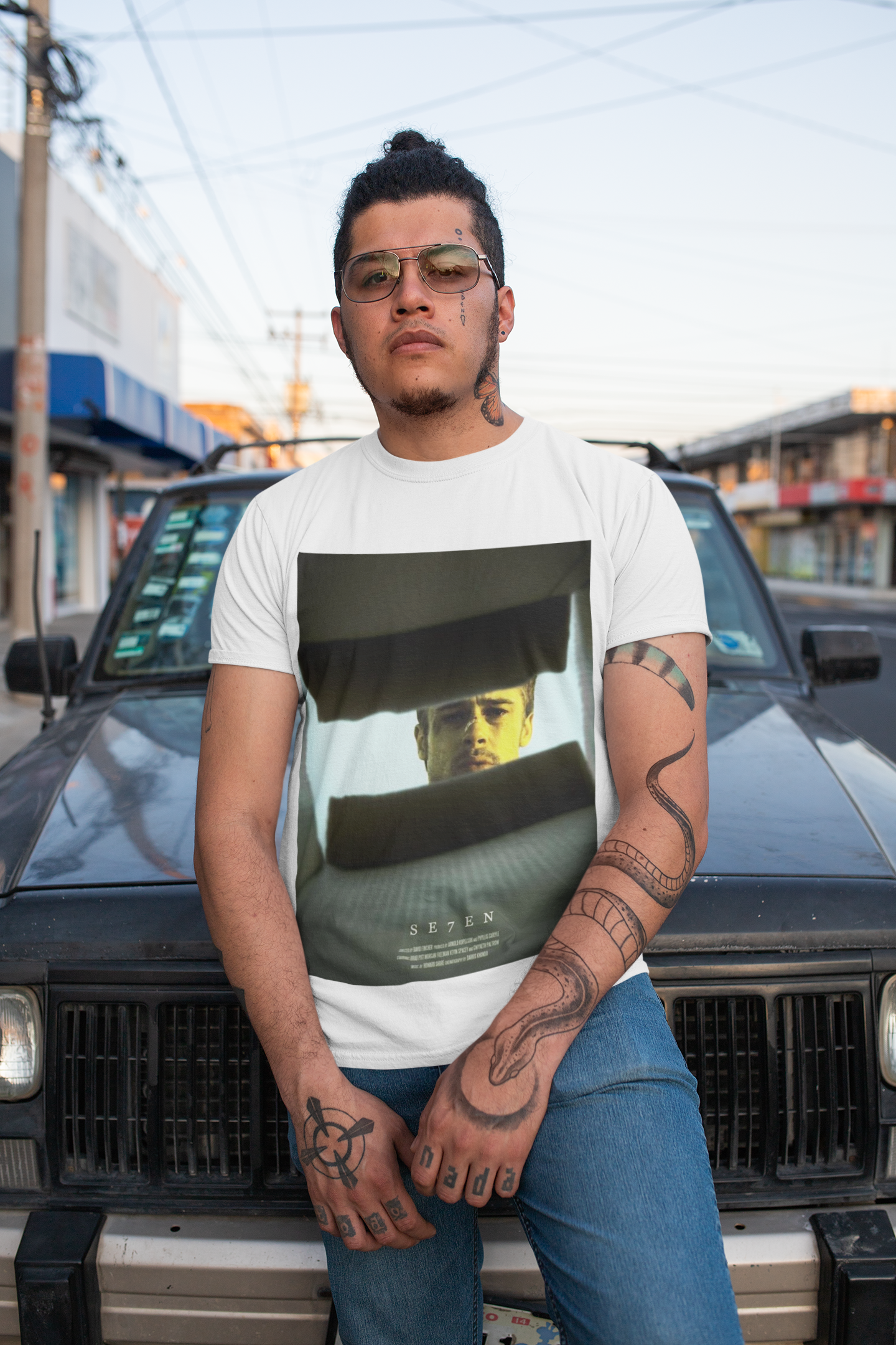Explore o lado mais sombrio da mente humana com esta camiseta exclusiva de 'Se7en', o clássico cult dirigido por David Fincher. Sinta a tensão crescente e o suspense arrebatador em cada detalhe. Mergulhe em uma caçada implacável a um assassino cruel. Deixe que 'Se7en' desperte seu lado investigativo e instigue sua curiosidade mórbida.