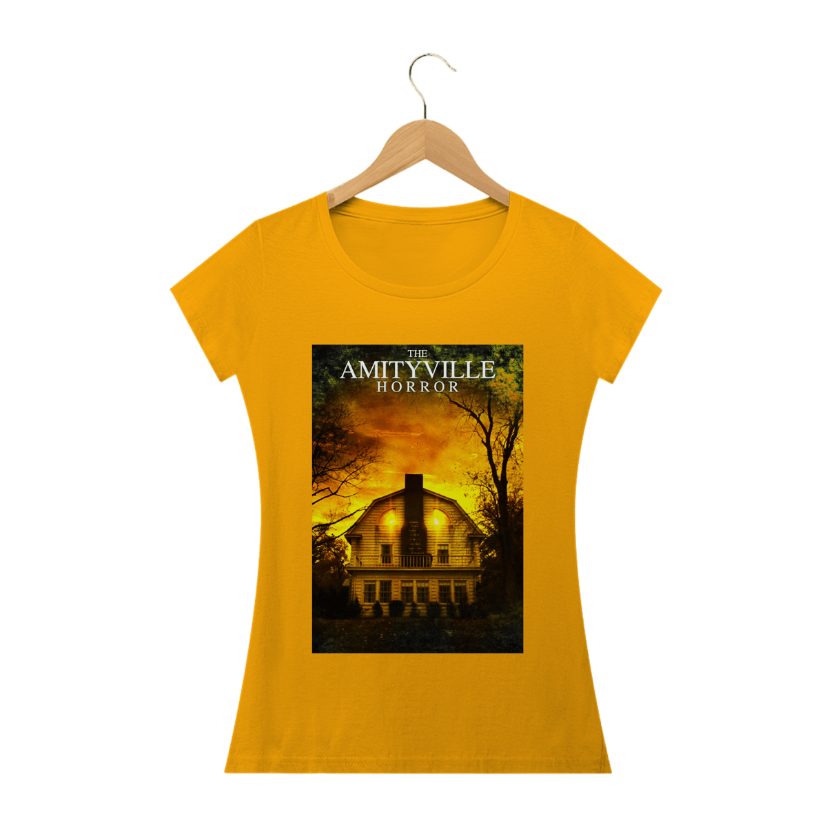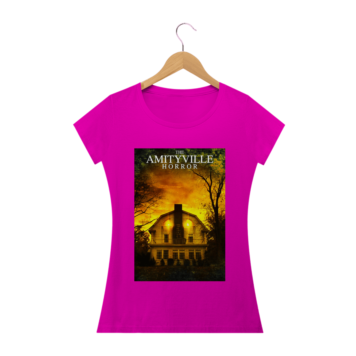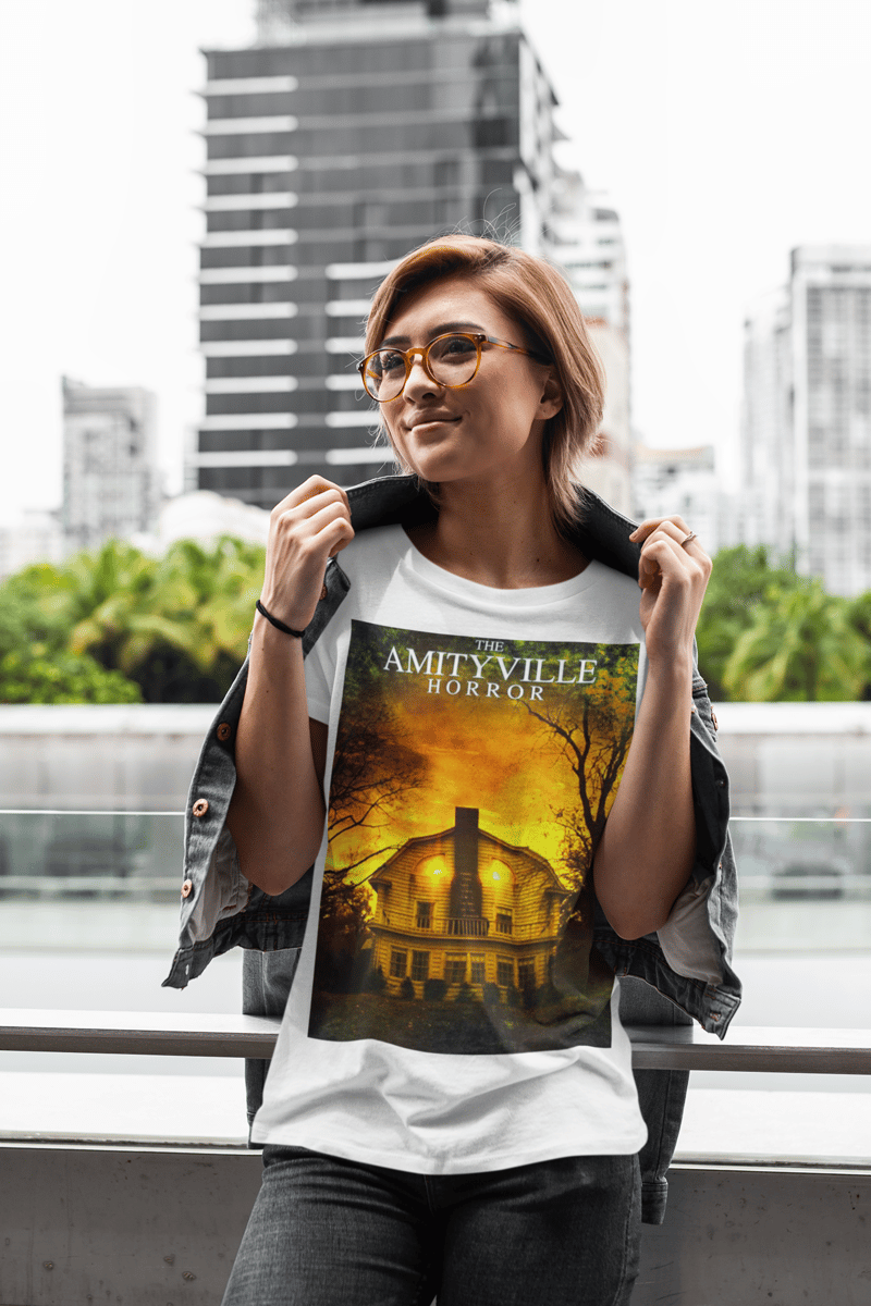 Experimente o arrepio na espinha com a camisa inspirada em "Terror em Amityville". Sinta a presença sinistra da icônica casa assombrada estampada em seu peito. Uma peça obrigatória para os corajosos fãs de terror. Adquira a sua e deixe todos impressionados com seu gosto pelo suspense aterrorizante.