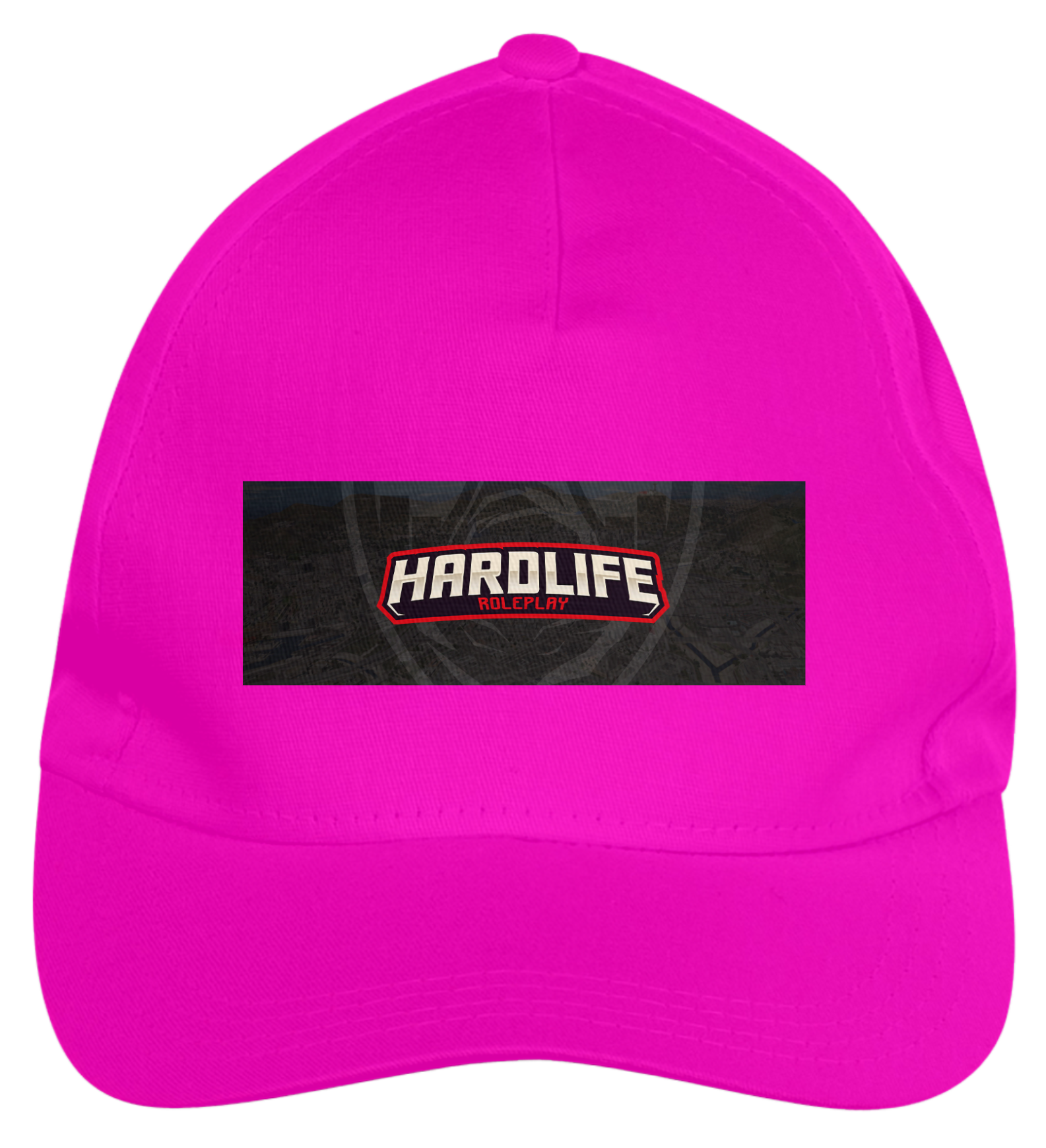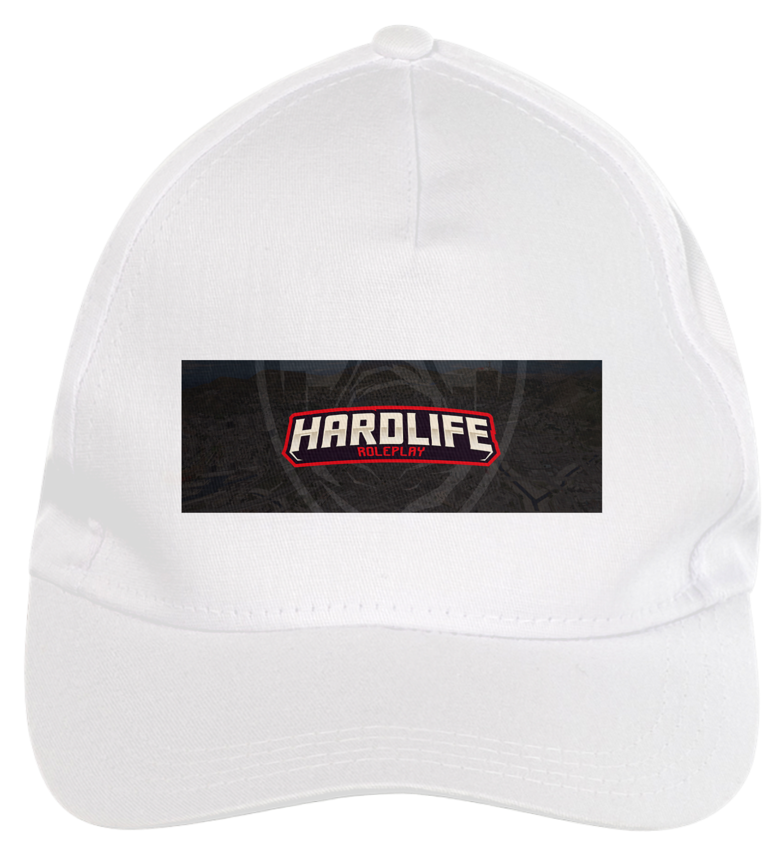 Boné americano com transfer frontal em alta qualidade, aba curva e fecho em tira totalmente regulável com pinos. O modelo veste tamanho "único".