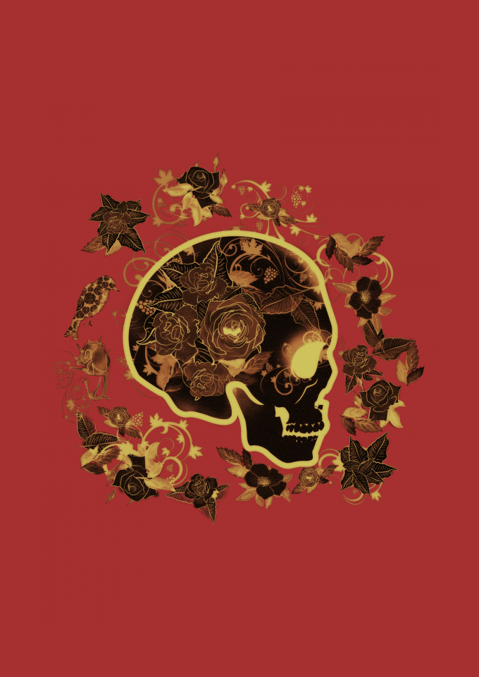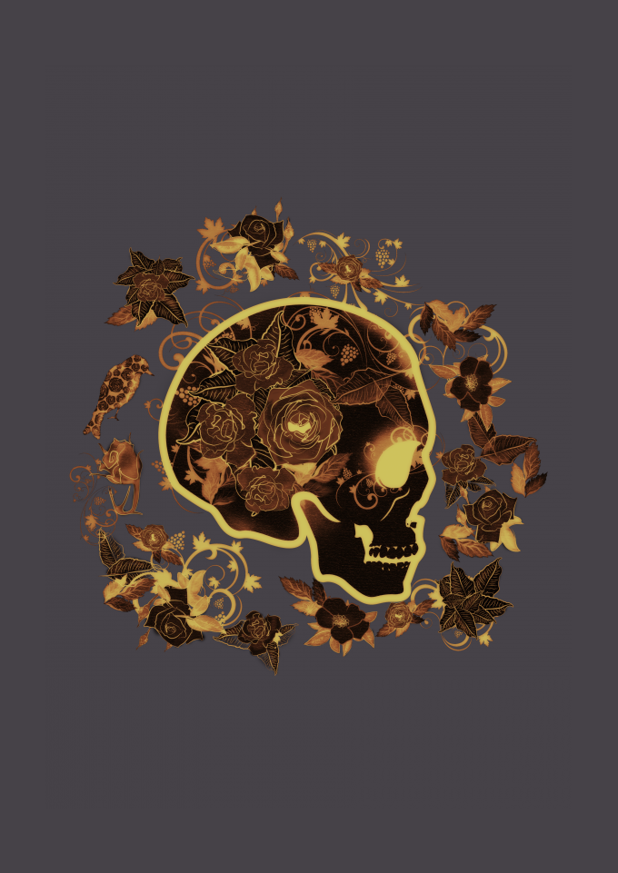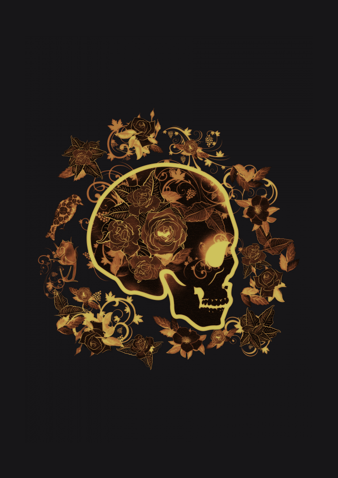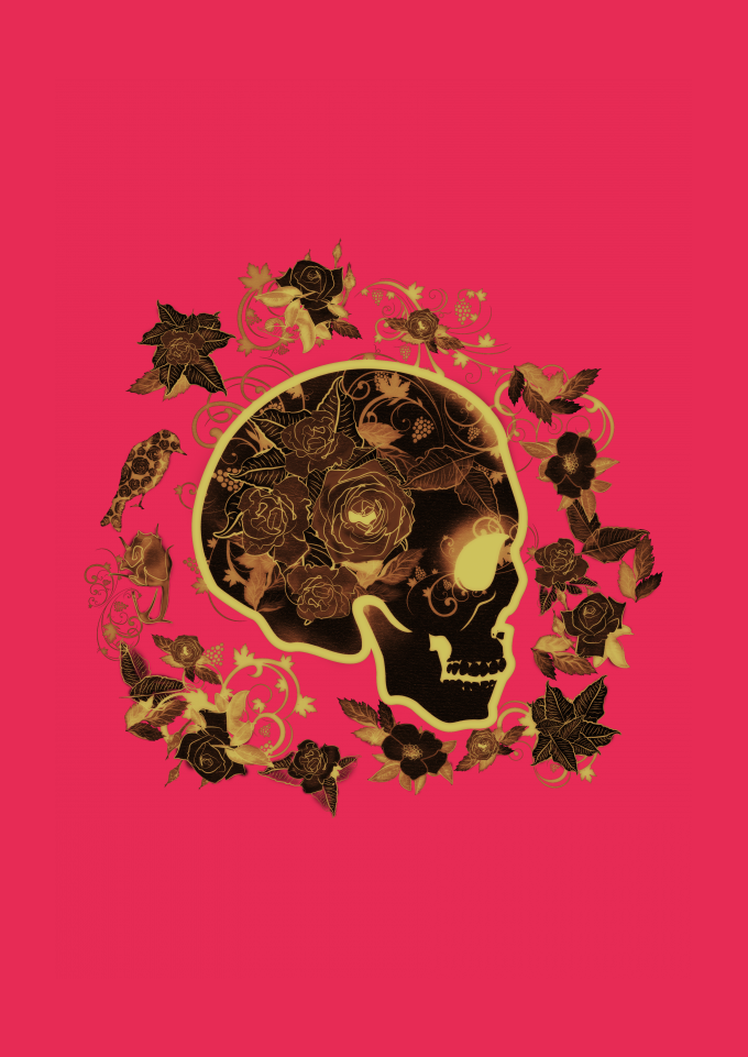 Caveira com rosas douradas!