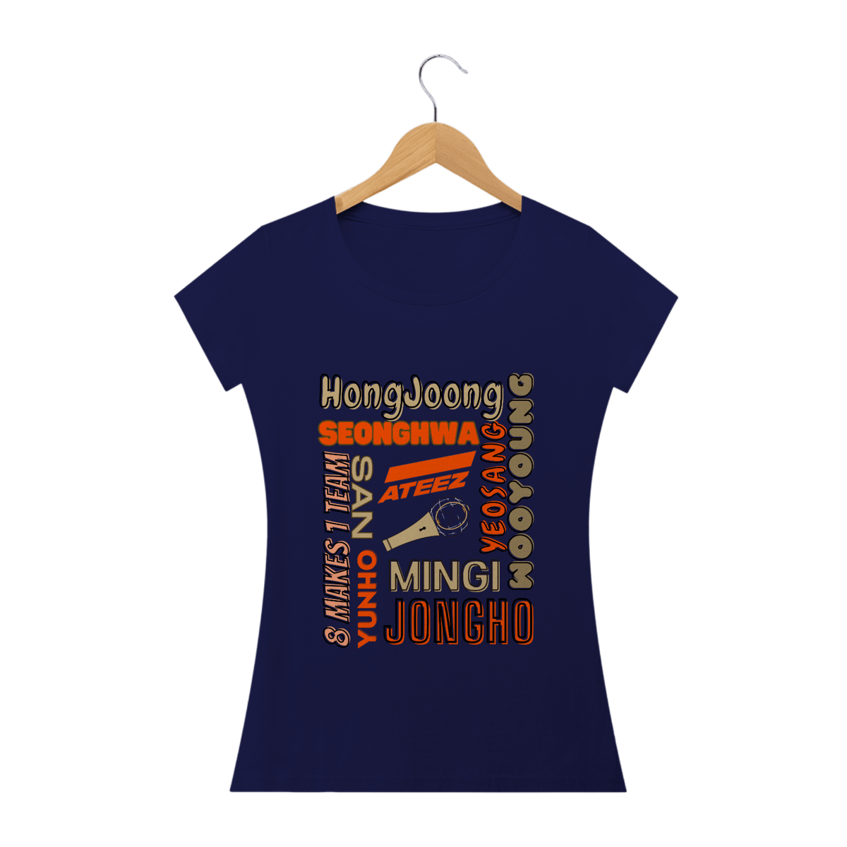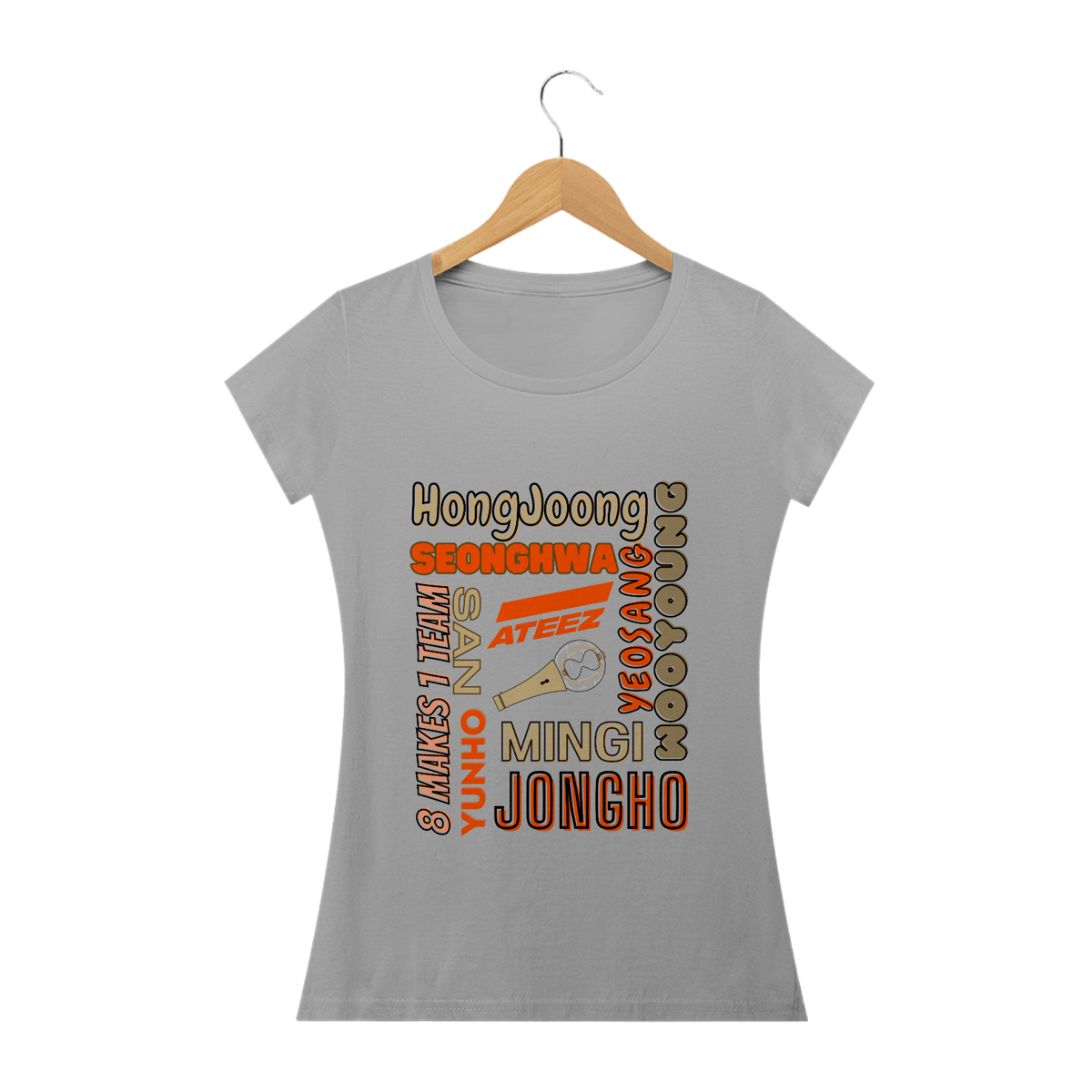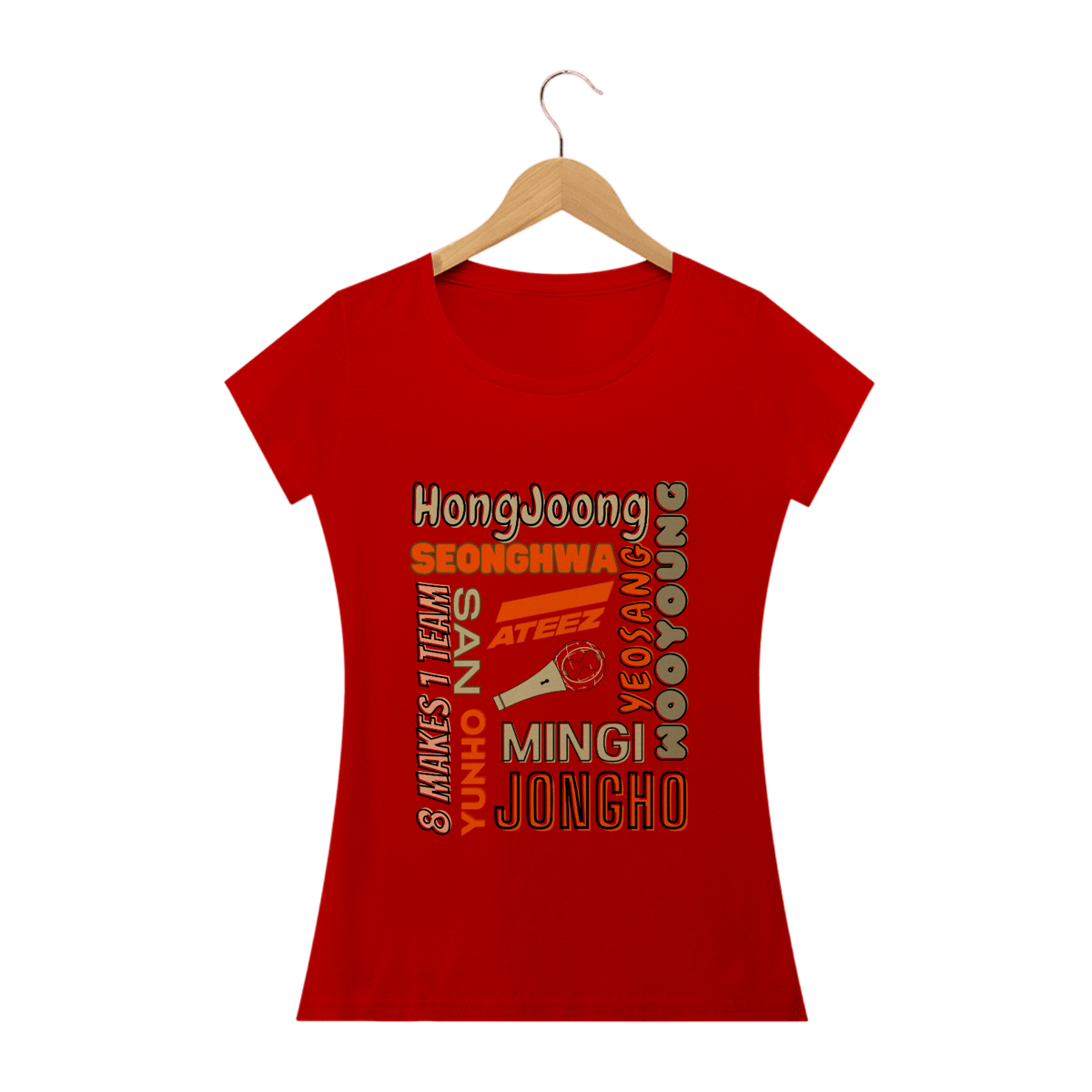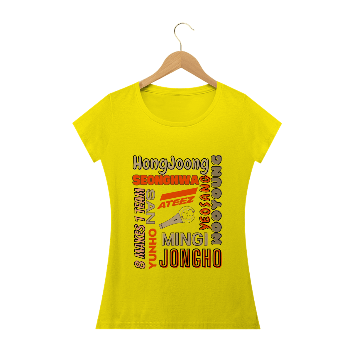 Elegante e feminina, esta camiseta babylook é um must-have para as fãs do ATEEZ. Com os nomes dos membros do grupo em destaque, você pode exibir seu amor pelo ATEEZ de forma fashion e única. Ajuste perfeito e design exclusivo tornam esta camiseta uma escolha ideal para as fãs mais estilosas.