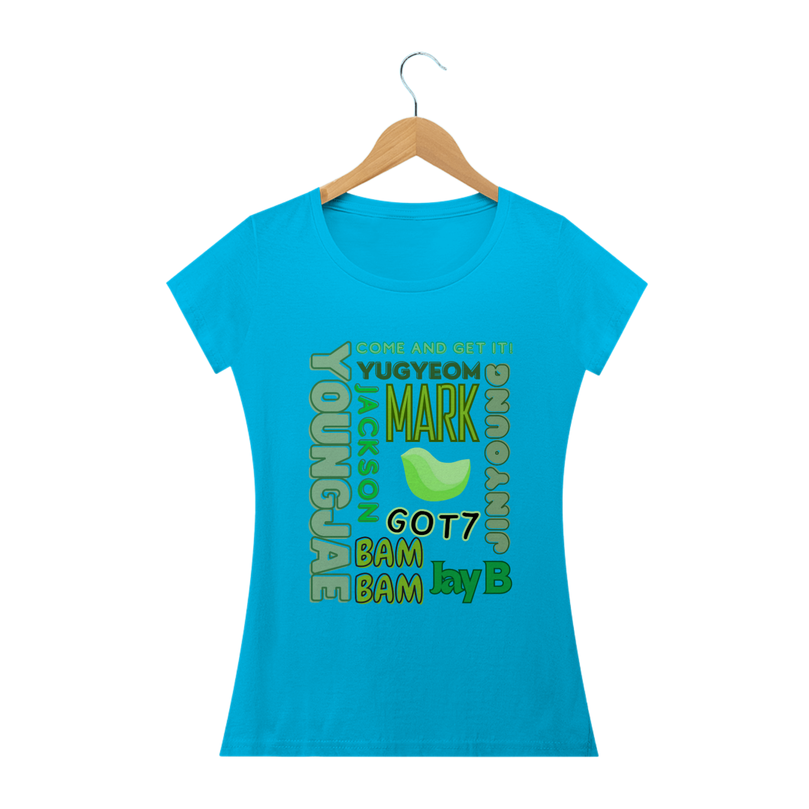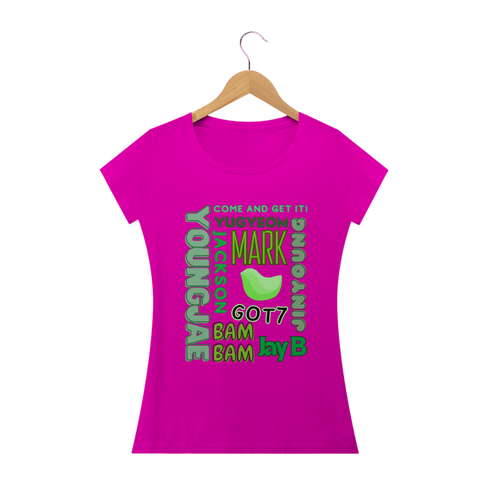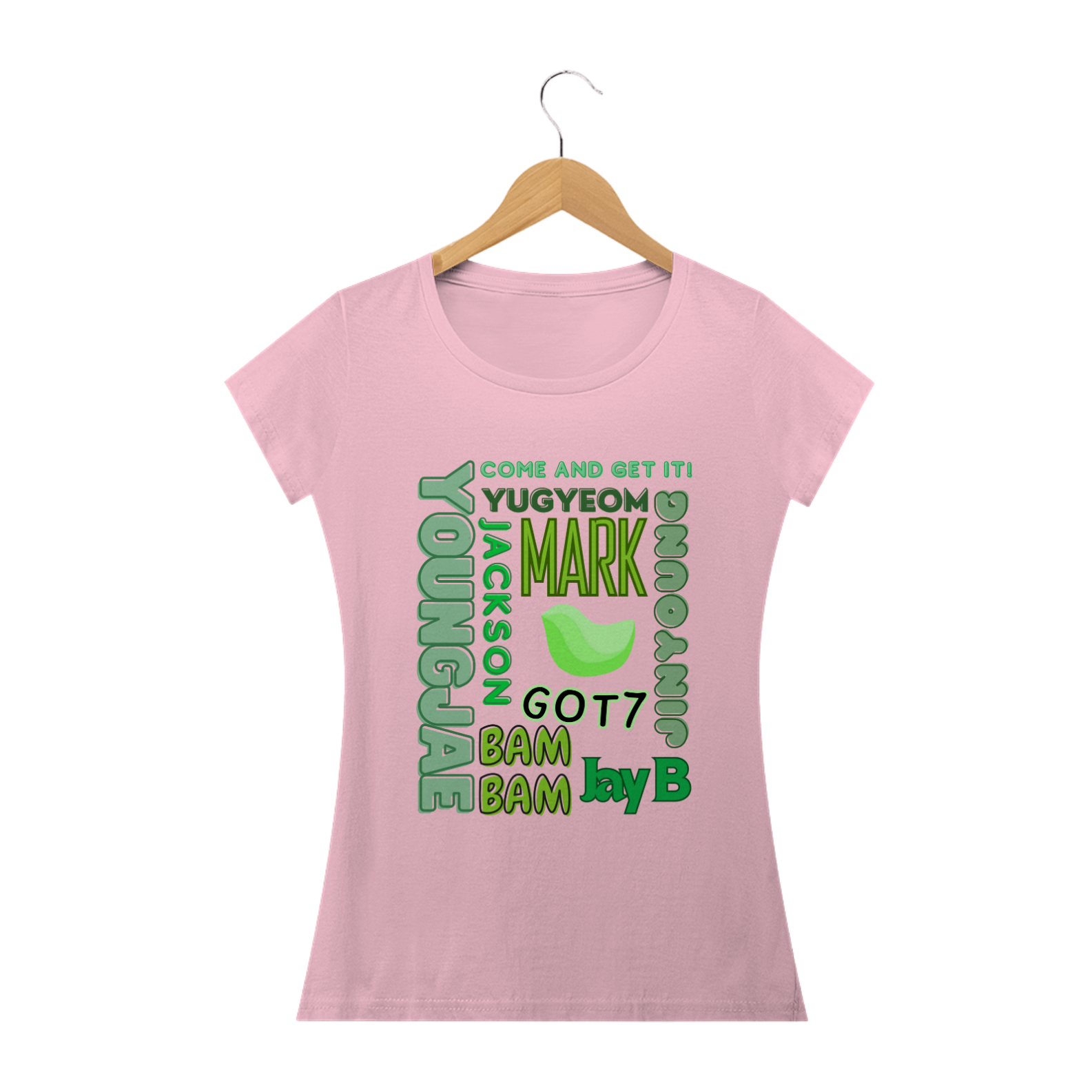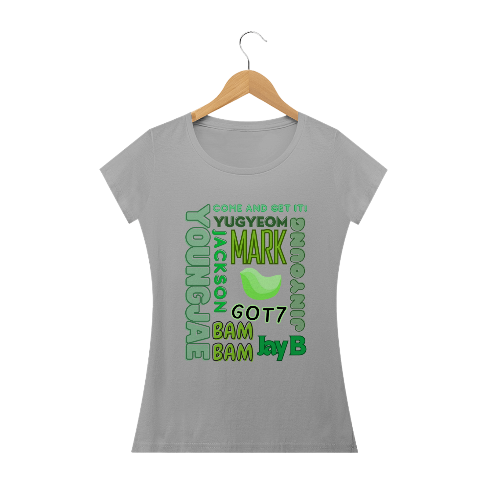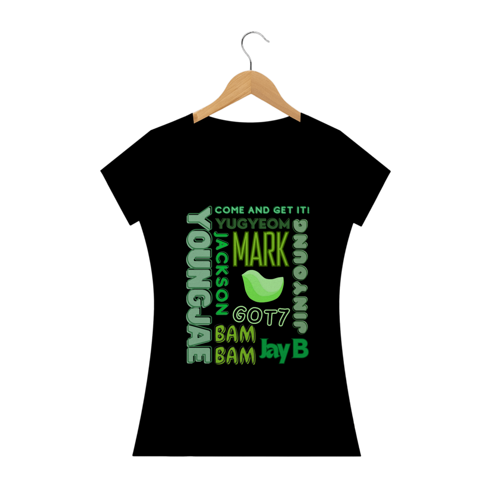 Para as fãs que adoram um toque mais feminino, apresentamos nossa camiseta babylook com os nomes dos membros do GOT7. Este modelo é projetado para realçar suas curvas com um corte mais ajustado e elegante. Feita com tecido macio e durável, esta camiseta é perfeita para exibir seu apoio ao grupo enquanto mantém seu estilo único.