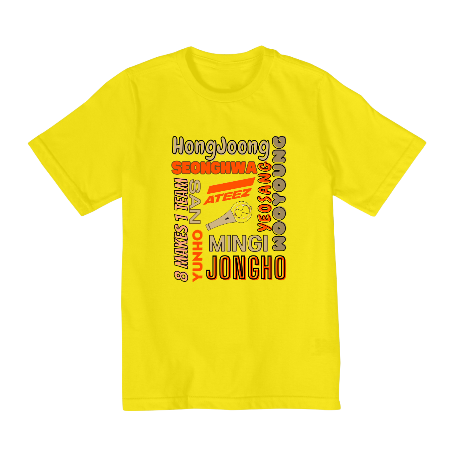 Para os jovens fãs do ATEEZ, temos esta camiseta com os nomes dos membros do grupo. Disponível nos tamanhos de 2 a 8, esta camiseta é perfeita para os fãs mirins que querem mostrar seu apoio ao ATEEZ com estilo. É uma ótima maneira de introduzir os mais novos na música e no fandom do ATEEZ.