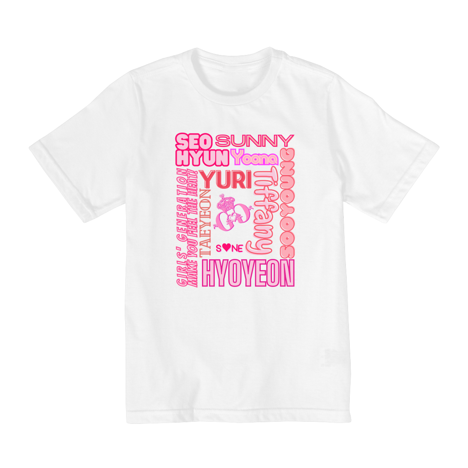 Esta camiseta está disponível em tamanhos que variam do 2 ao 8 e é ideal para fãs de todas as idades. Apresentando os nomes das amadas integrantes do Girls' Generation, esta camiseta é perfeita para crianças e pré-adolescentes que desejam mostrar seu amor pelo grupo.