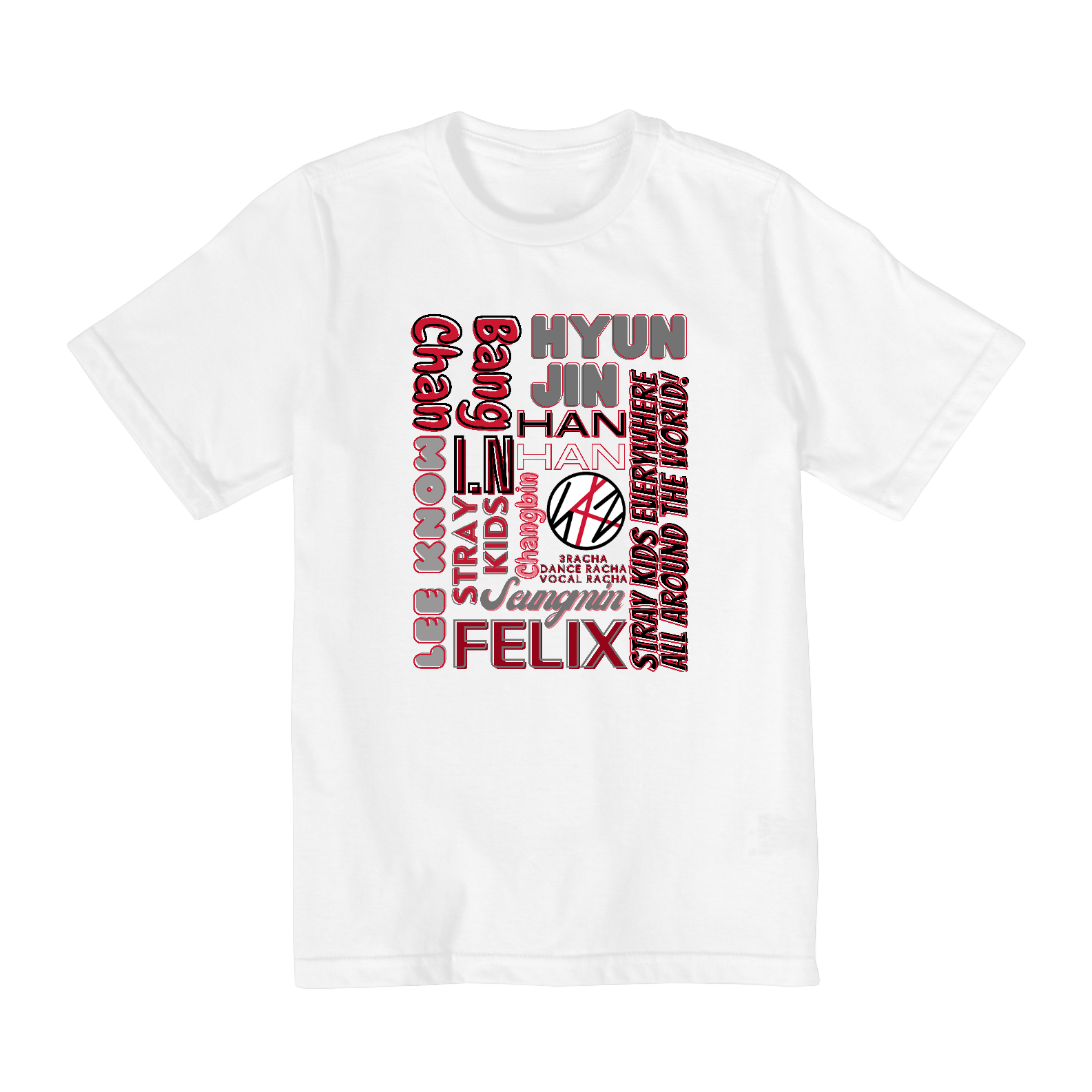 Esta camiseta é ideal para os jovens fãs do Stray Kids! Disponível nos tamanhos 2 ao 8, ela oferece um ajuste confortável para crianças e pré-adolescentes que desejam exibir seu amor pelo grupo de K-pop favorito. Os nomes dos membros são apresentados em um design vibrante que irá encantar os jovens fãs.